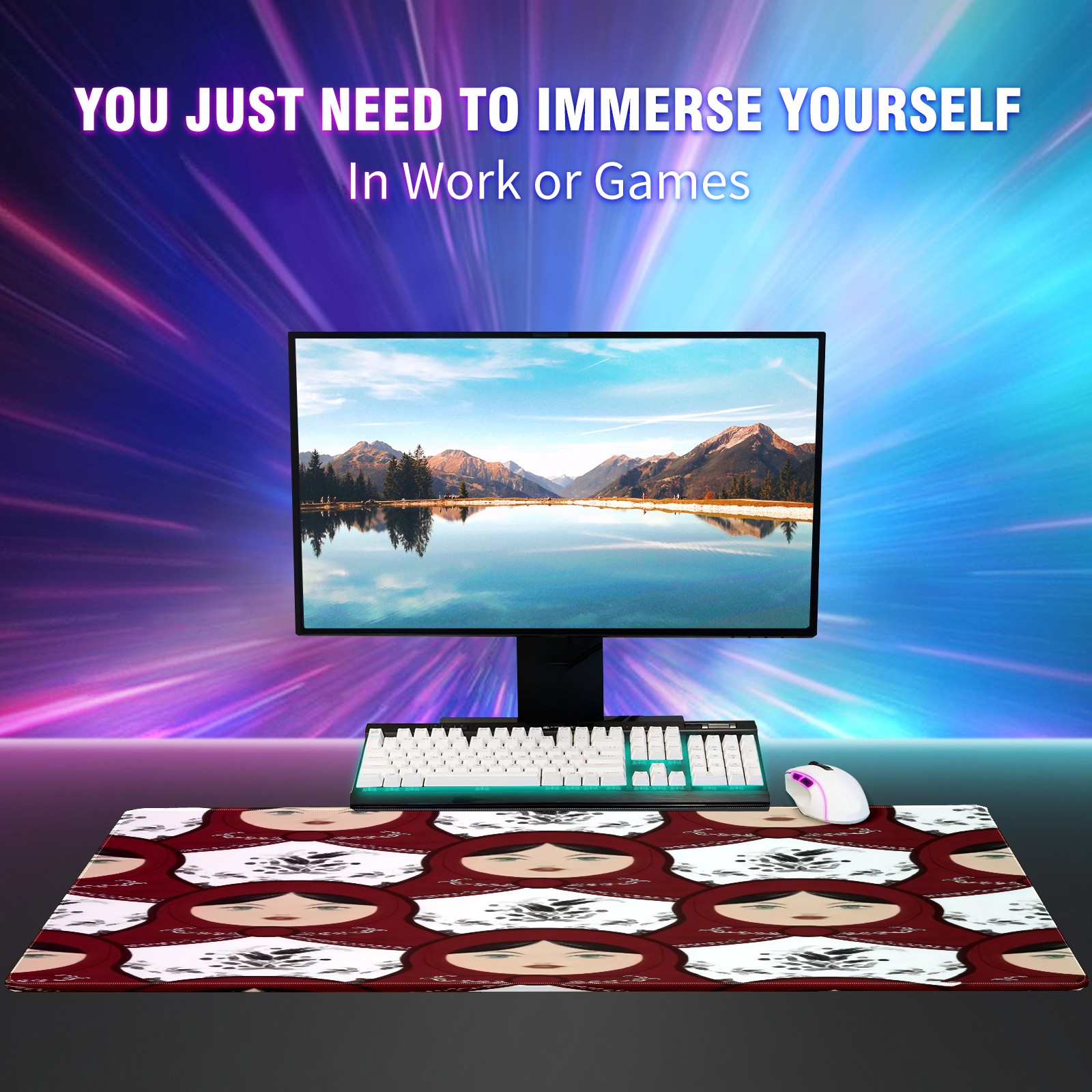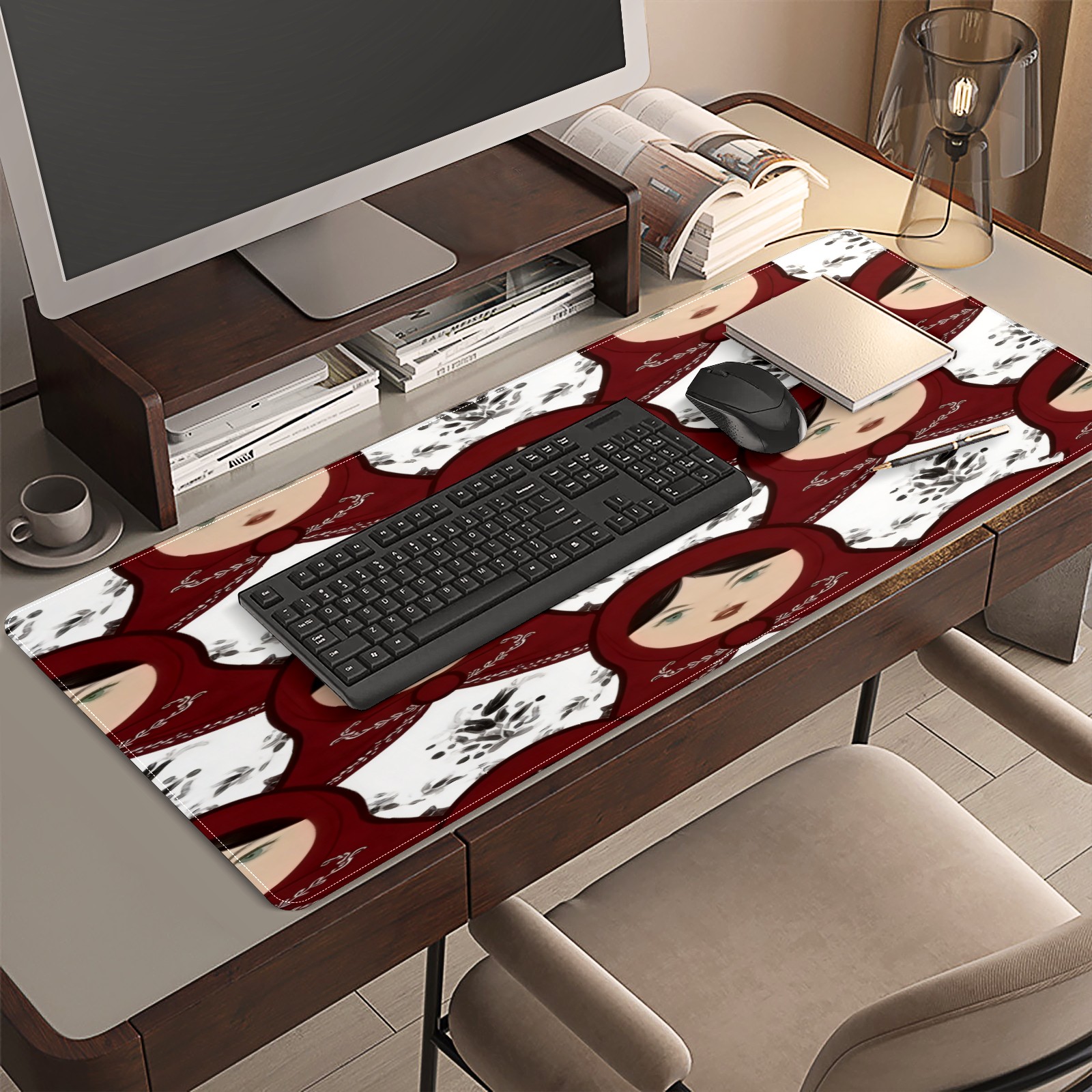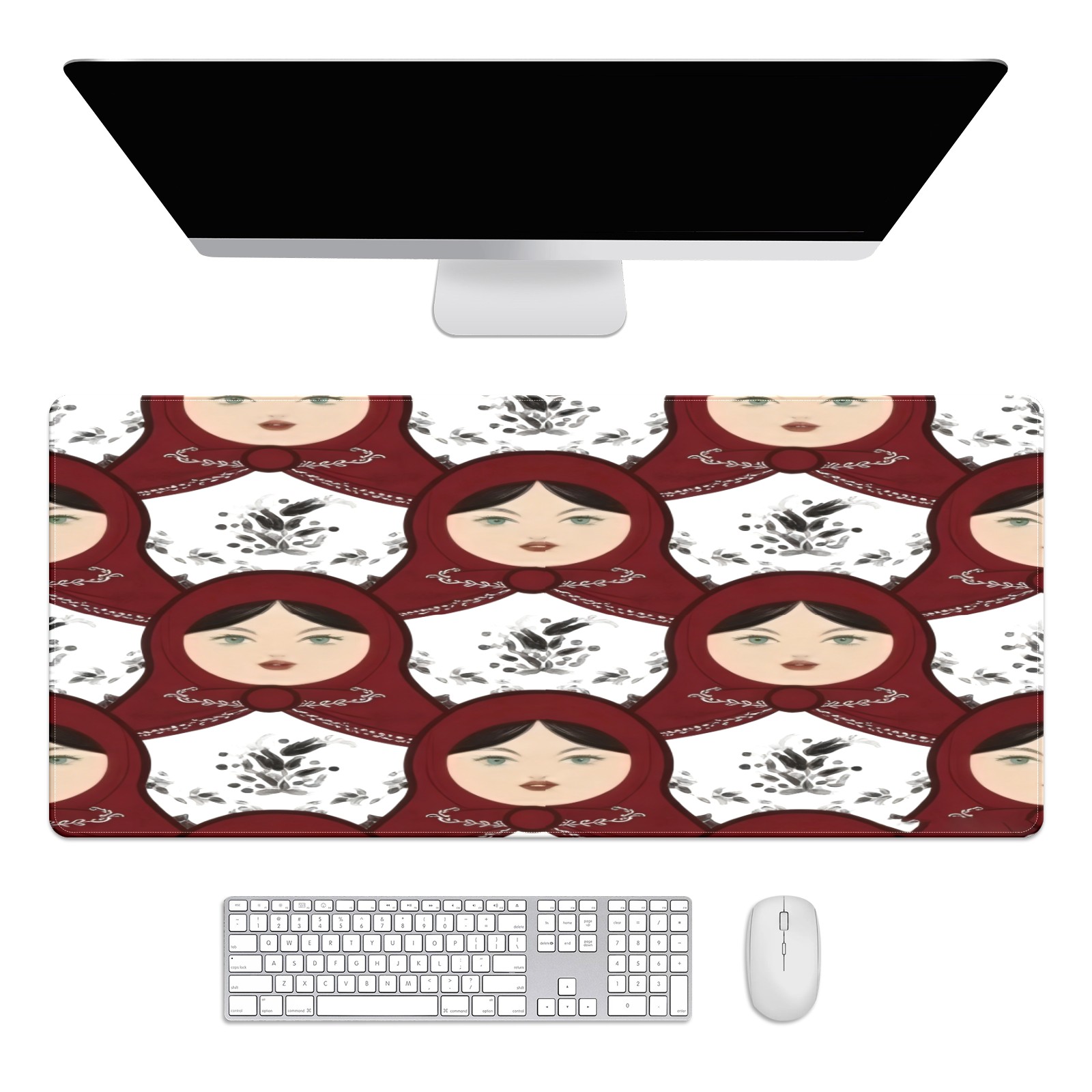 Large Gaming Mouse Pad (90x40cm), Extended Waterproof Desk Mat with Non-Slip Rubber Base, Classic Dolls White for Gamers, Office & Home