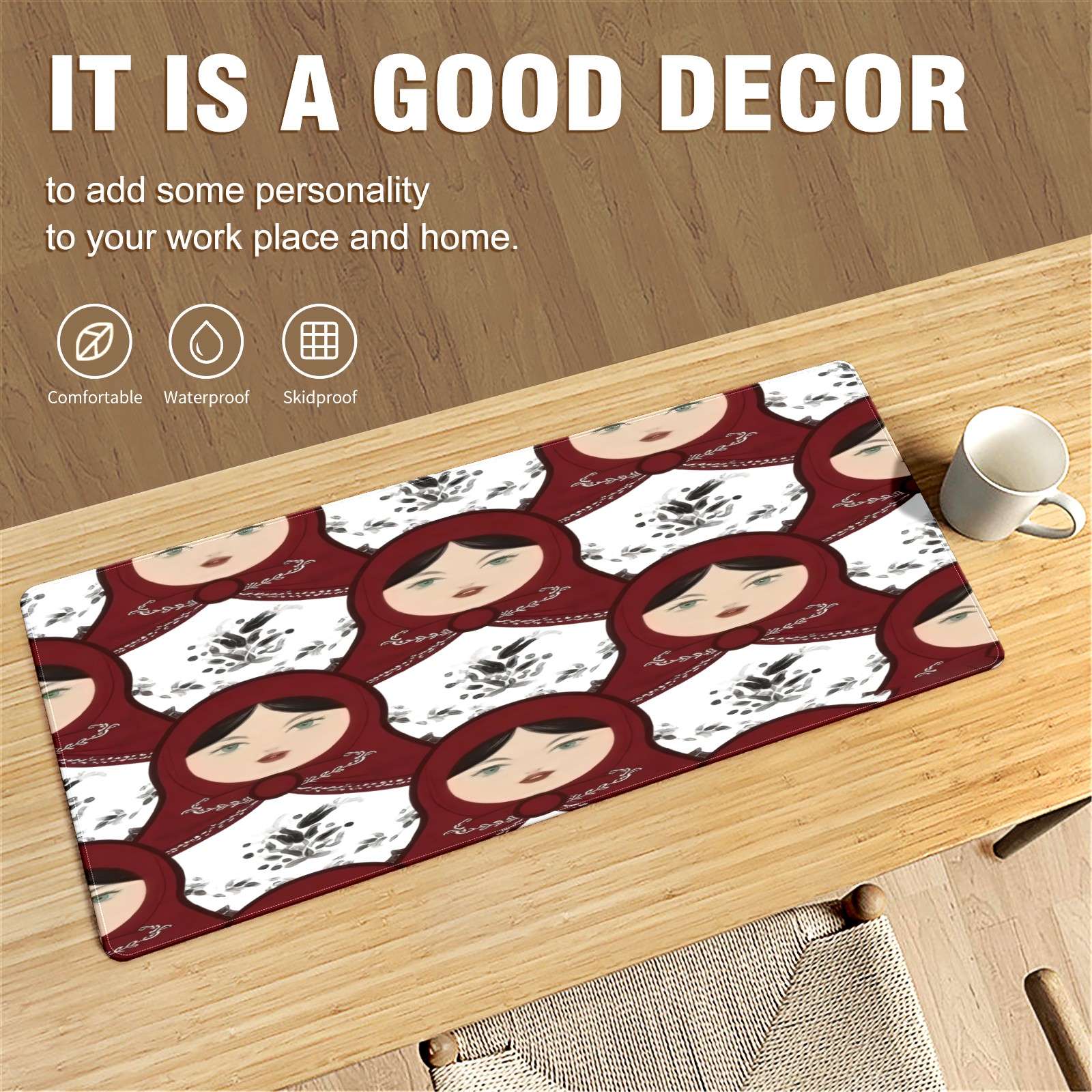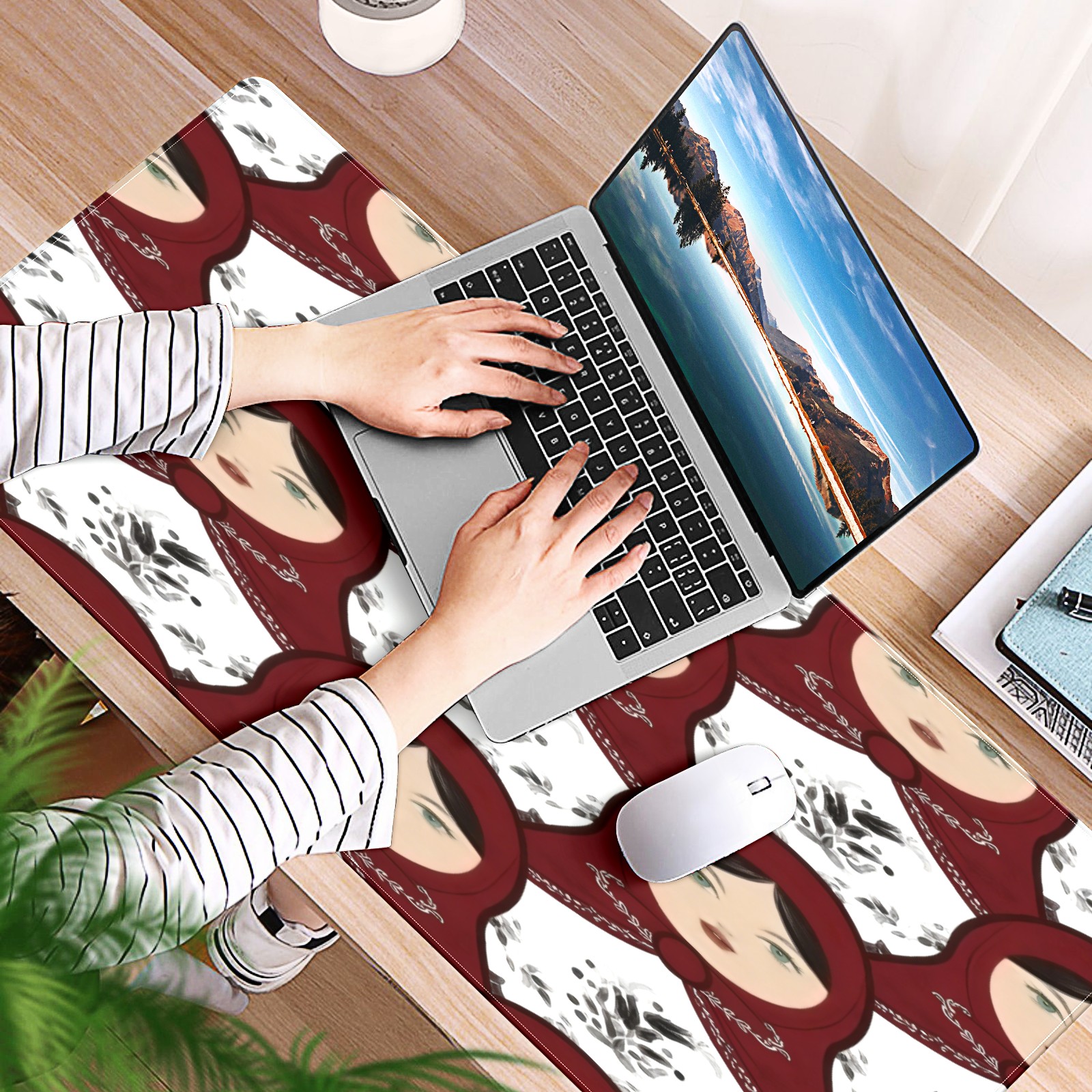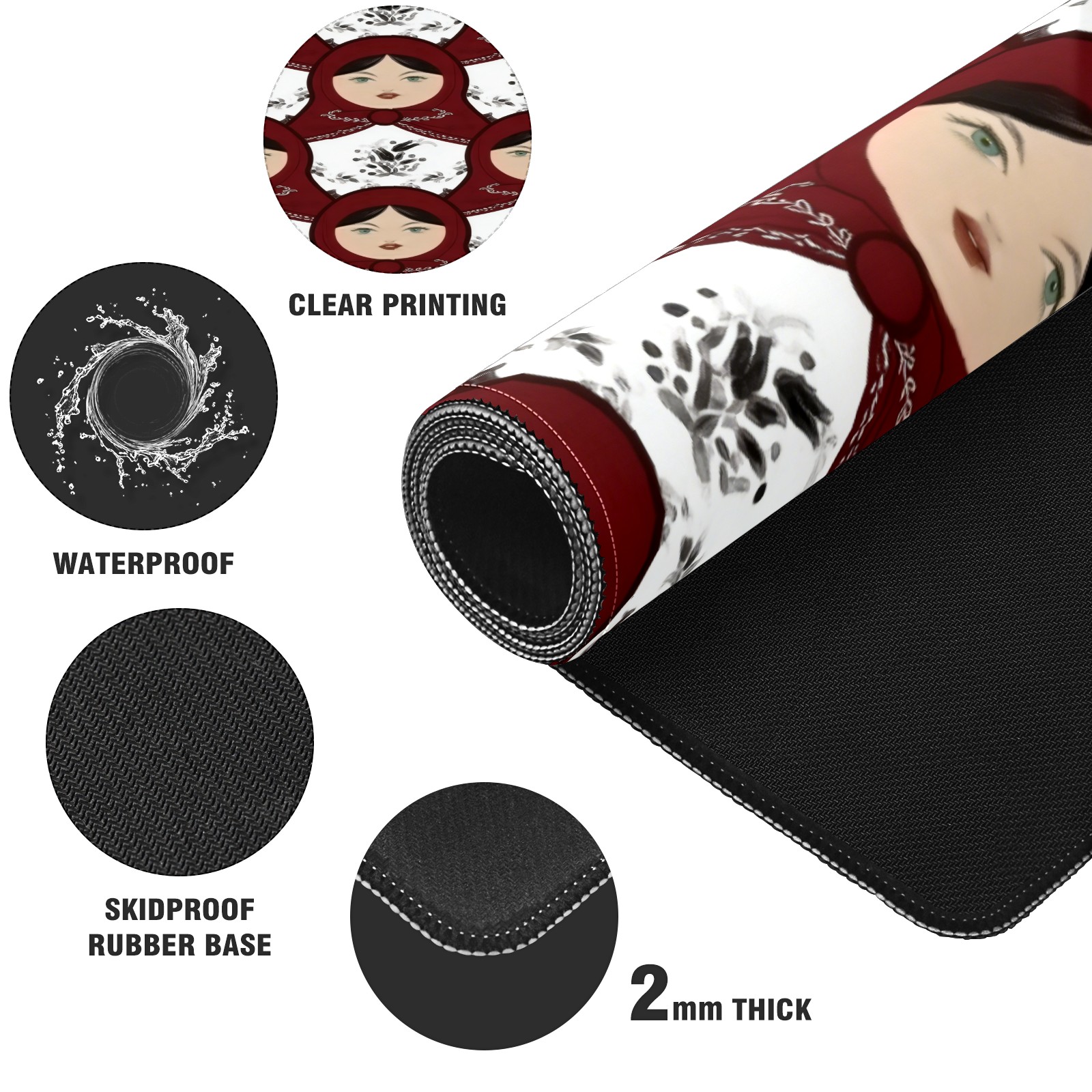 Large Gaming Mouse Pad (90x40cm), Extended Waterproof Desk Mat with Non-Slip Rubber Base, Classic Dolls White for Gamers, Office & Home