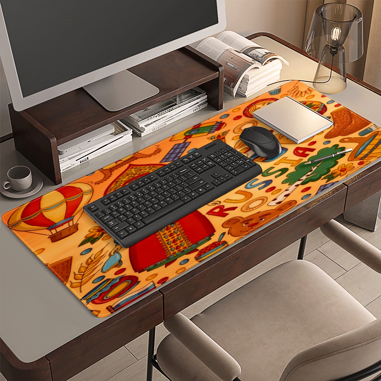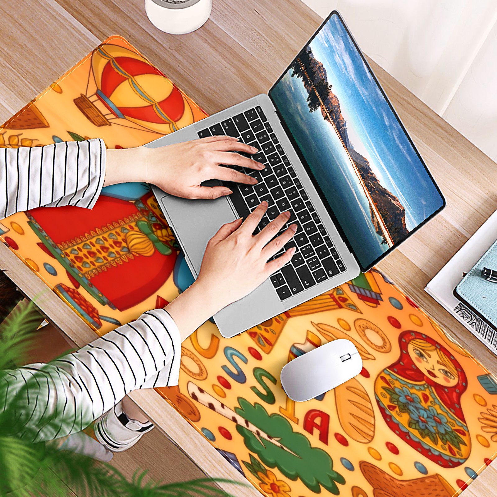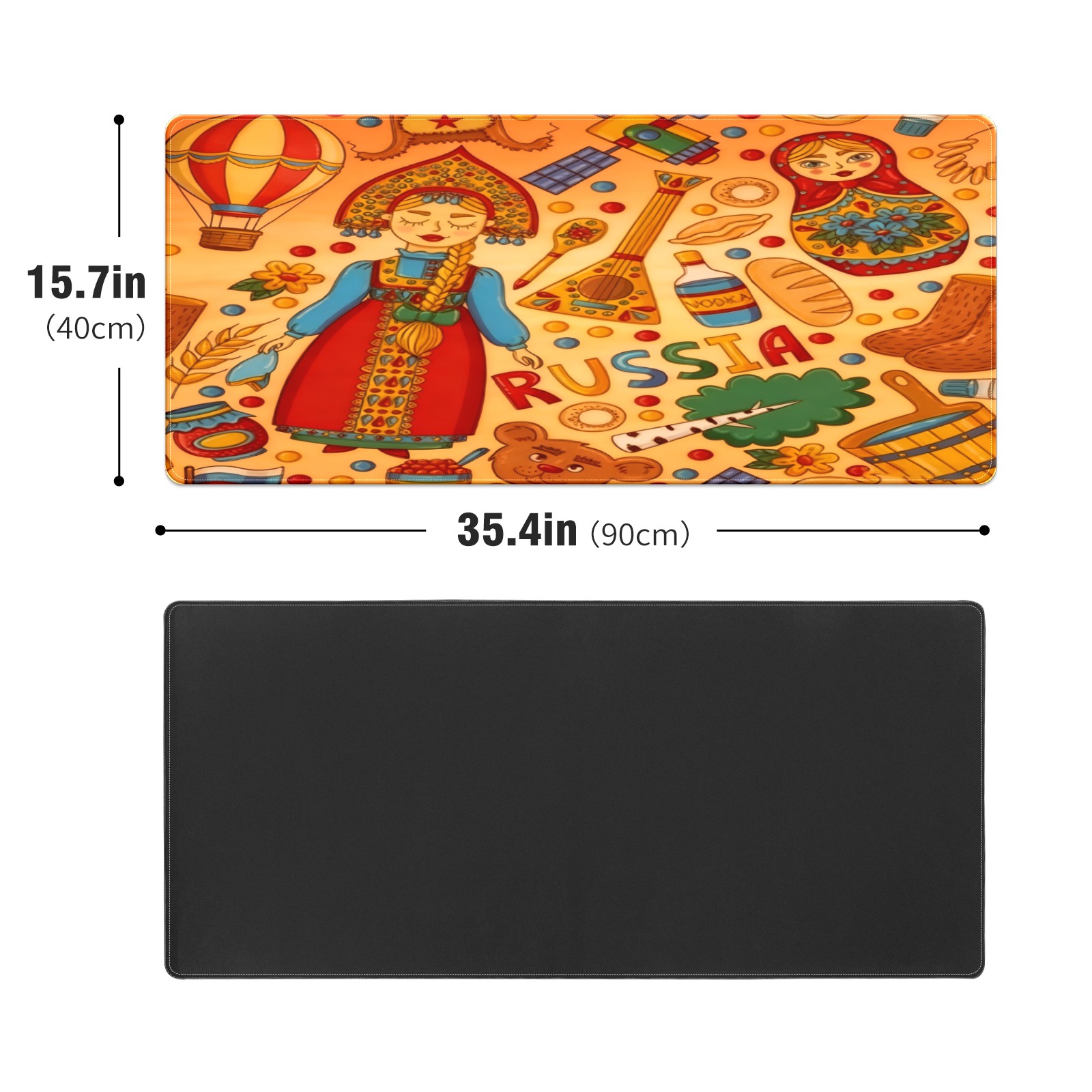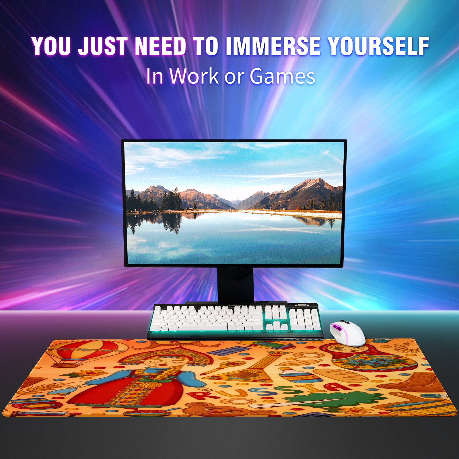 Large Gaming Mouse Pad (90x40cm), Extended Waterproof Desk Mat with Non-Slip Rubber Base, Folk Figures Orange for Gamers, Office & Home