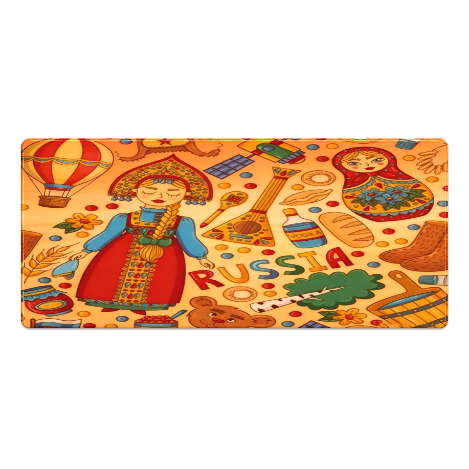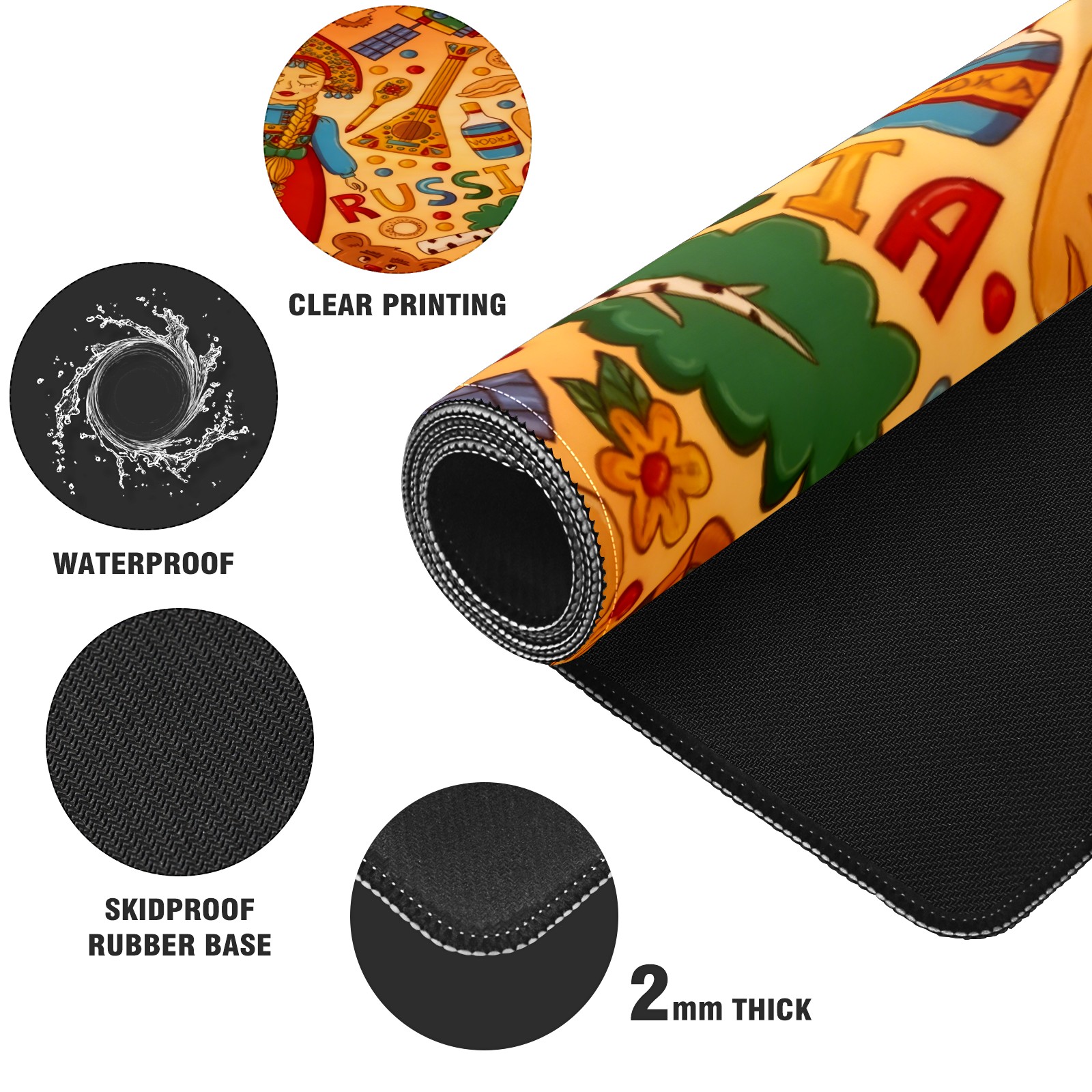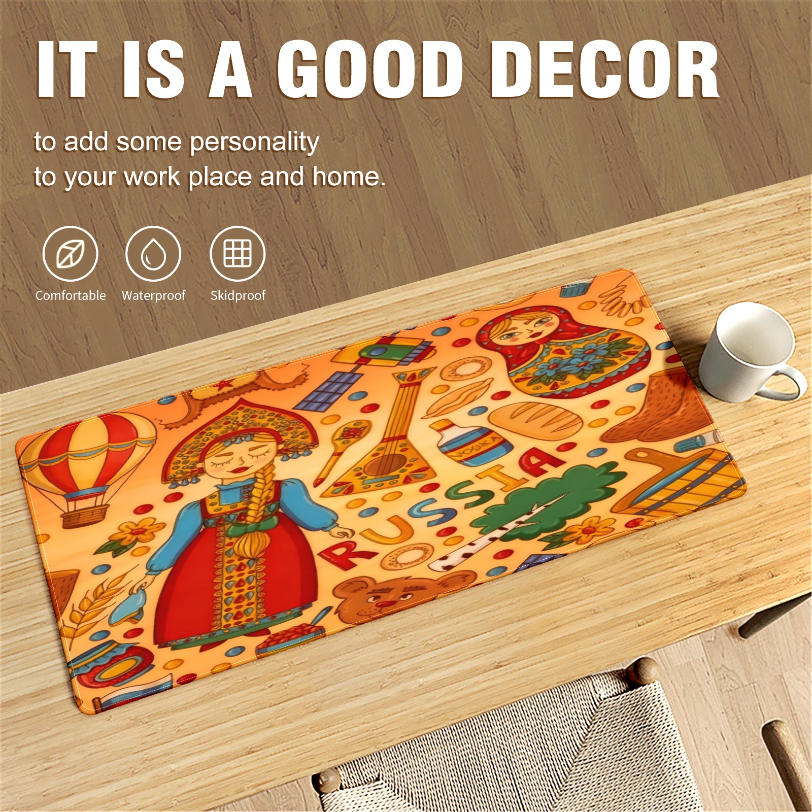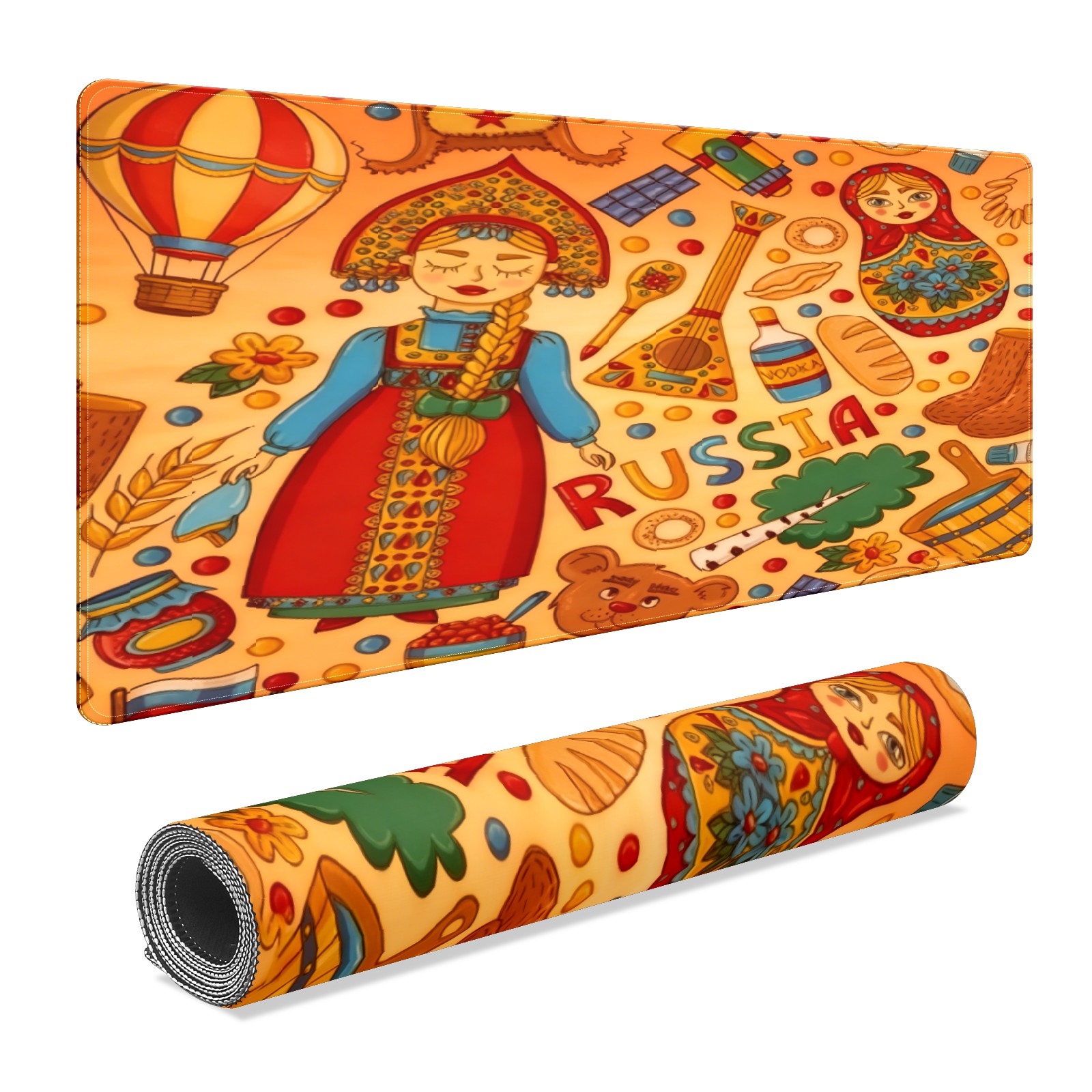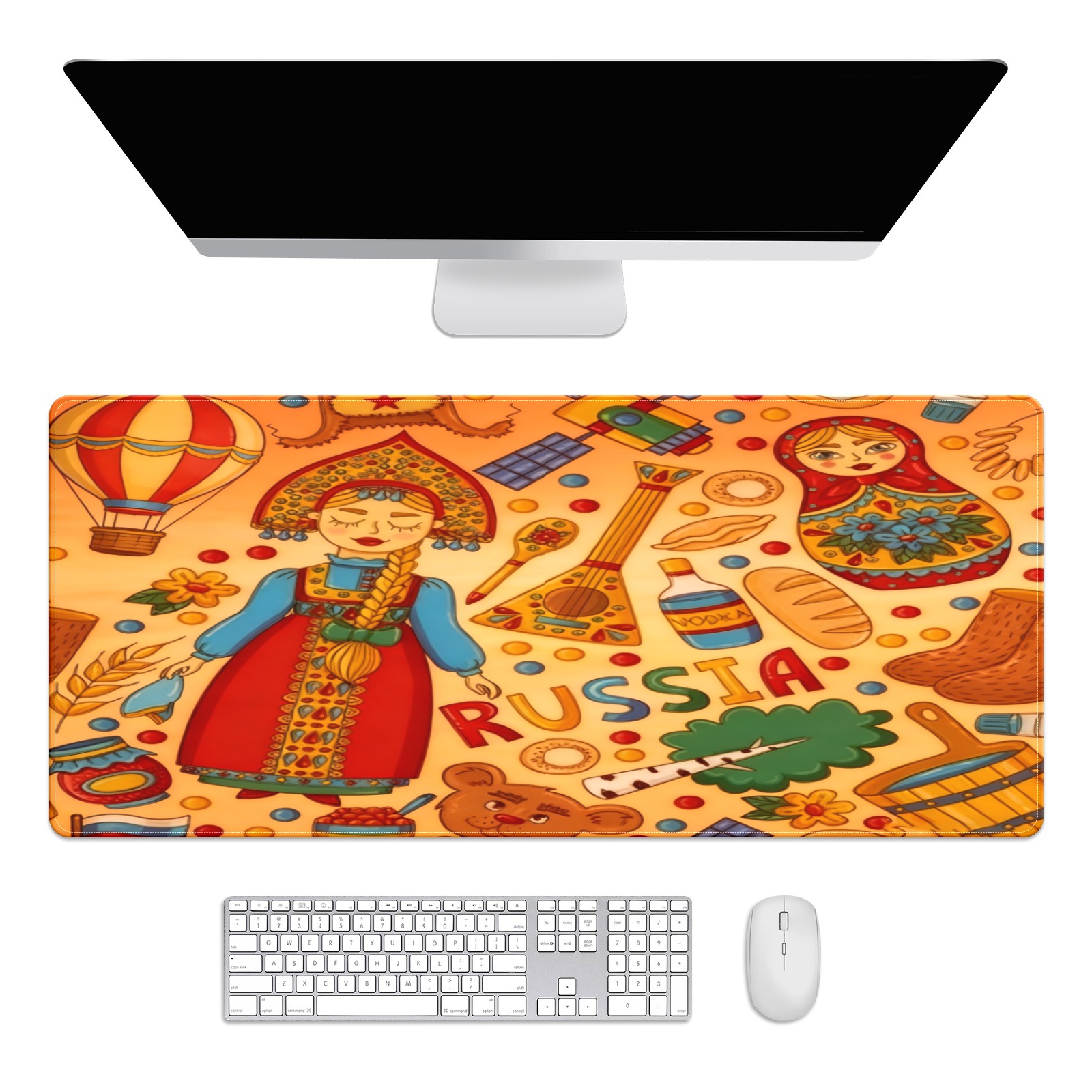 Large Gaming Mouse Pad (90x40cm), Extended Waterproof Desk Mat with Non-Slip Rubber Base, Folk Figures Orange for Gamers, Office & Home