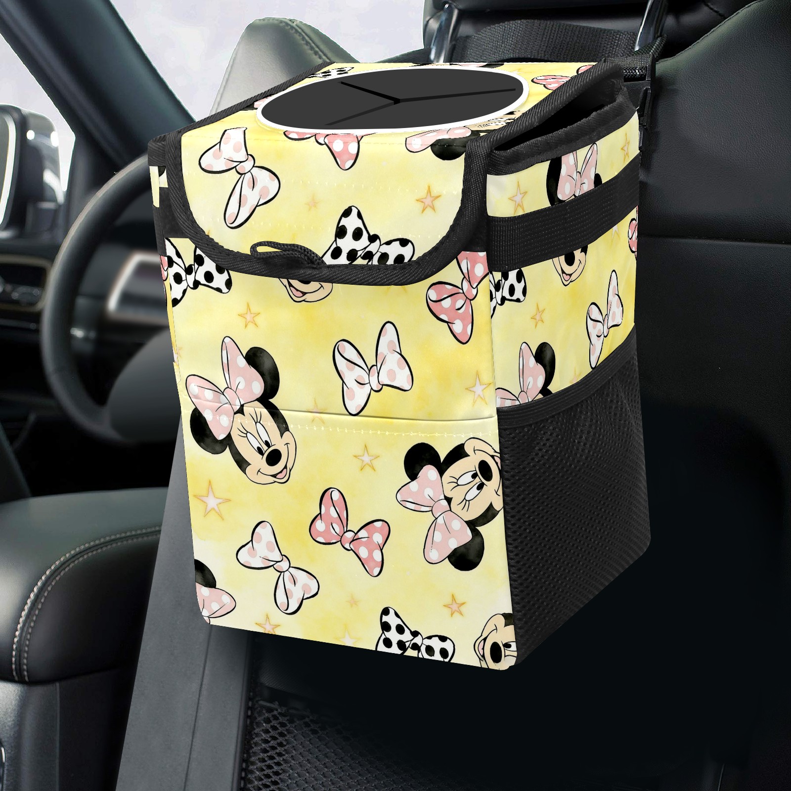 Car Trash Can with Lid, Small Portable Hanging Automotive Garbage Bin for Vehicles, Leakproof Waste Bag Container for SUV Truck Van Interior Auto Travel Road Trips(Mickey Land)