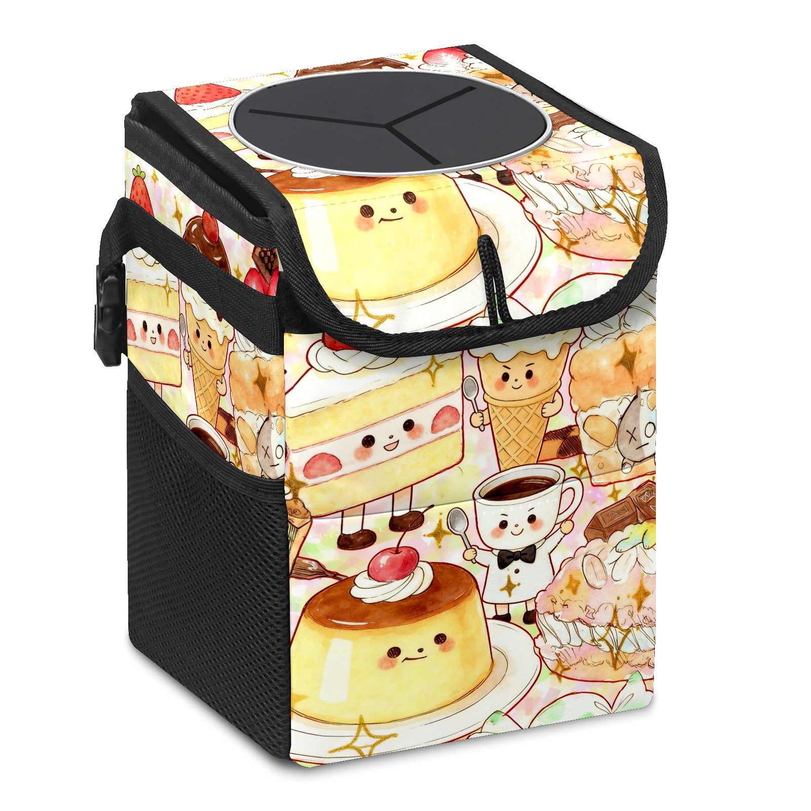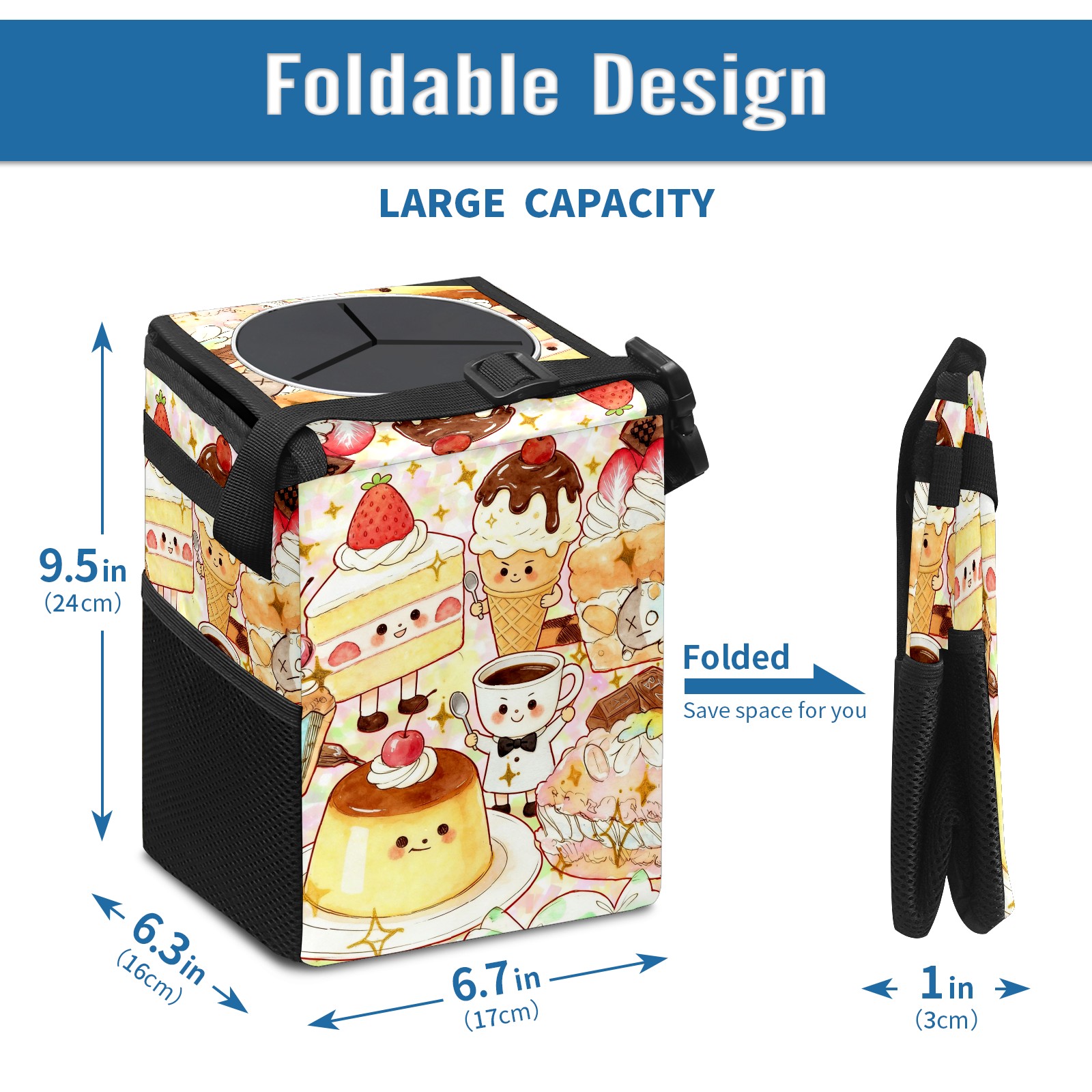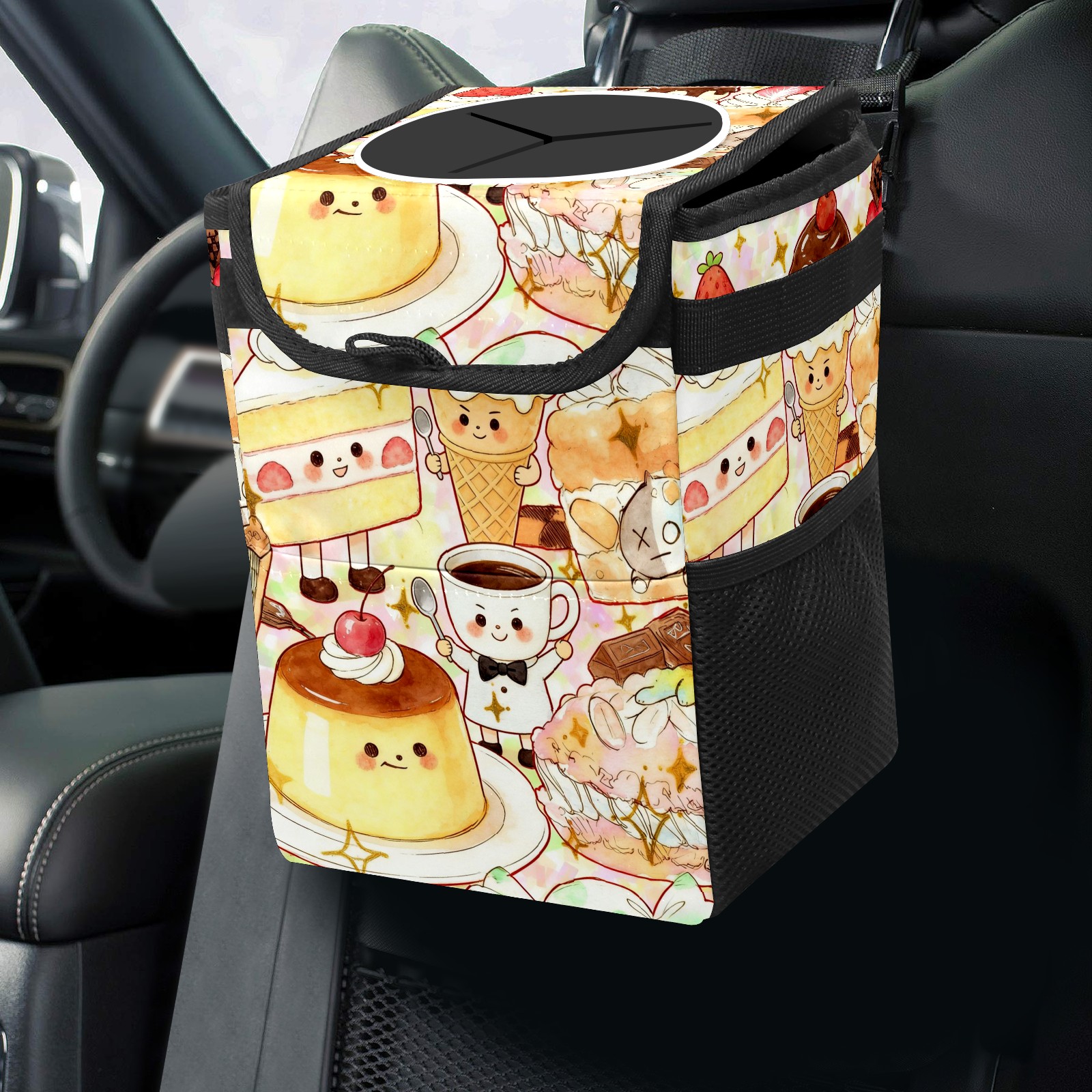 Car Trash Can with Lid, Small Portable Hanging Automotive Garbage Bin for Vehicles, Leakproof Waste Bag Container for SUV Truck Van Interior Auto Travel Road Trips(Dessert Land)