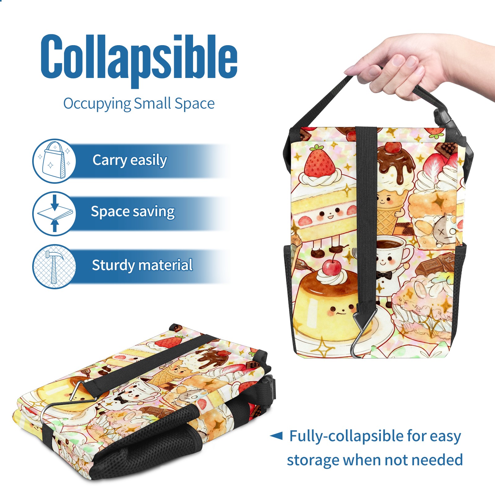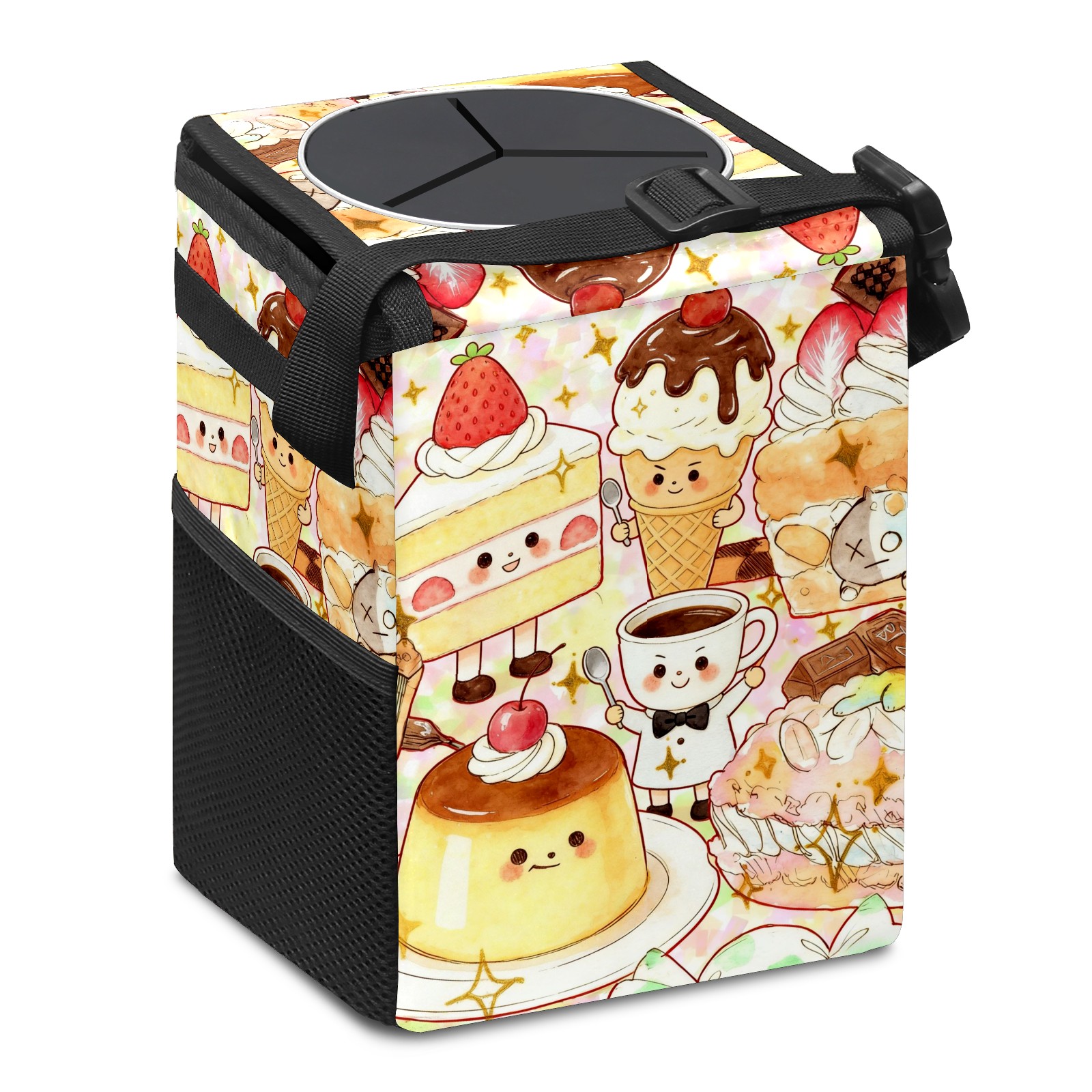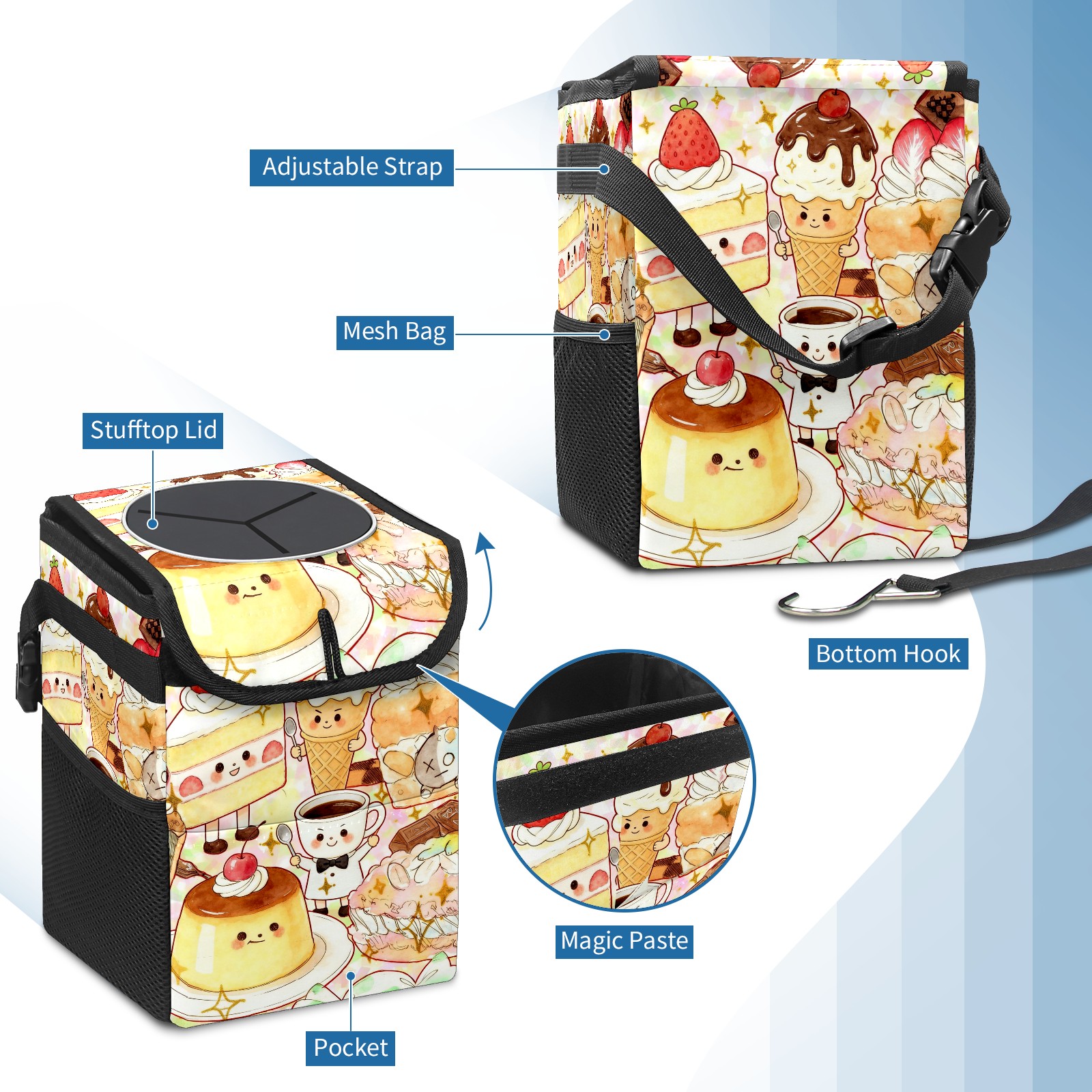 Car Trash Can with Lid, Small Portable Hanging Automotive Garbage Bin for Vehicles, Leakproof Waste Bag Container for SUV Truck Van Interior Auto Travel Road Trips(Dessert Land)