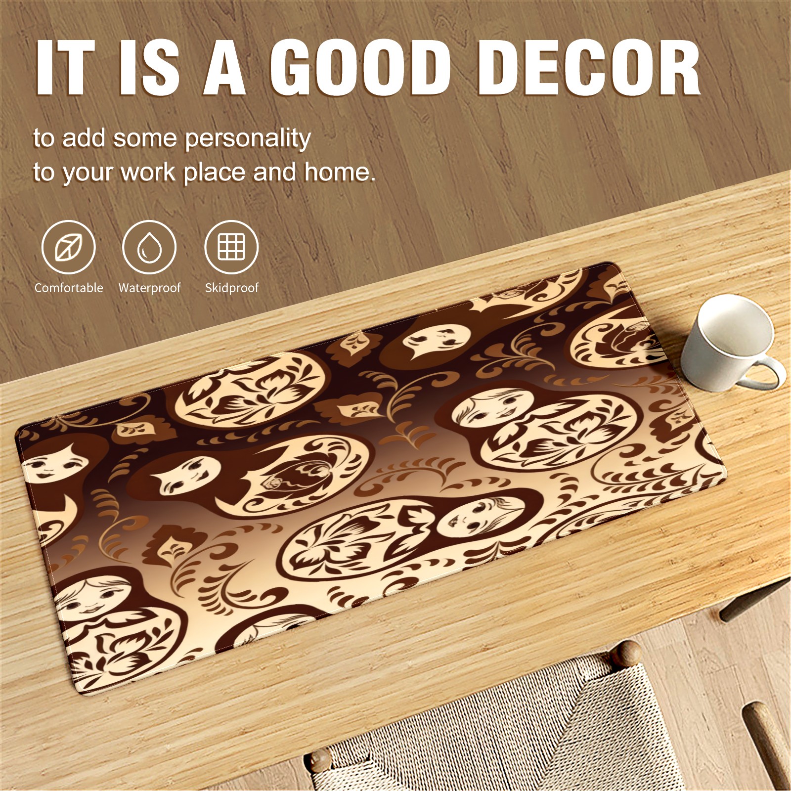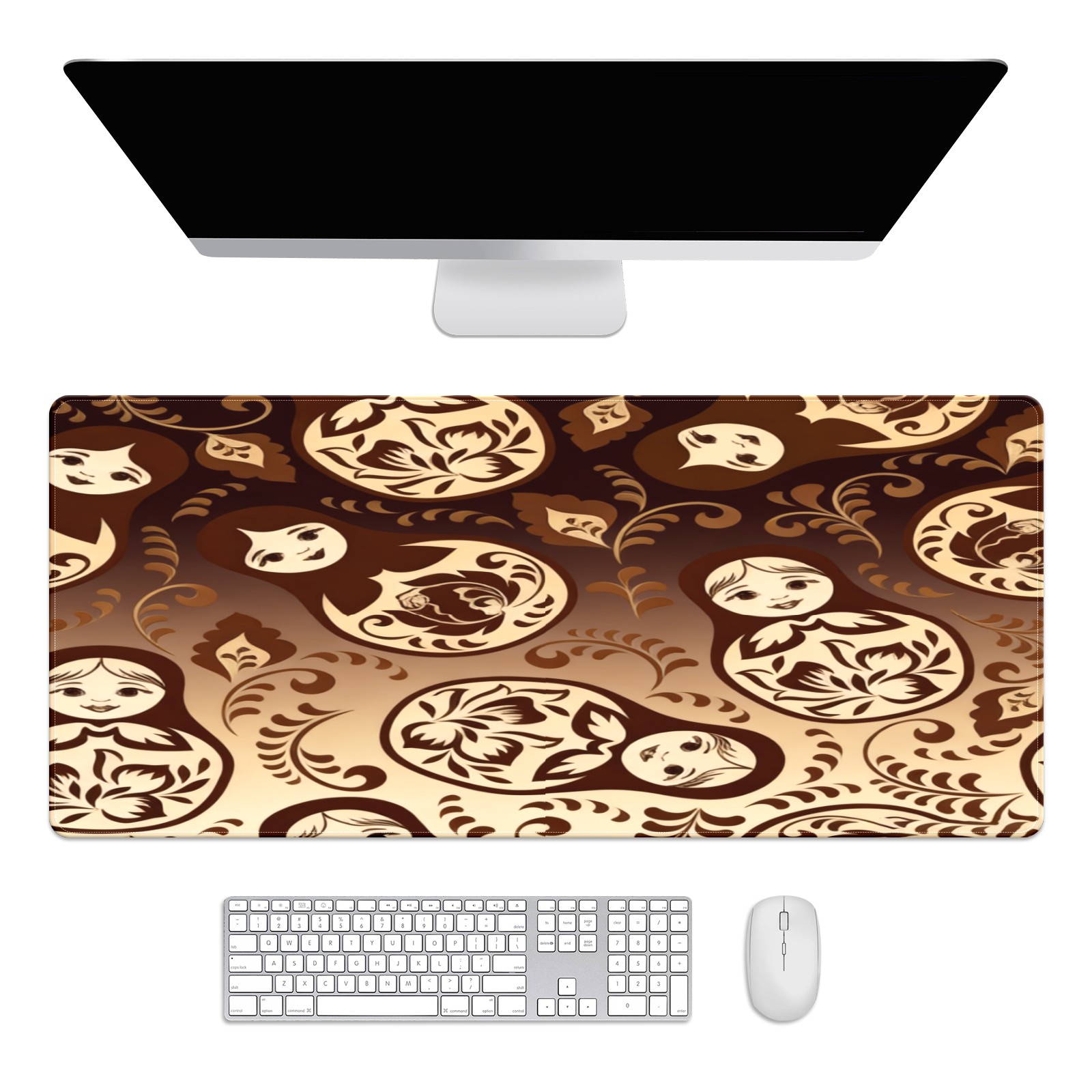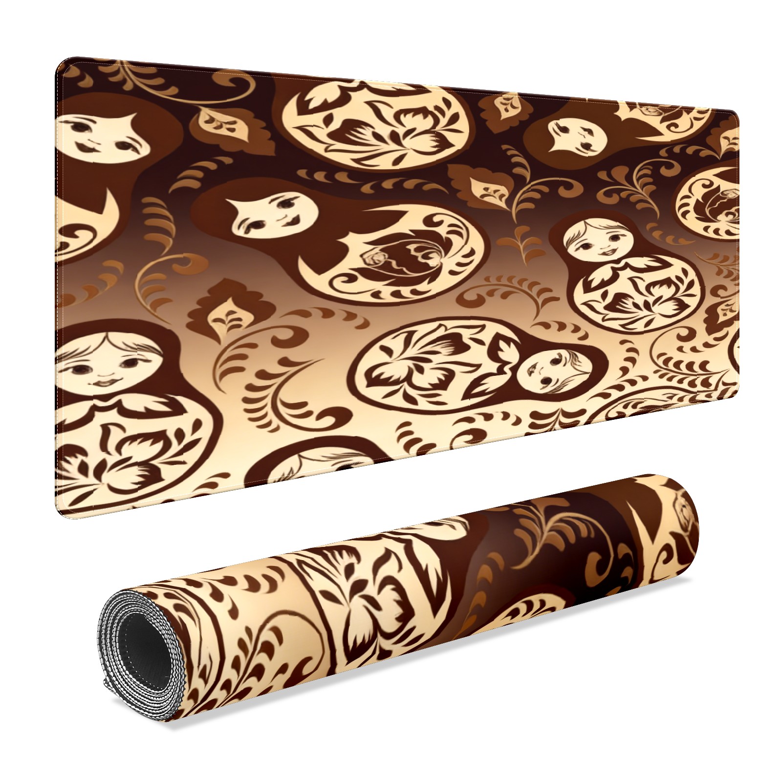 Large Gaming Mouse Pad (90x40cm), Extended Waterproof Desk Mat with Non-Slip Rubber Base, Vintage Patterns Brown for Gamers, Office & Home