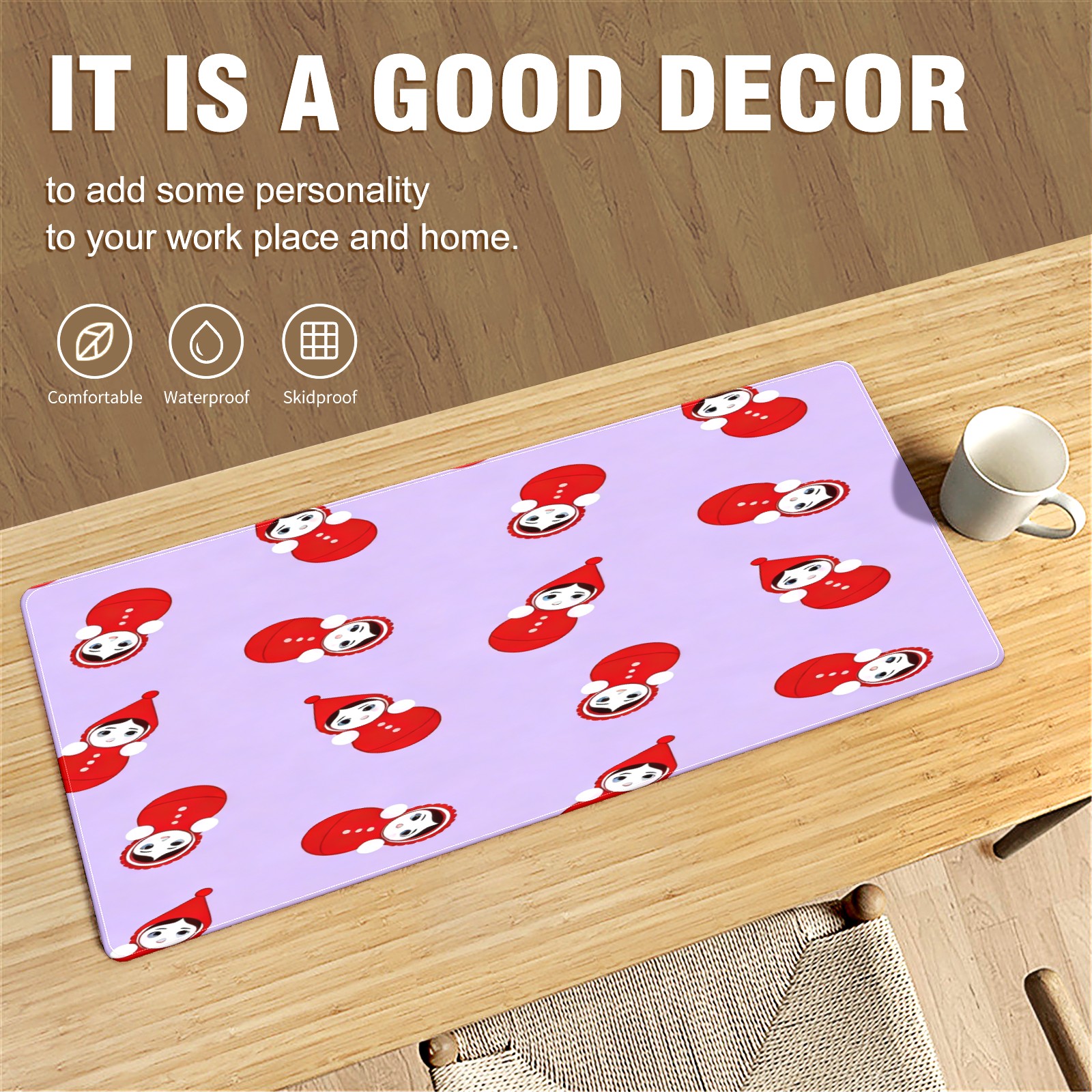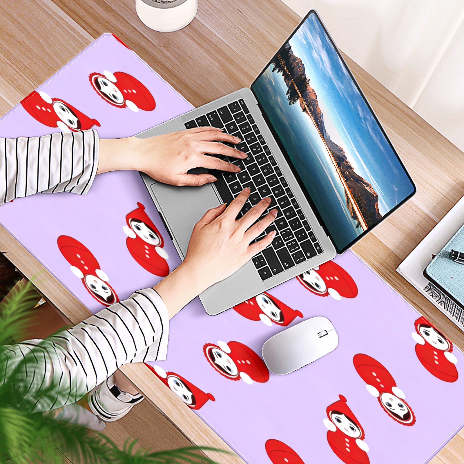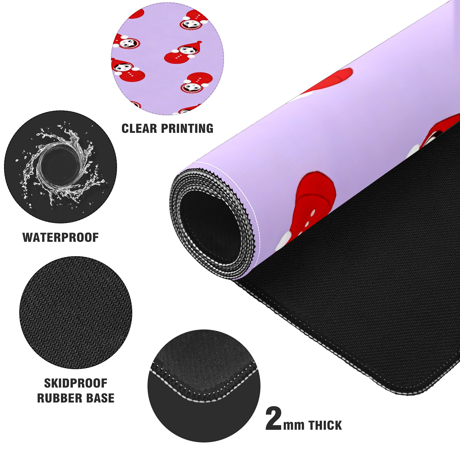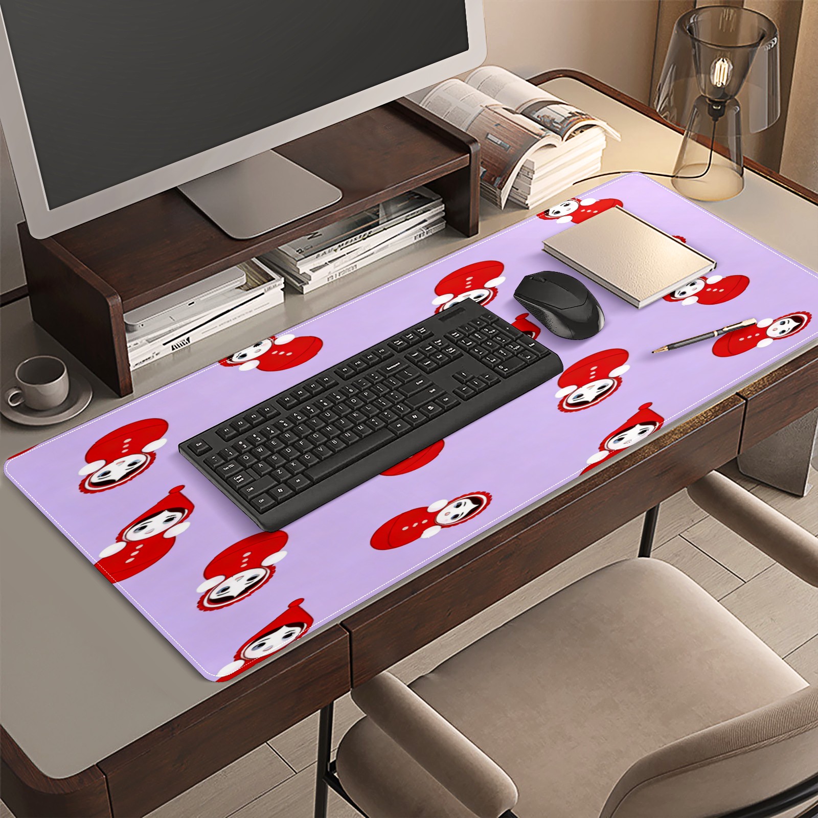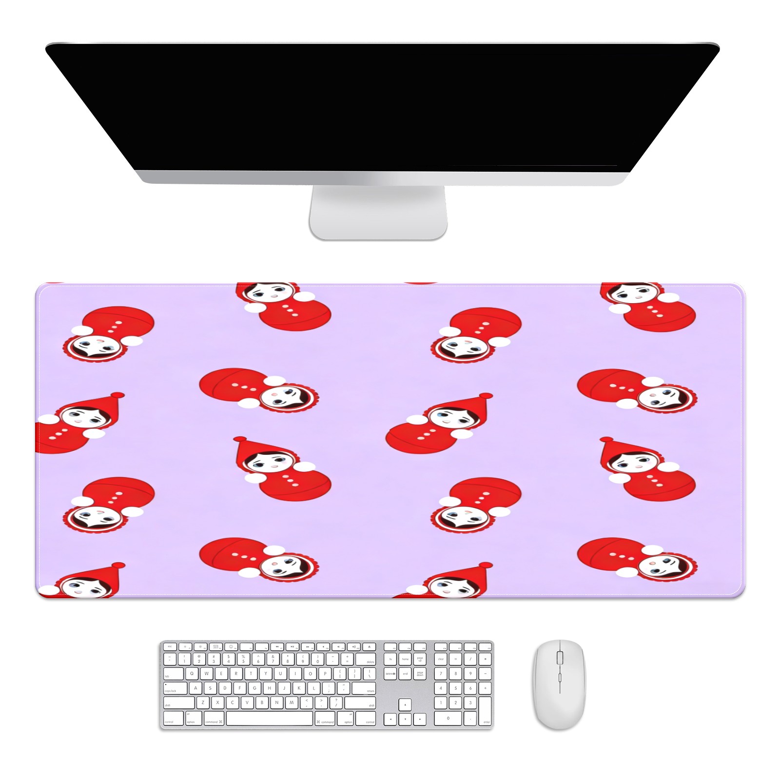Large Gaming Mouse Pad (90x40cm), Extended Waterproof Desk Mat with Non-Slip Rubber Base, Playful Dolls Purple for Gamers, Office & Home