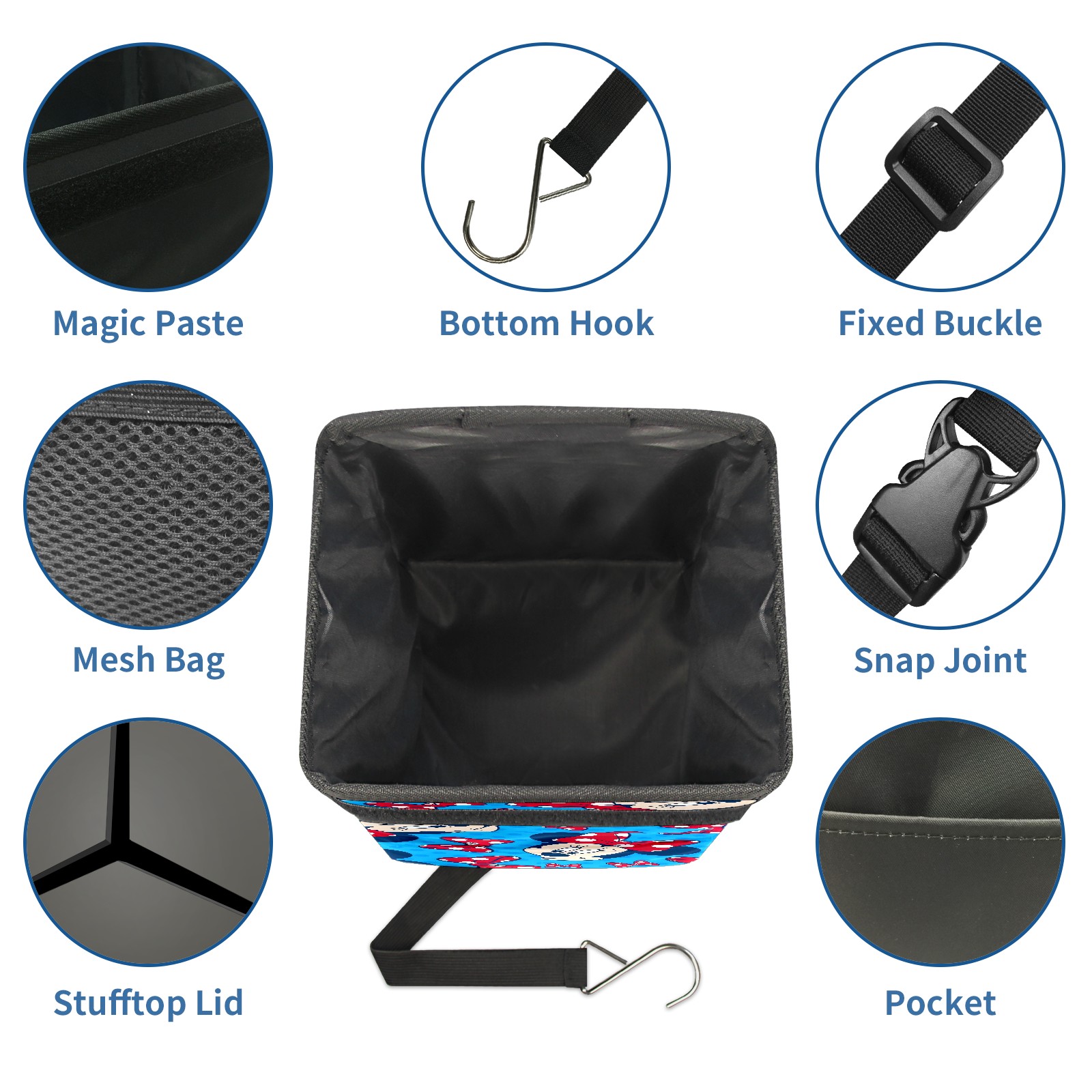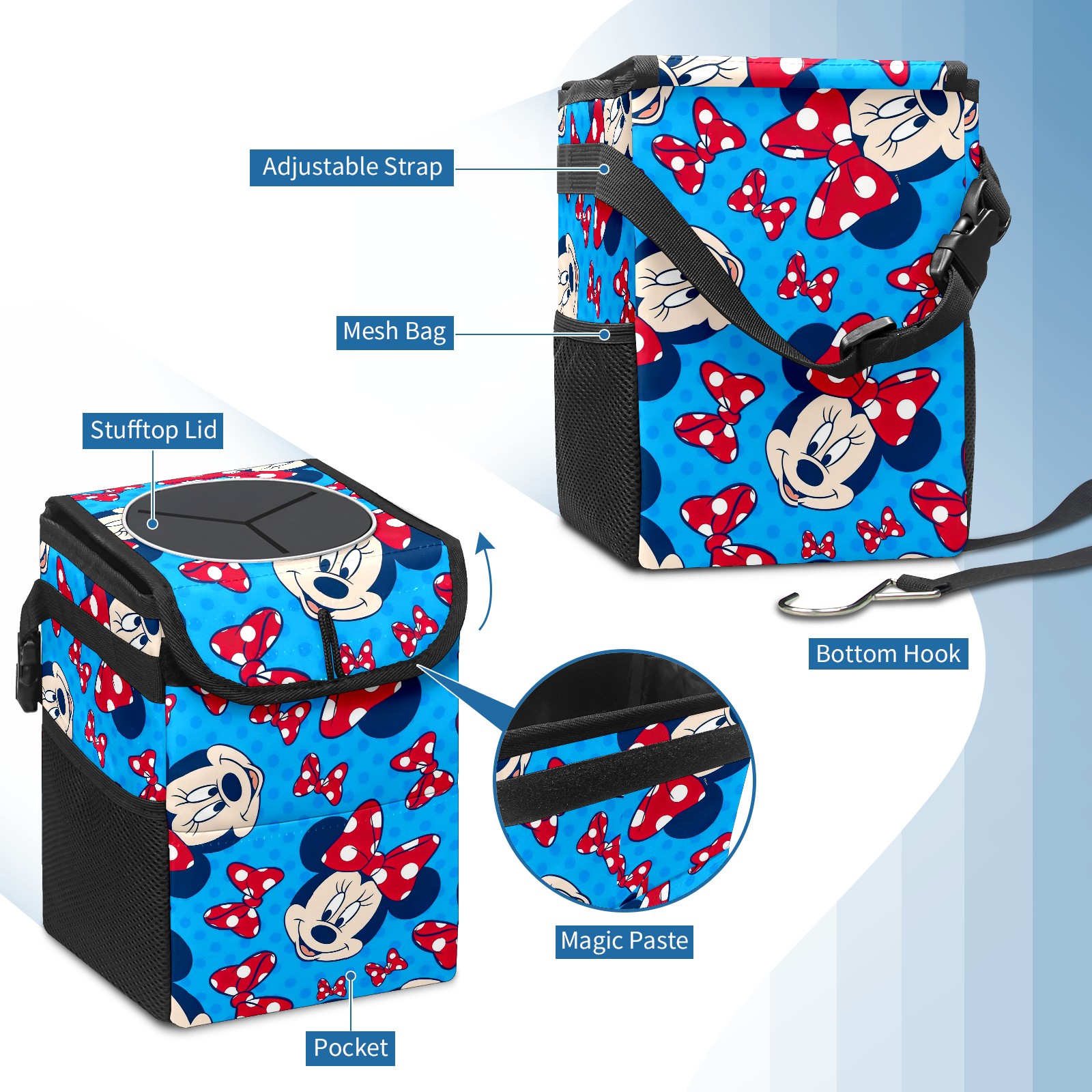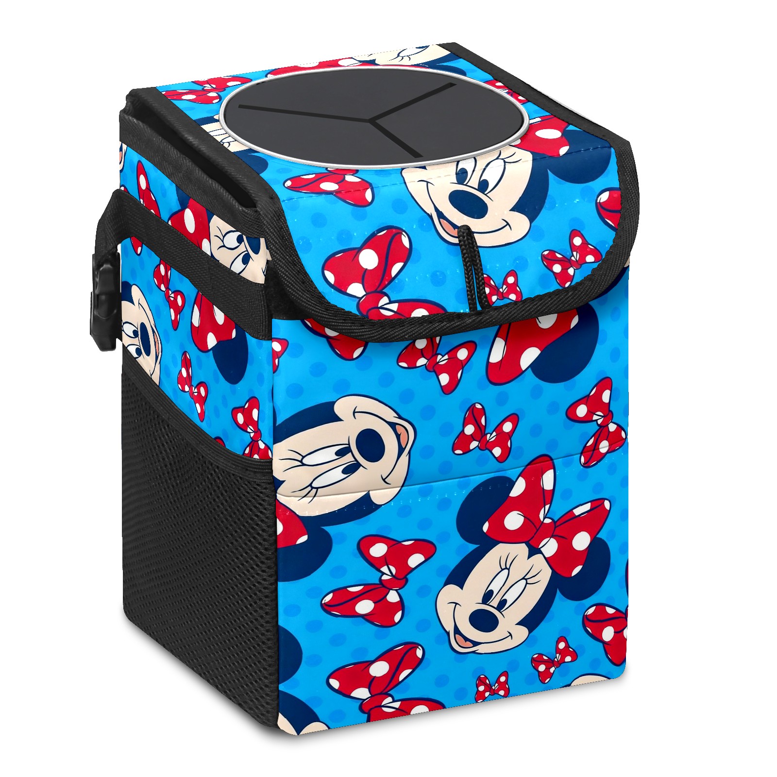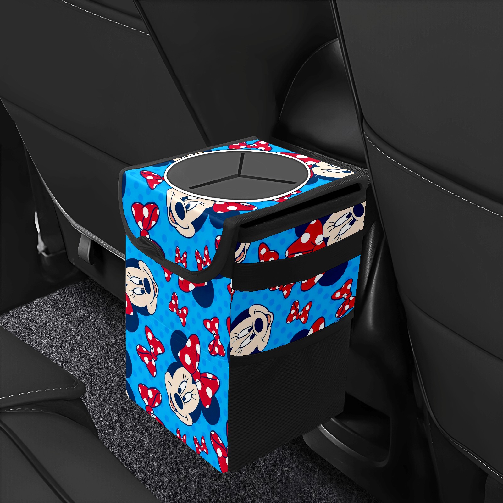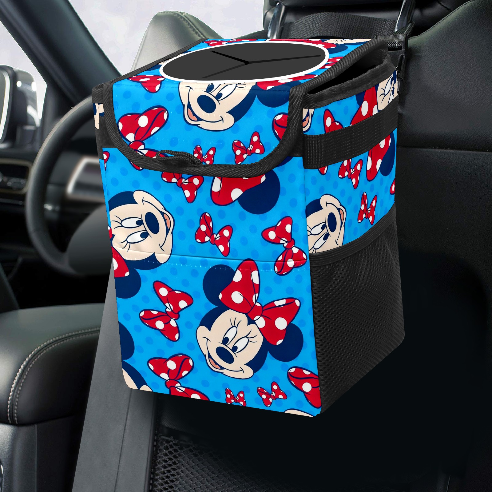Car Trash Can with Lid, Small Portable Hanging Automotive Garbage Bin for Vehicles, Leakproof Waste Bag Container for SUV Truck Van Interior Auto Travel Road Trips(Mickey Blue)