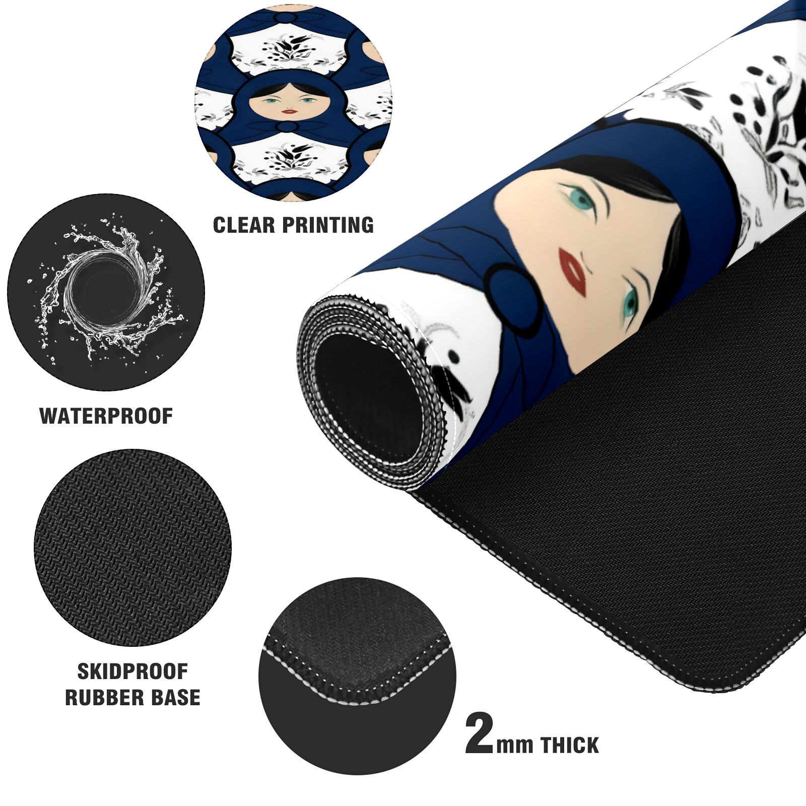 Large Gaming Mouse Pad (90x40cm), Extended Waterproof Desk Mat with Non-Slip Rubber Base, Cool Dolls Blue for Gamers, Office & Home