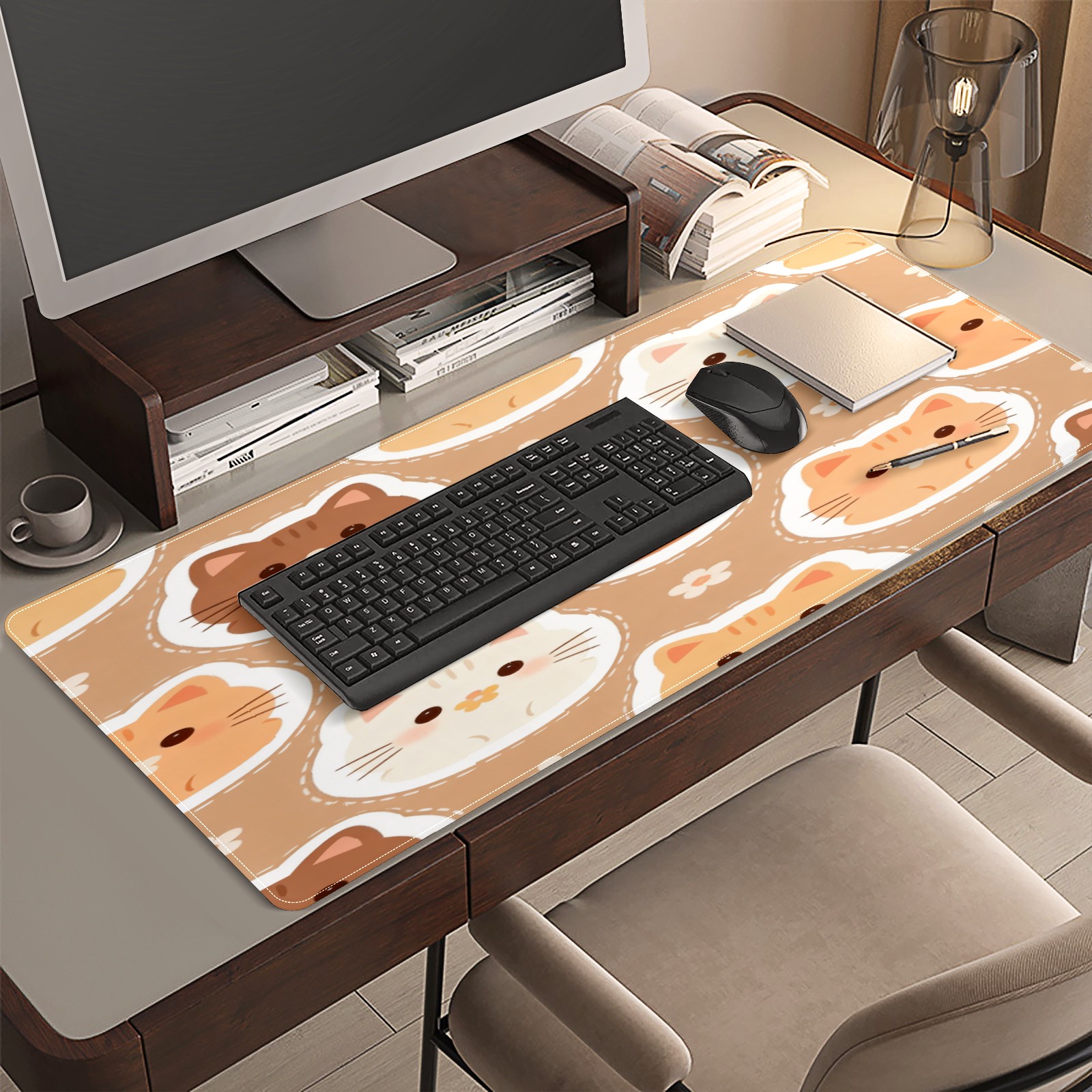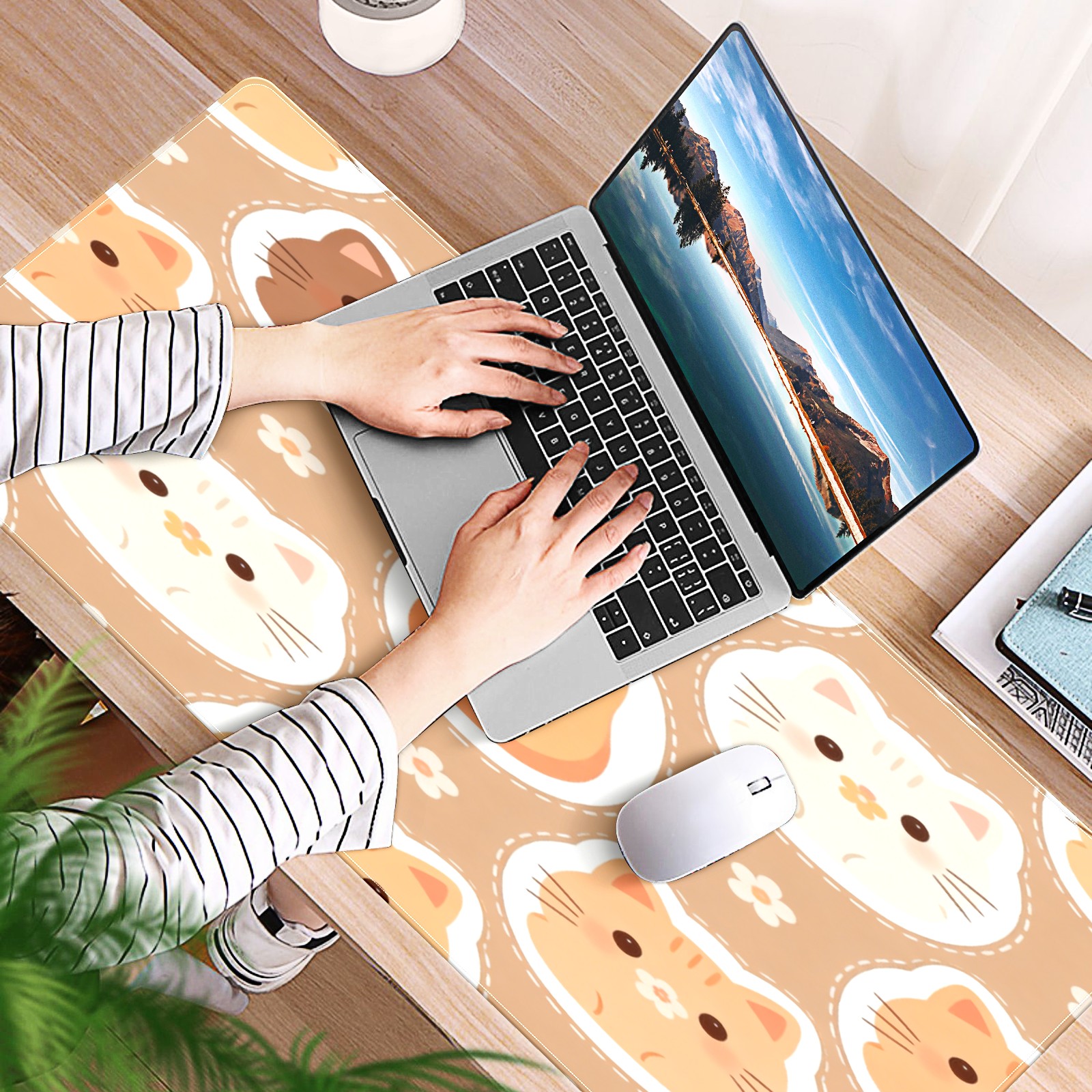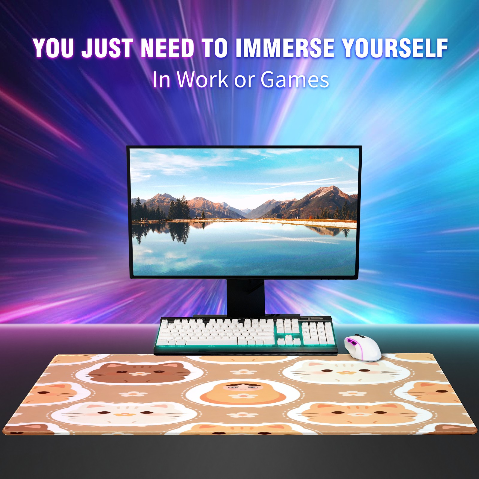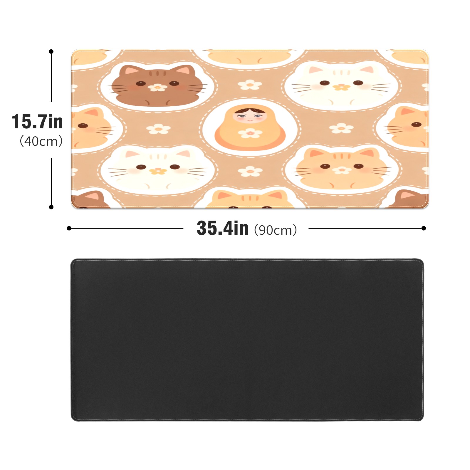 Large Gaming Mouse Pad (90x40cm), Extended Waterproof Desk Mat with Non-Slip Rubber Base, Warm Cats Brown for Gamers, Office & Home