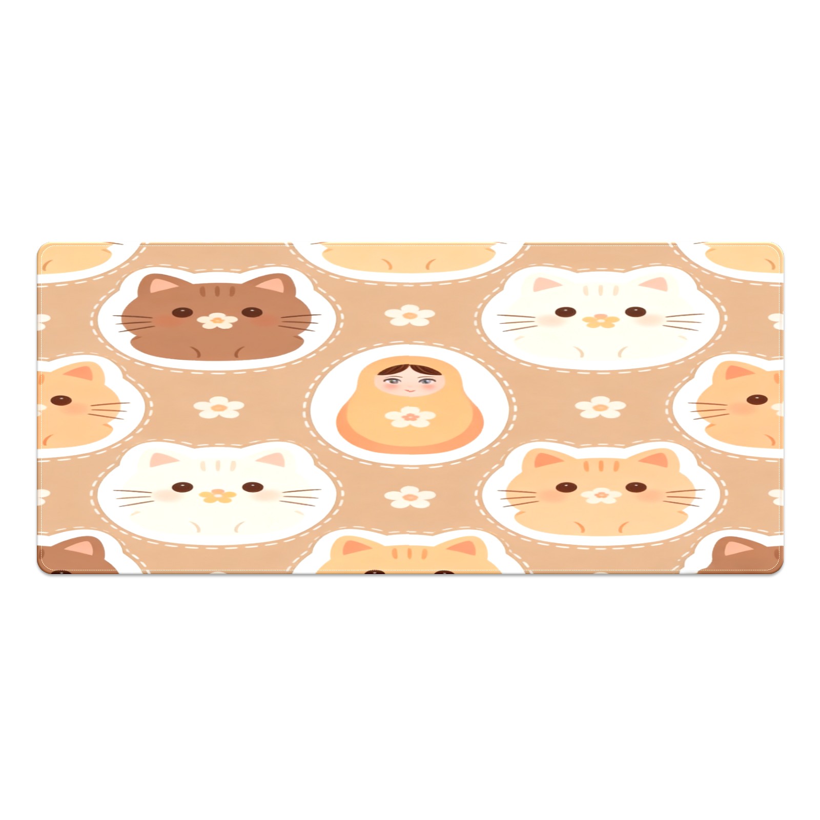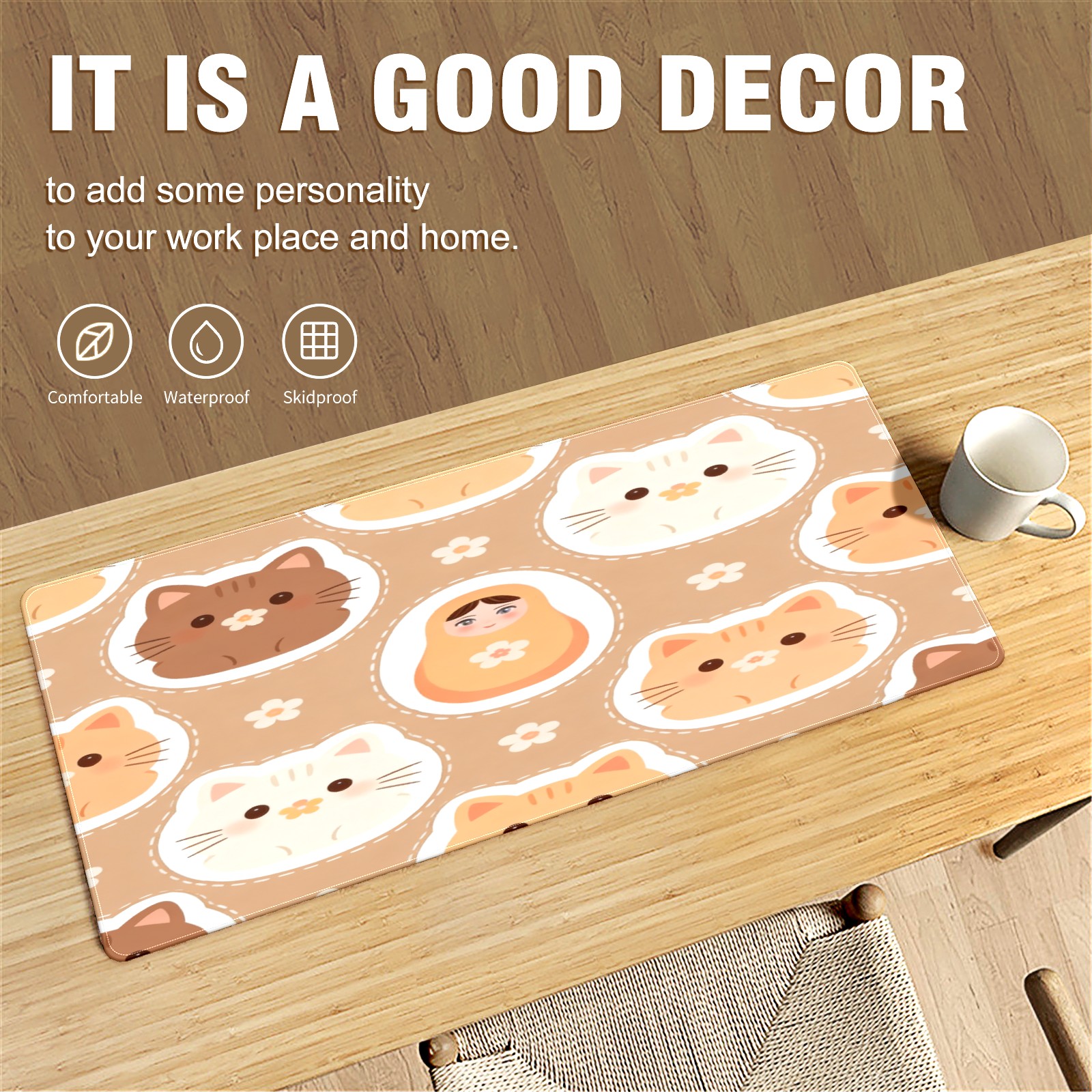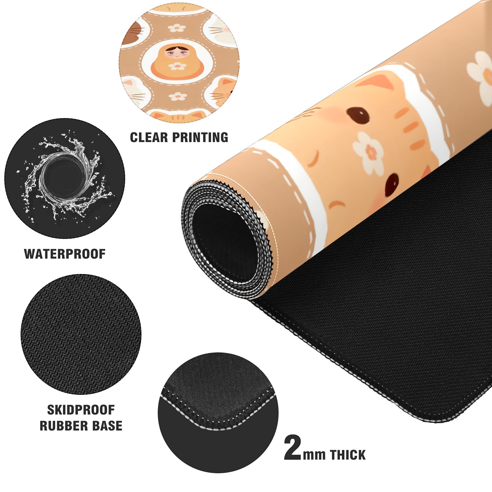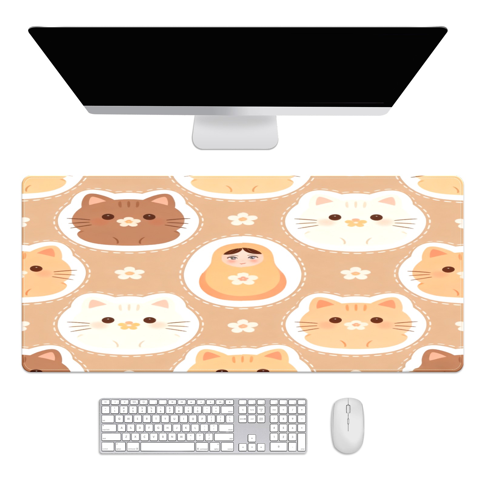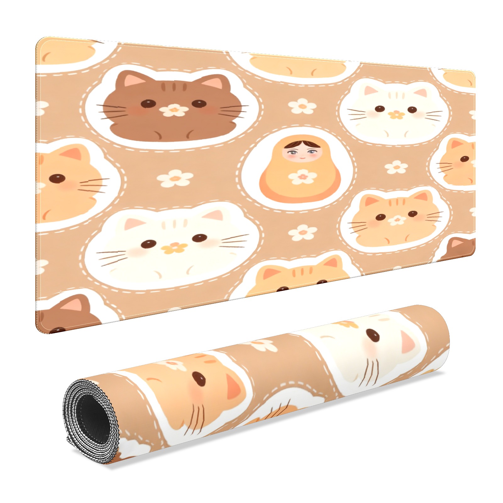 Large Gaming Mouse Pad (90x40cm), Extended Waterproof Desk Mat with Non-Slip Rubber Base, Warm Cats Brown for Gamers, Office & Home