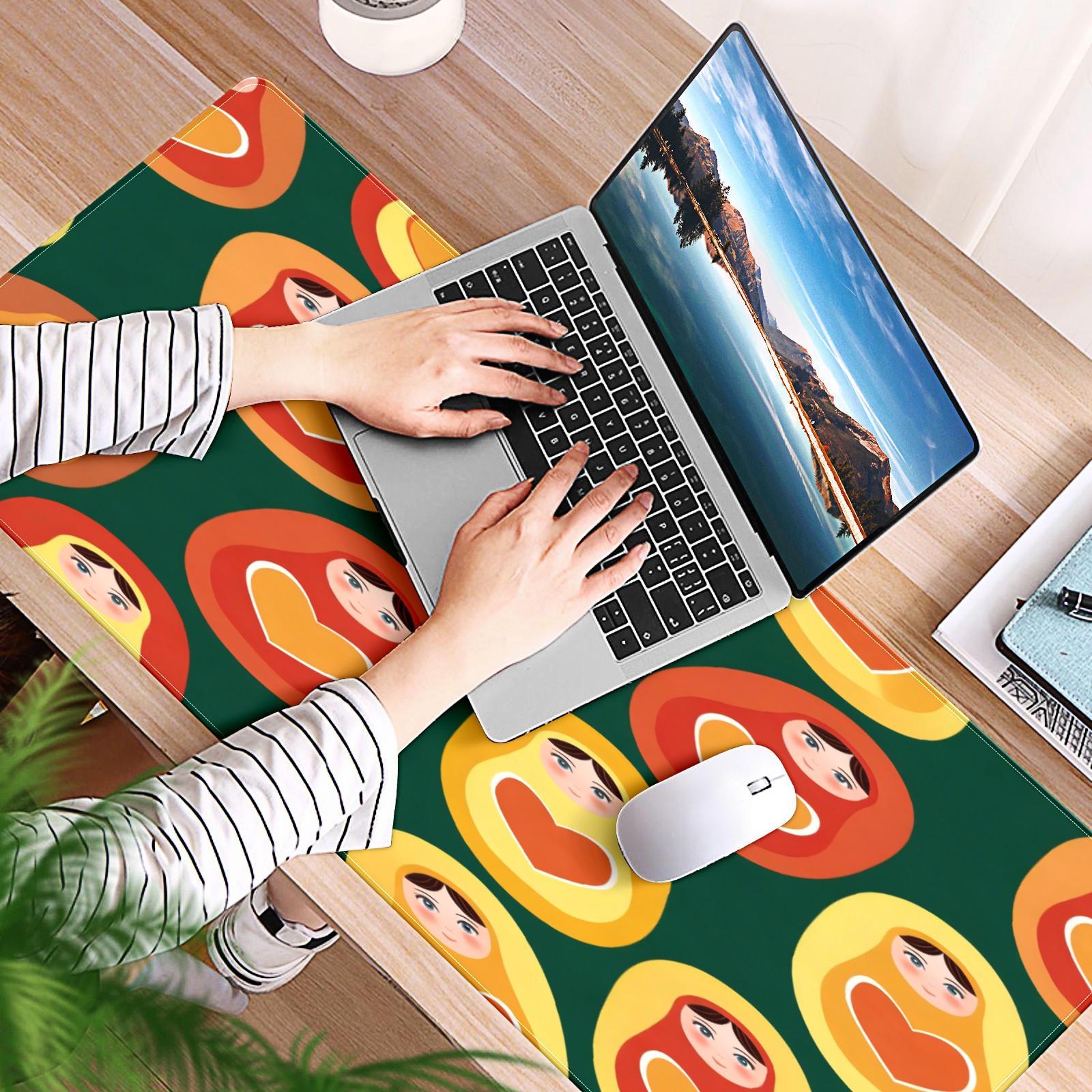 Large Gaming Mouse Pad (90x40cm), Extended Waterproof Desk Mat with Non-Slip Rubber Base, Vintage Dolls Green for Gamers, Office & Home