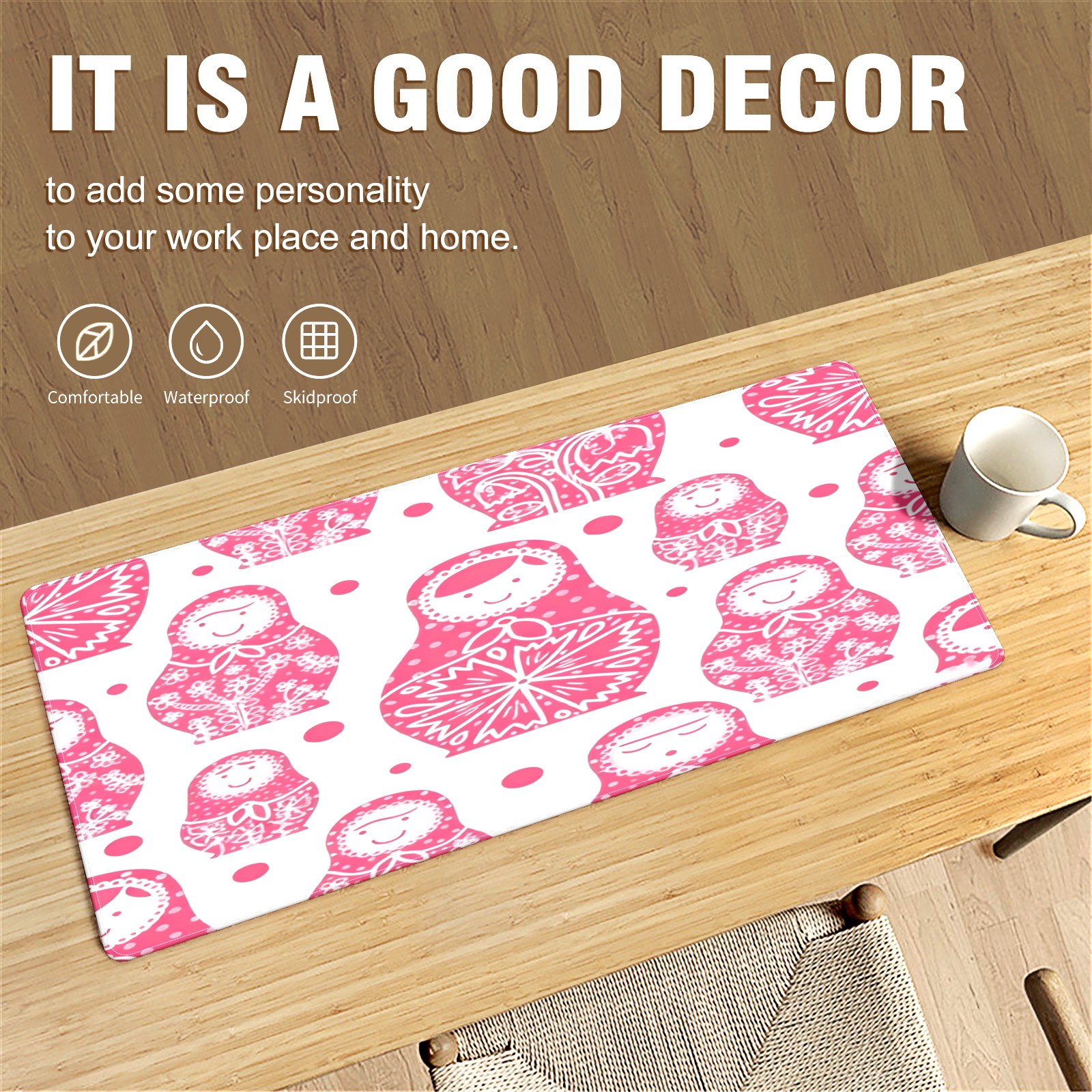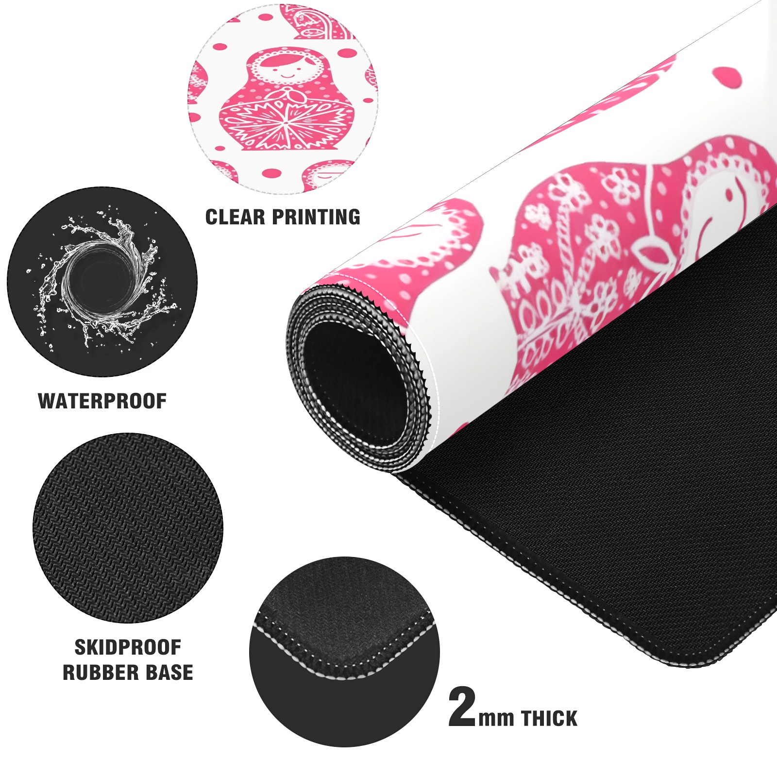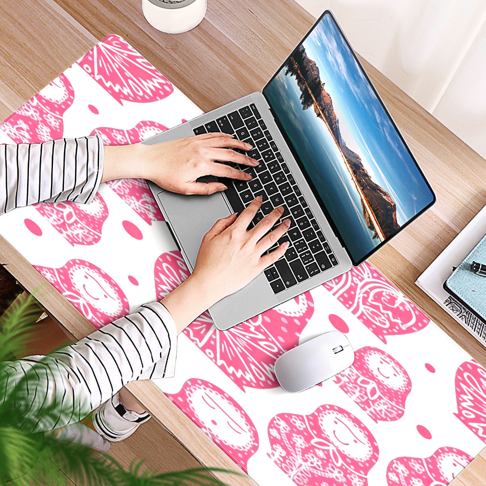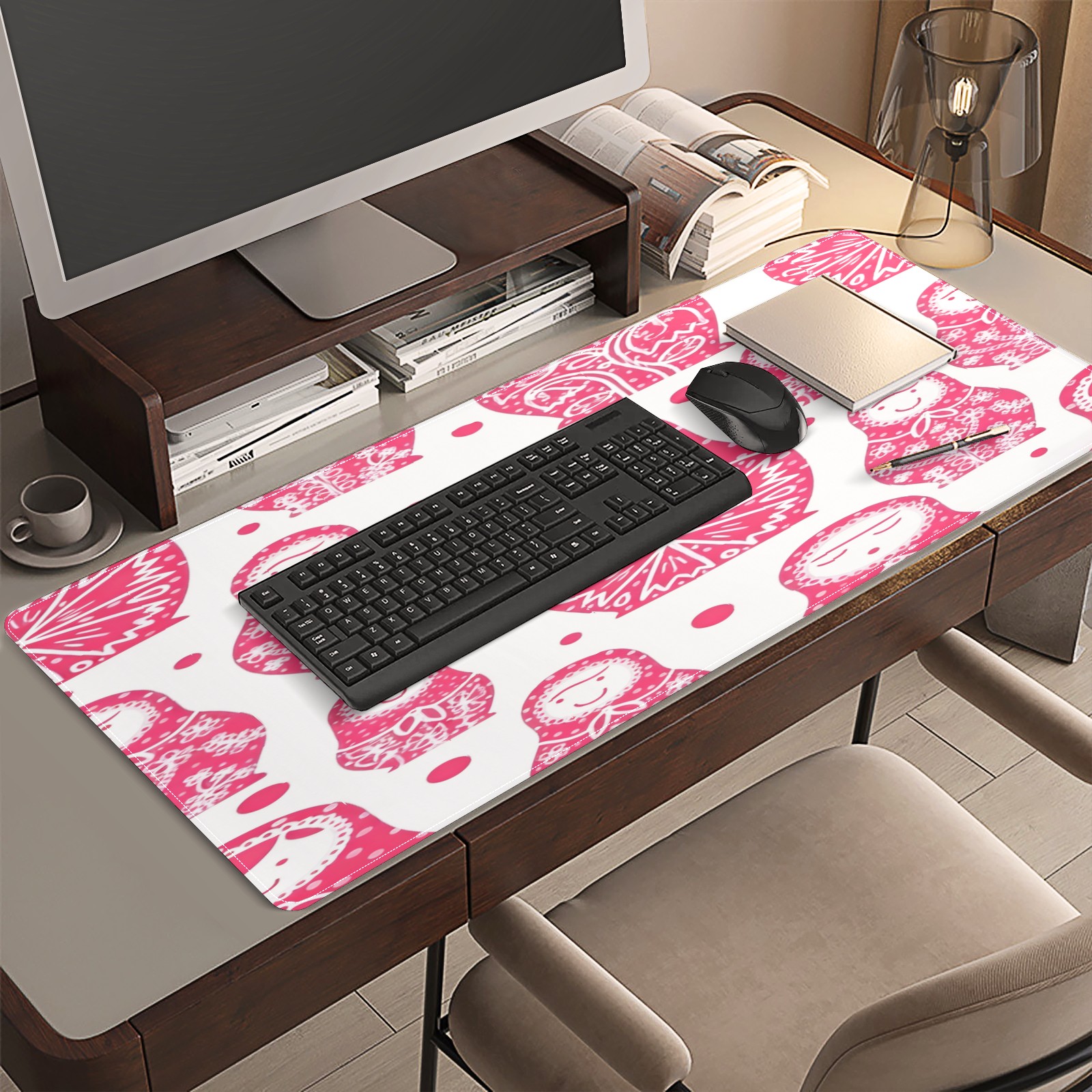 Large Gaming Mouse Pad (90x40cm), Extended Waterproof Desk Mat with Non-Slip Rubber Base, Soft Dolls Pink for Gamers, Office & Home
