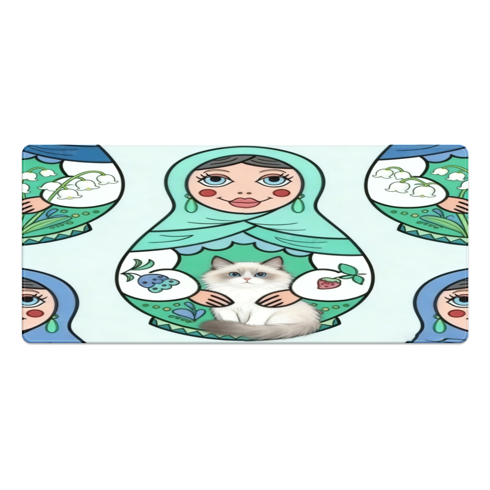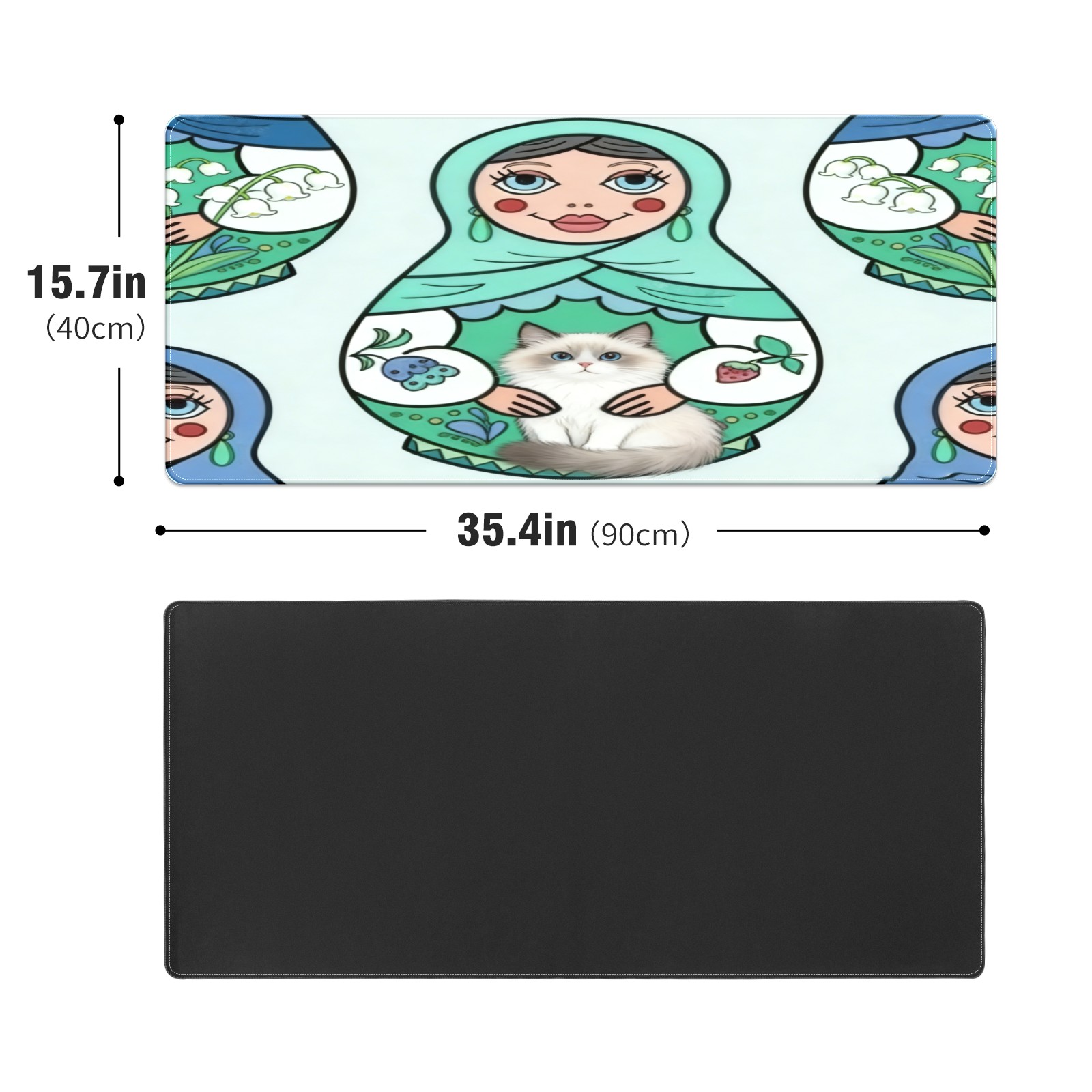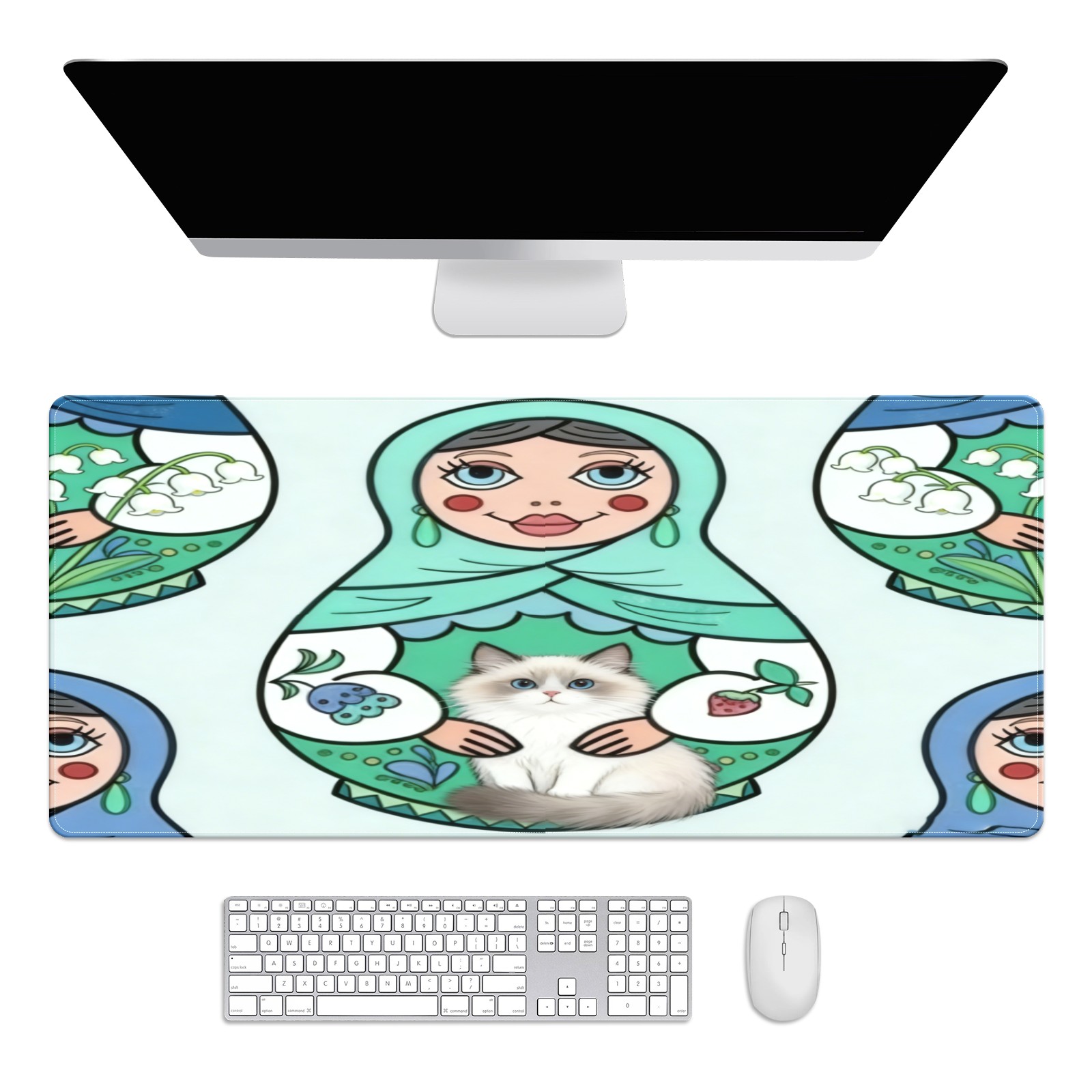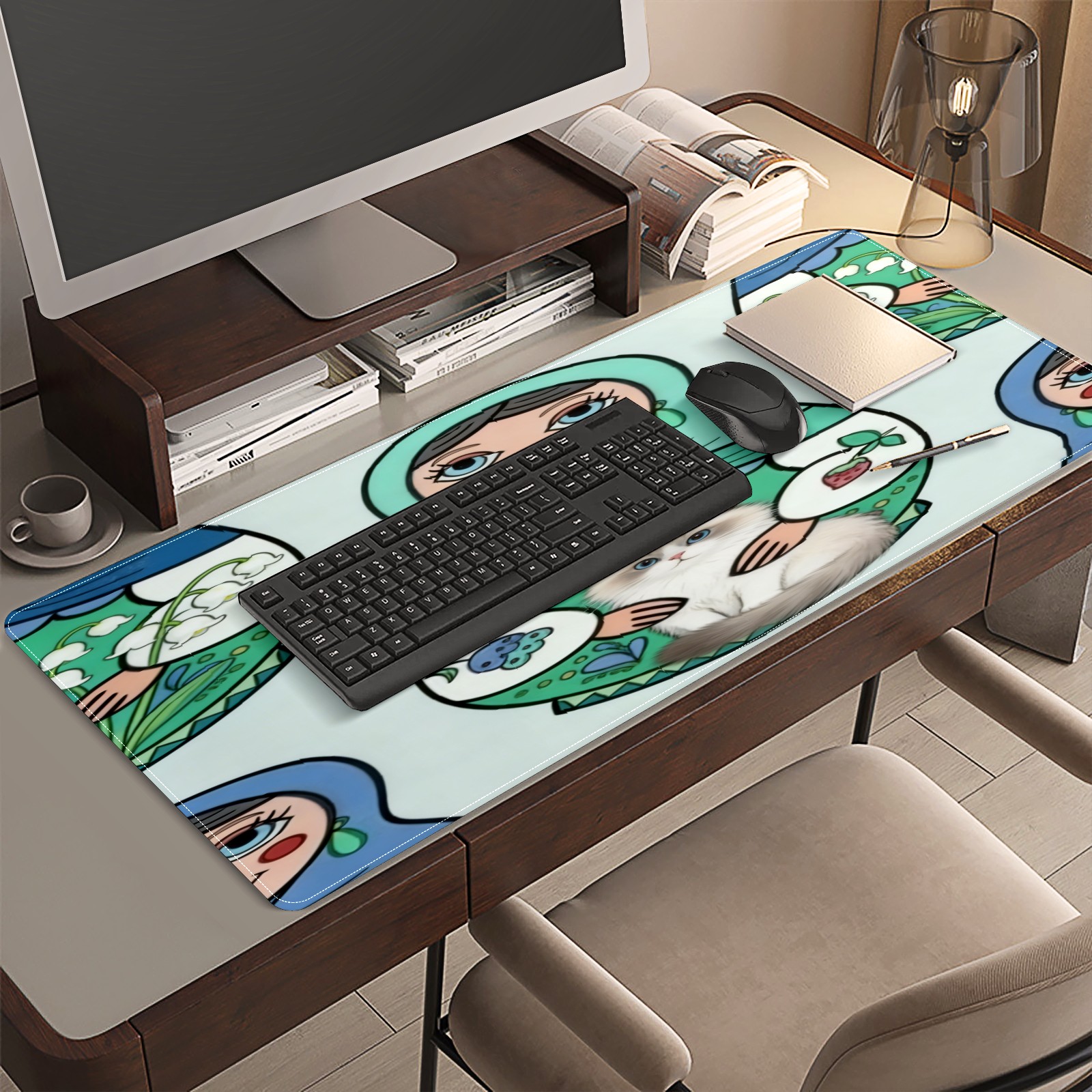 Large Gaming Mouse Pad (90x40cm), Extended Waterproof Desk Mat with Non-Slip Rubber Base, Cute Dolls Green for Gamers, Office & Home