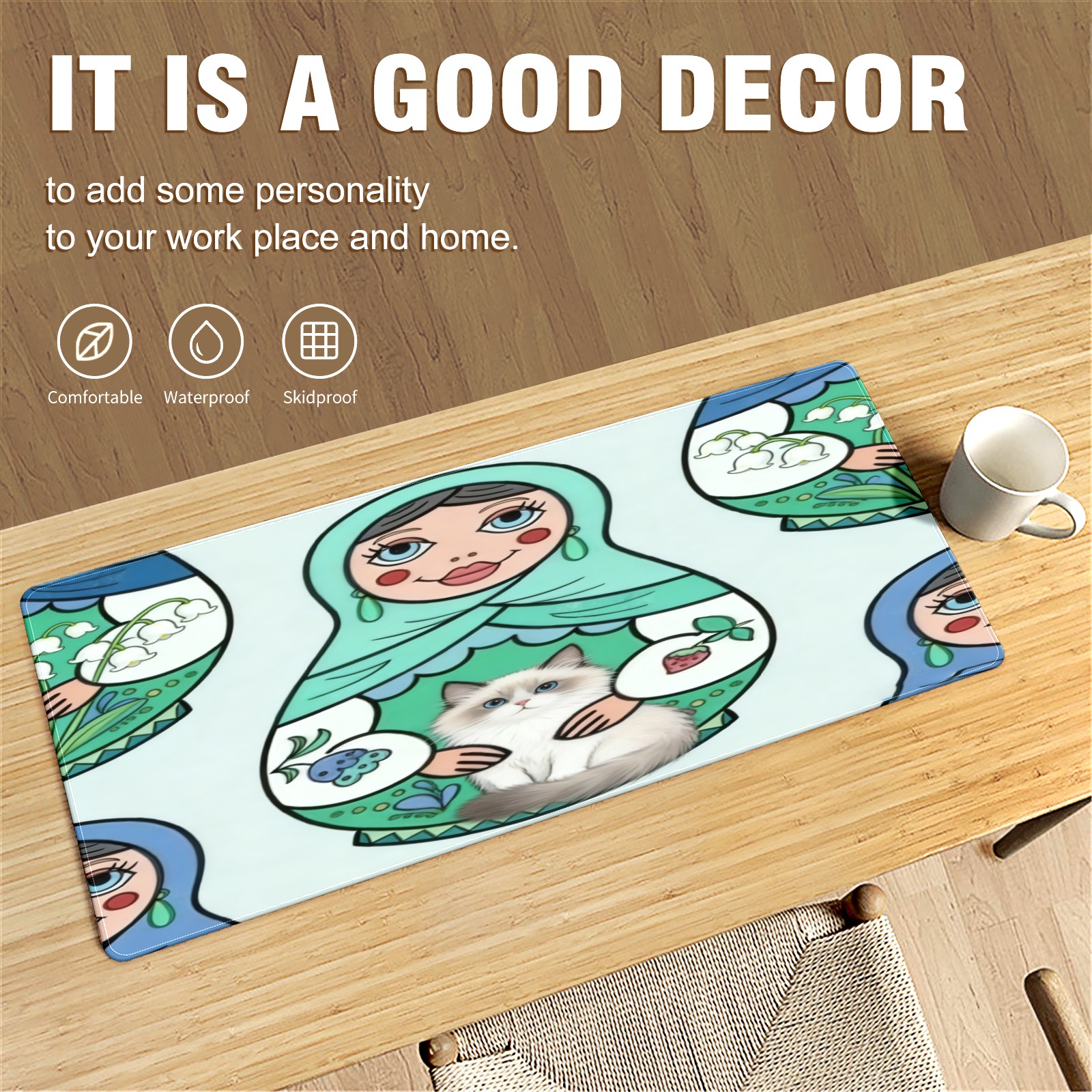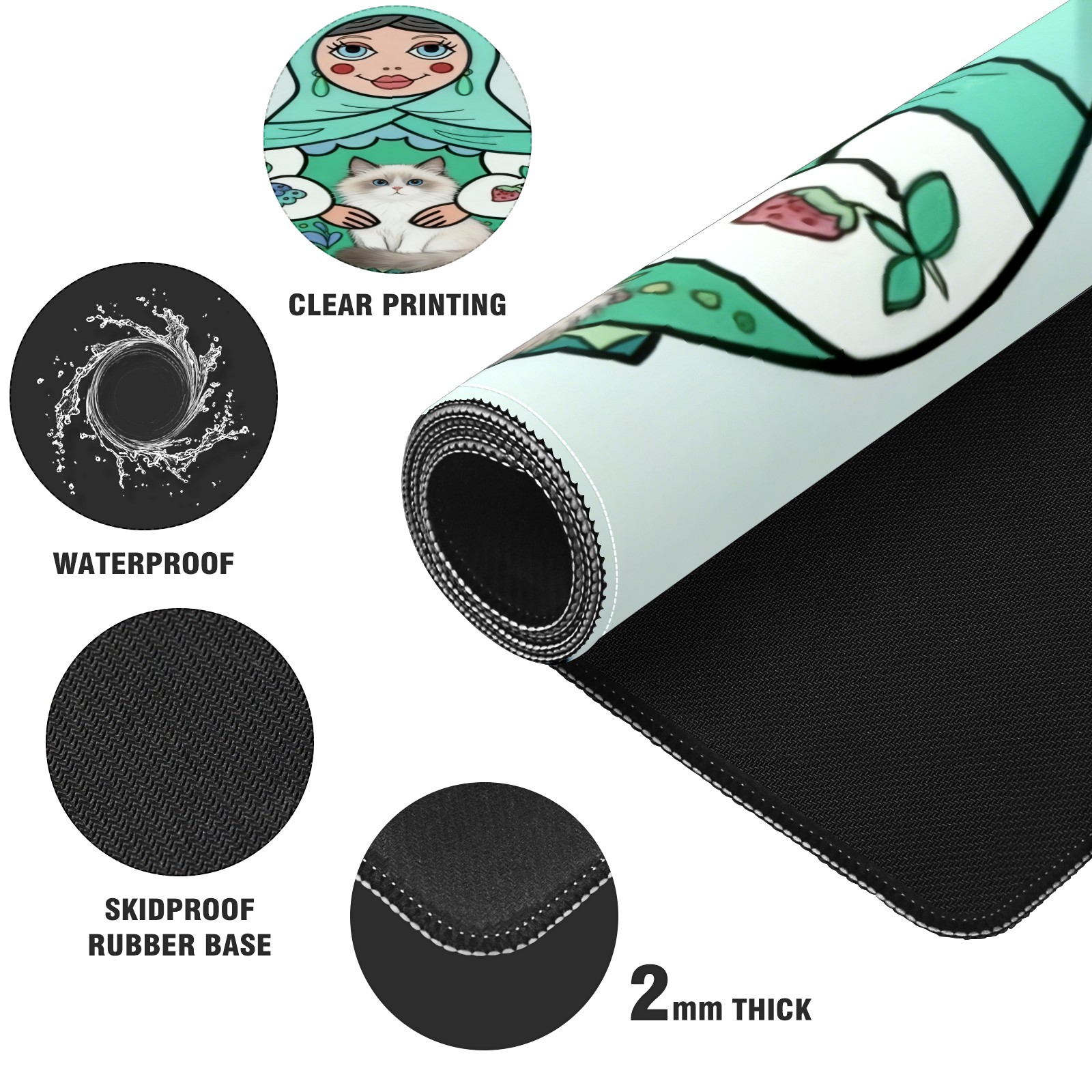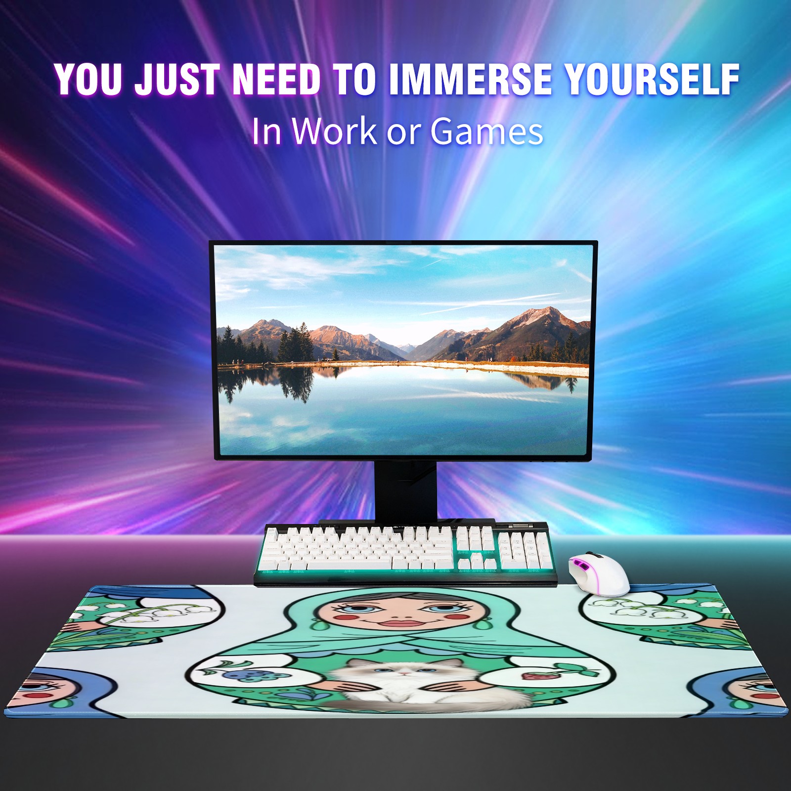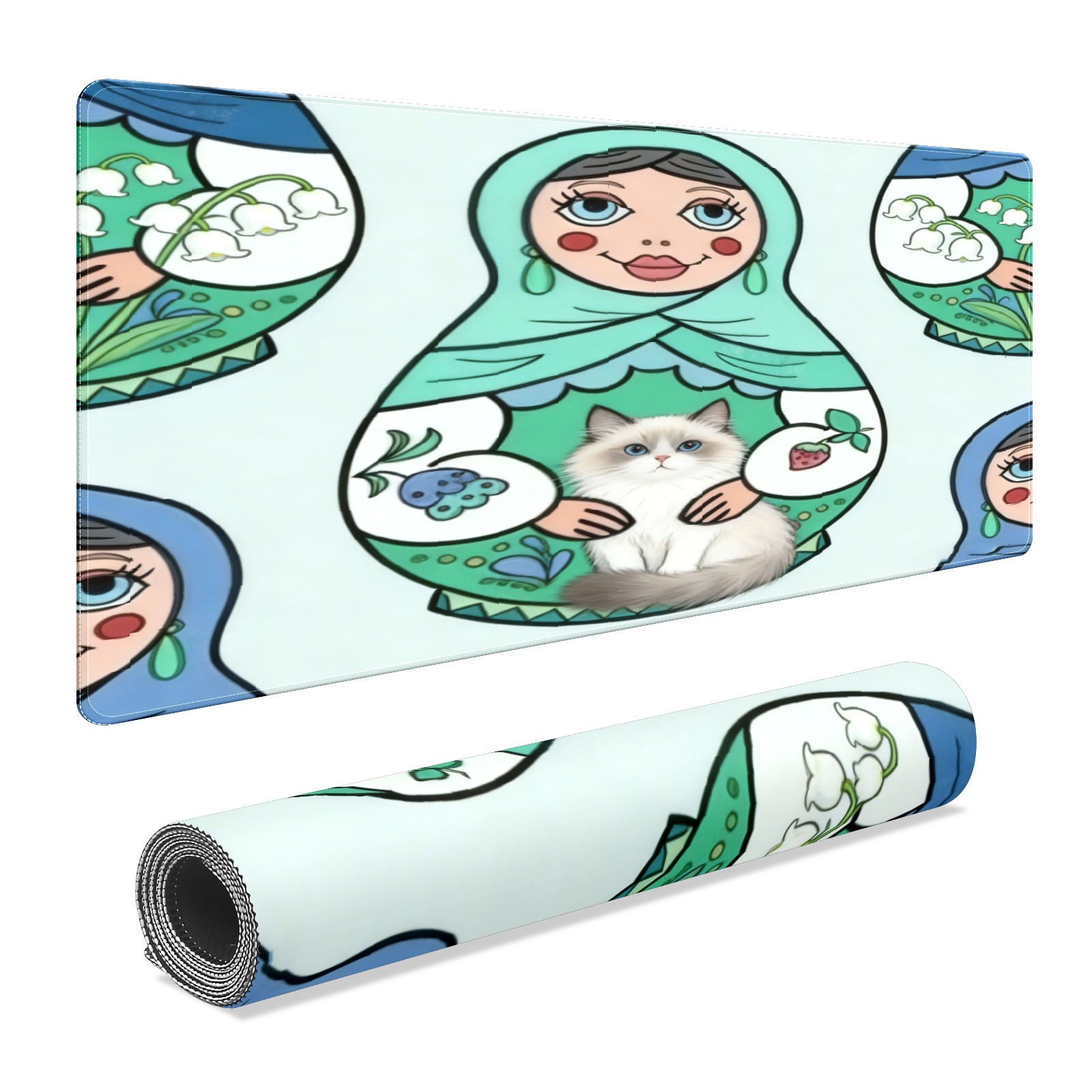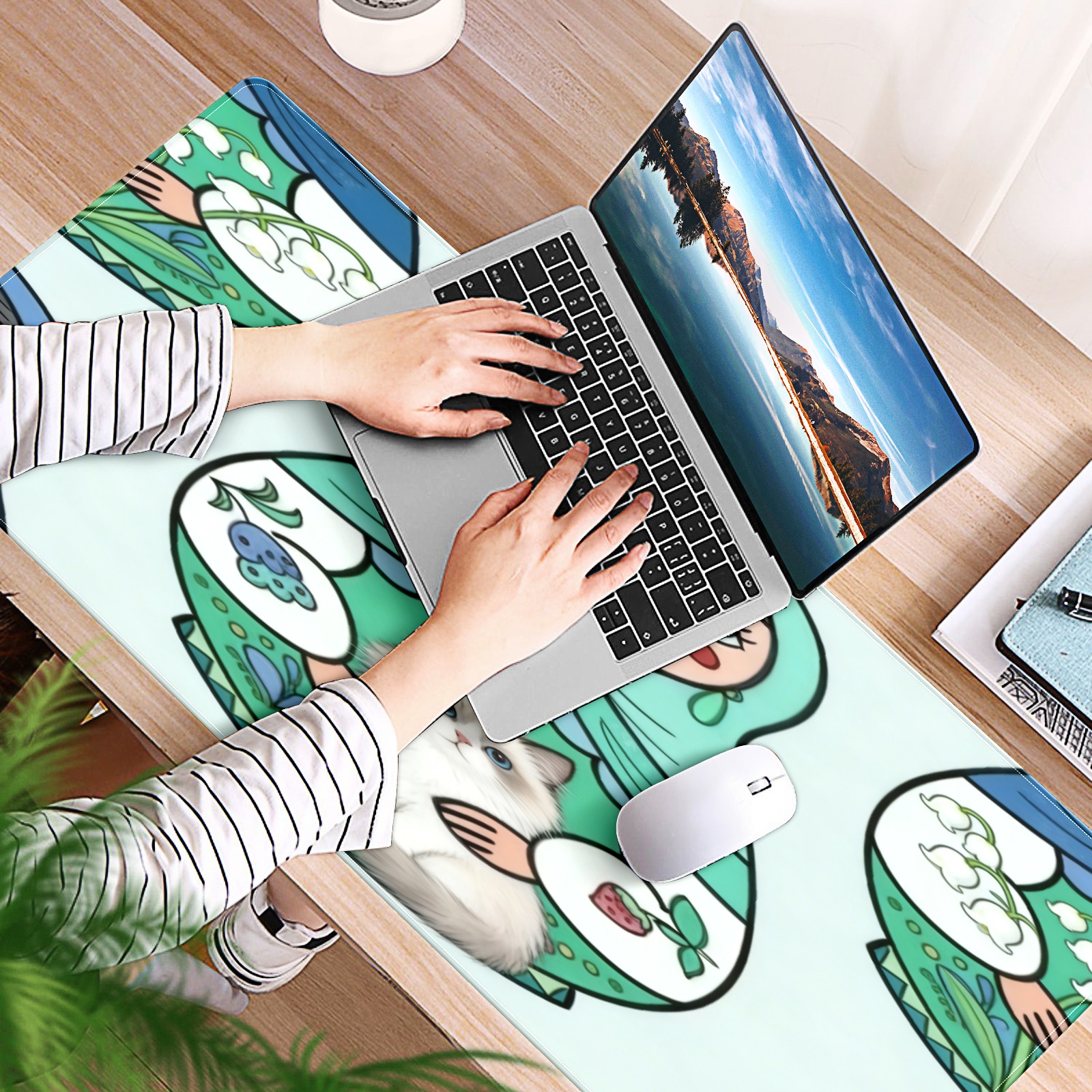 Large Gaming Mouse Pad (90x40cm), Extended Waterproof Desk Mat with Non-Slip Rubber Base, Cute Dolls Green for Gamers, Office & Home