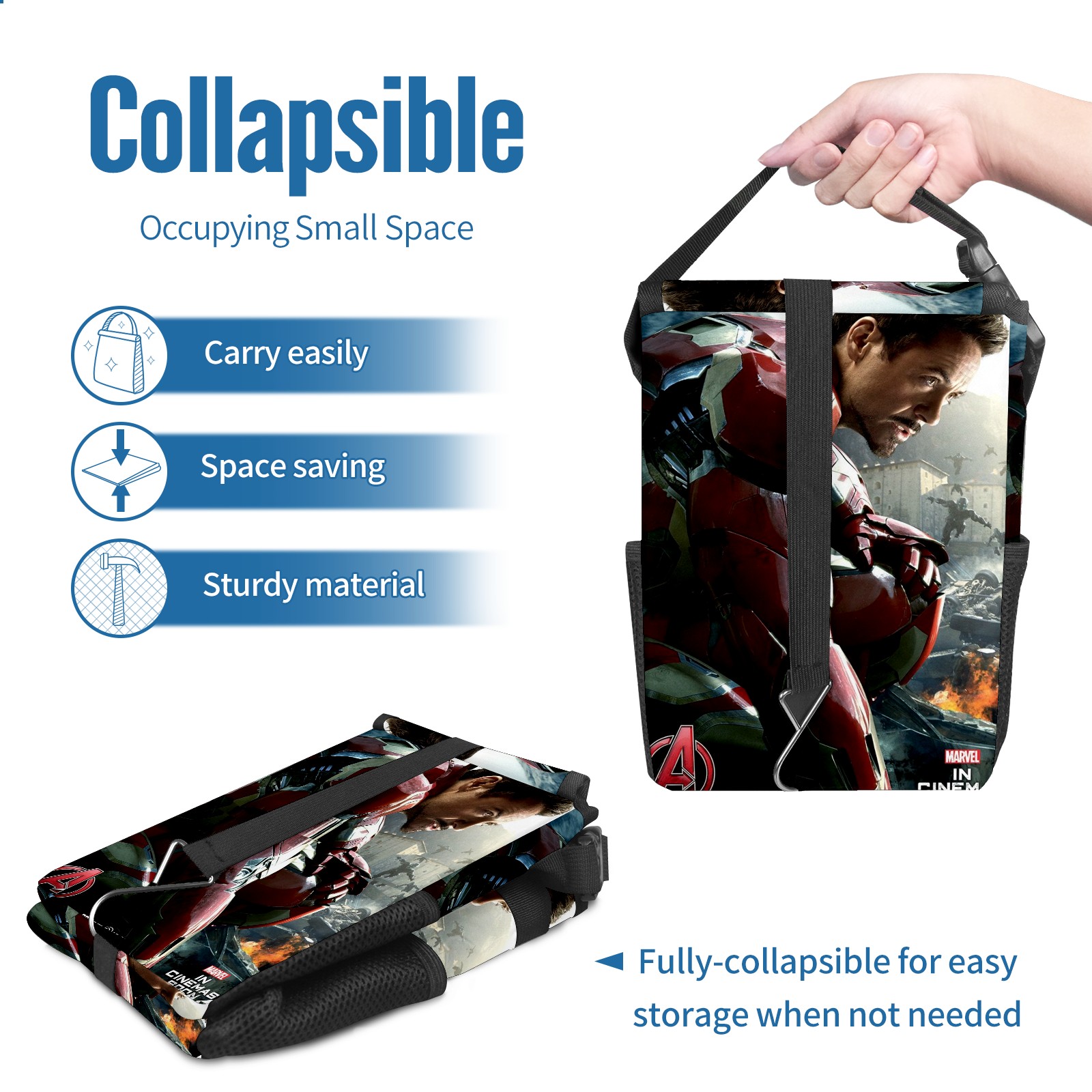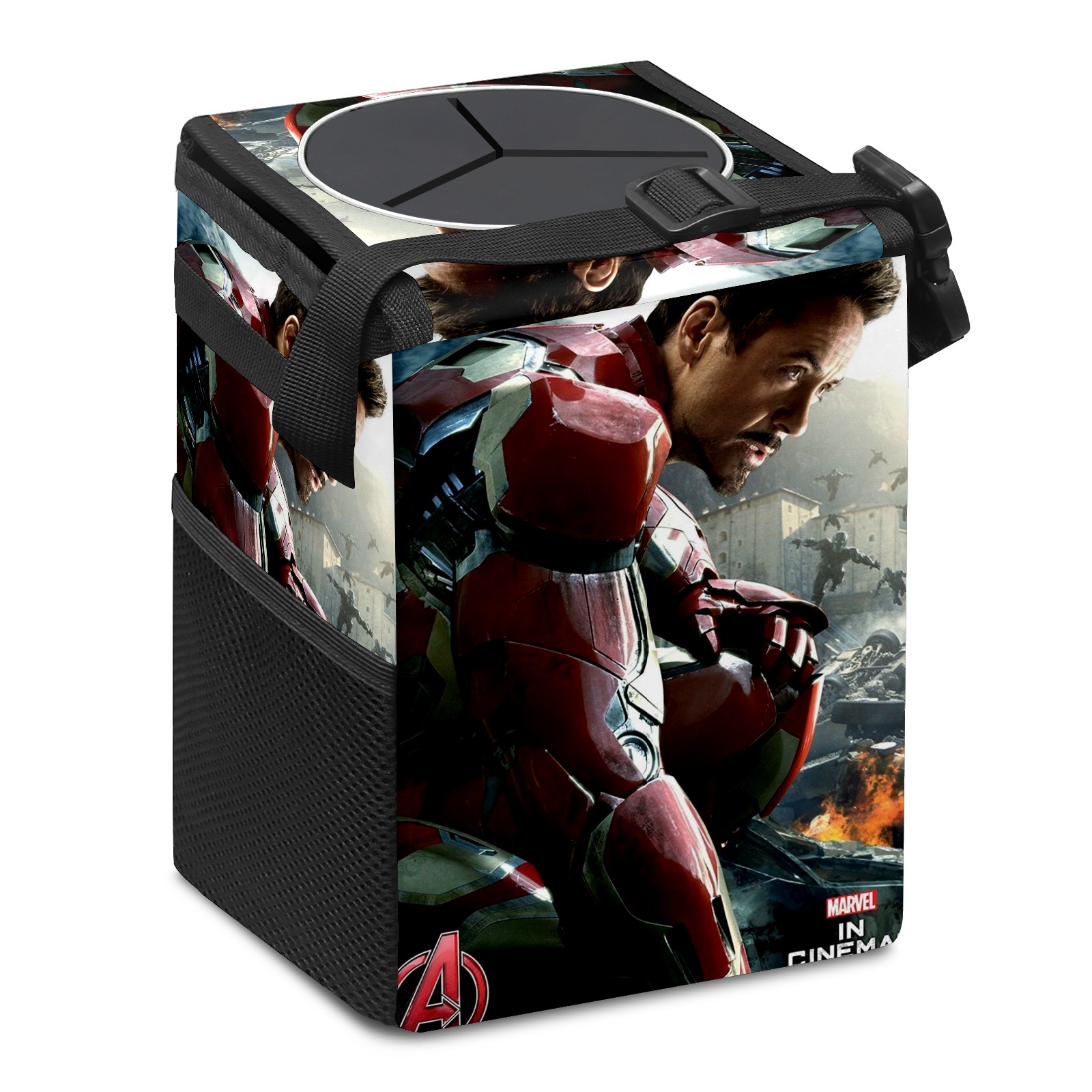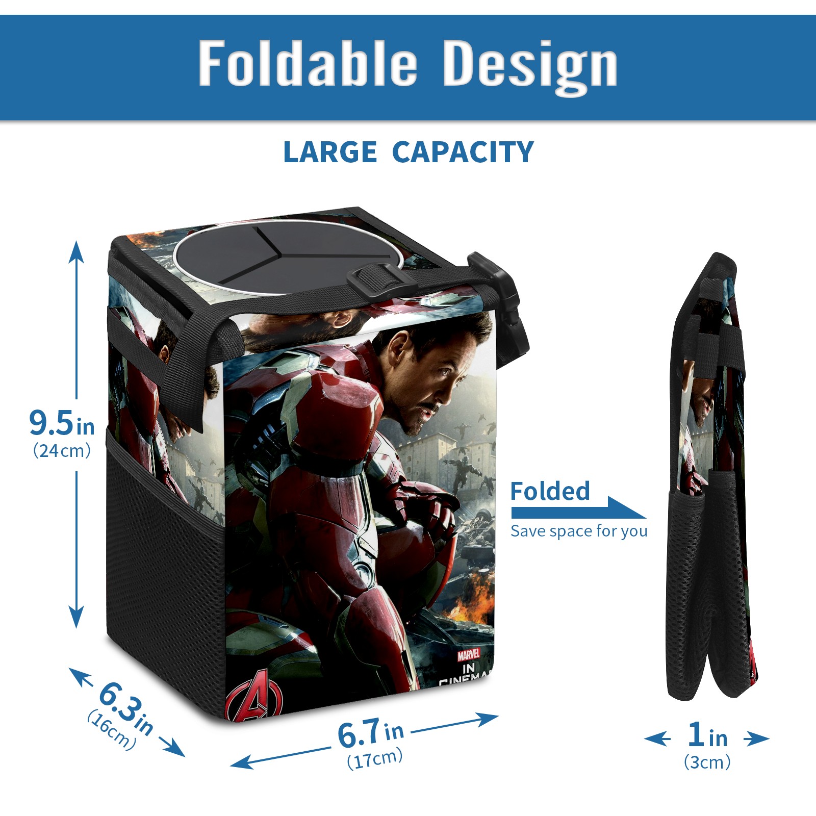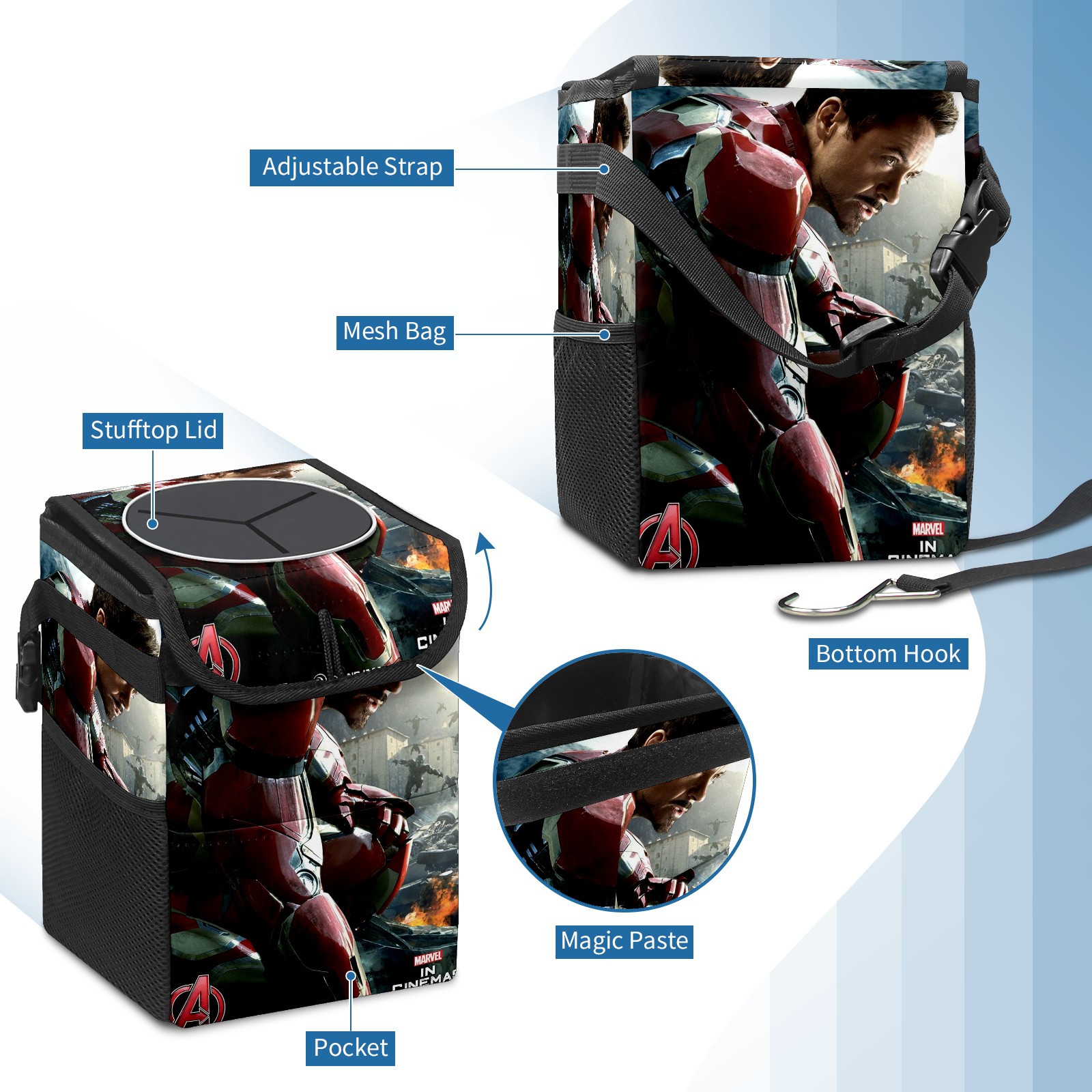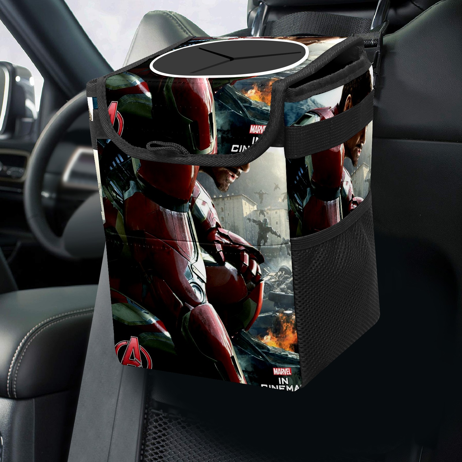 Car Trash Can with Lid, Small Portable Hanging Automotive Garbage Bin for Vehicles, Leakproof Waste Bag Container for SUV Truck Van Interior Auto Travel Road Trips(漫威 (1144))