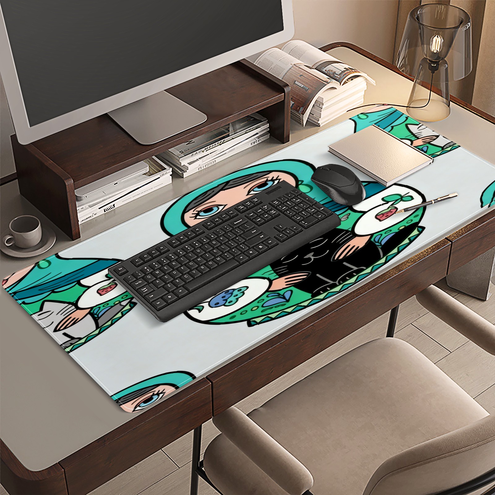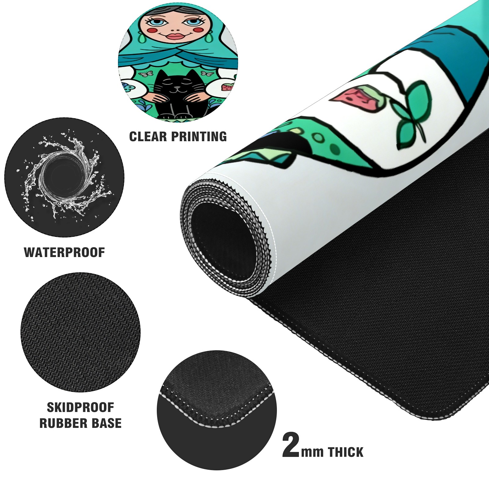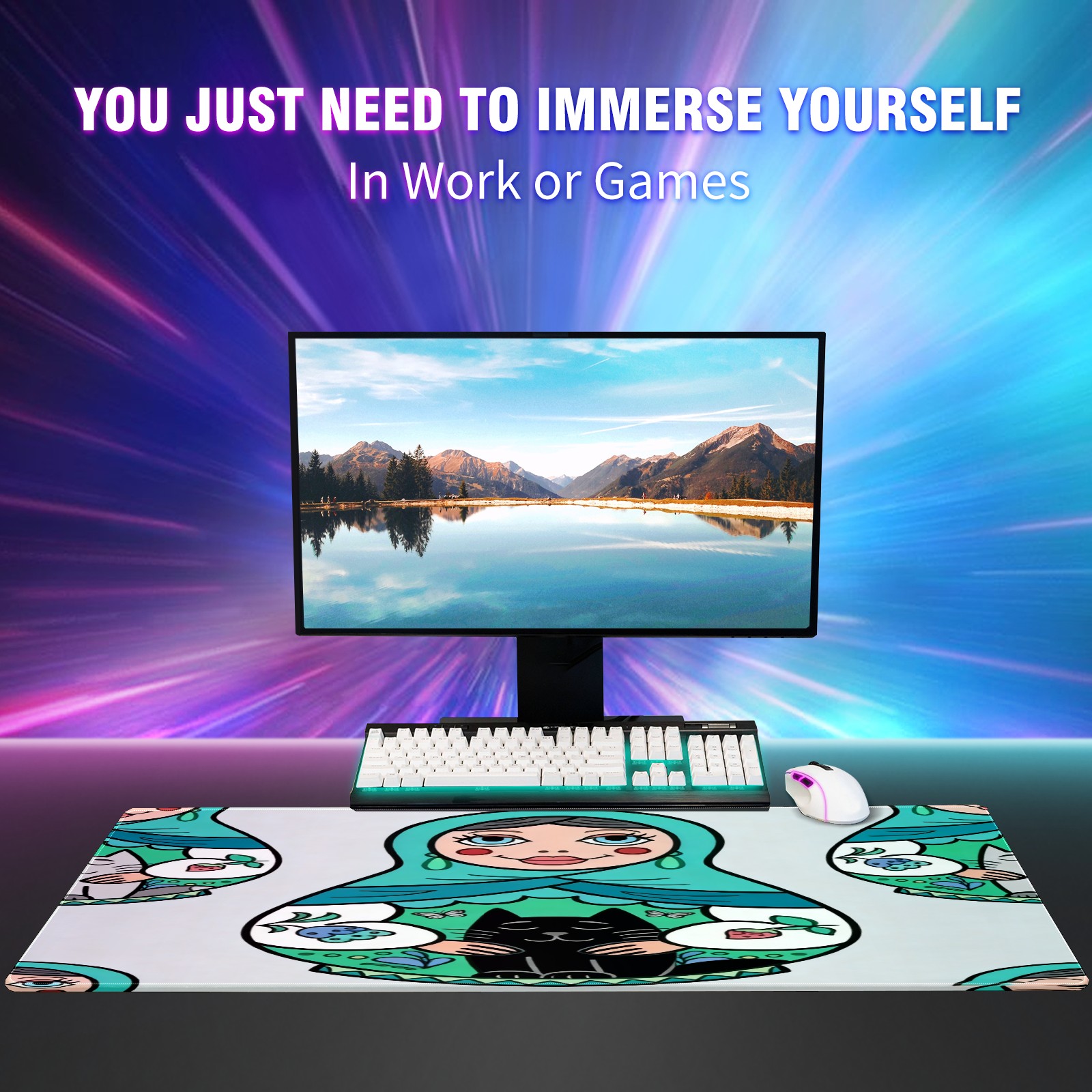 Large Gaming Mouse Pad (90x40cm), Extended Waterproof Desk Mat with Non-Slip Rubber Base, Cool Dolls Green for Gamers, Office & Home