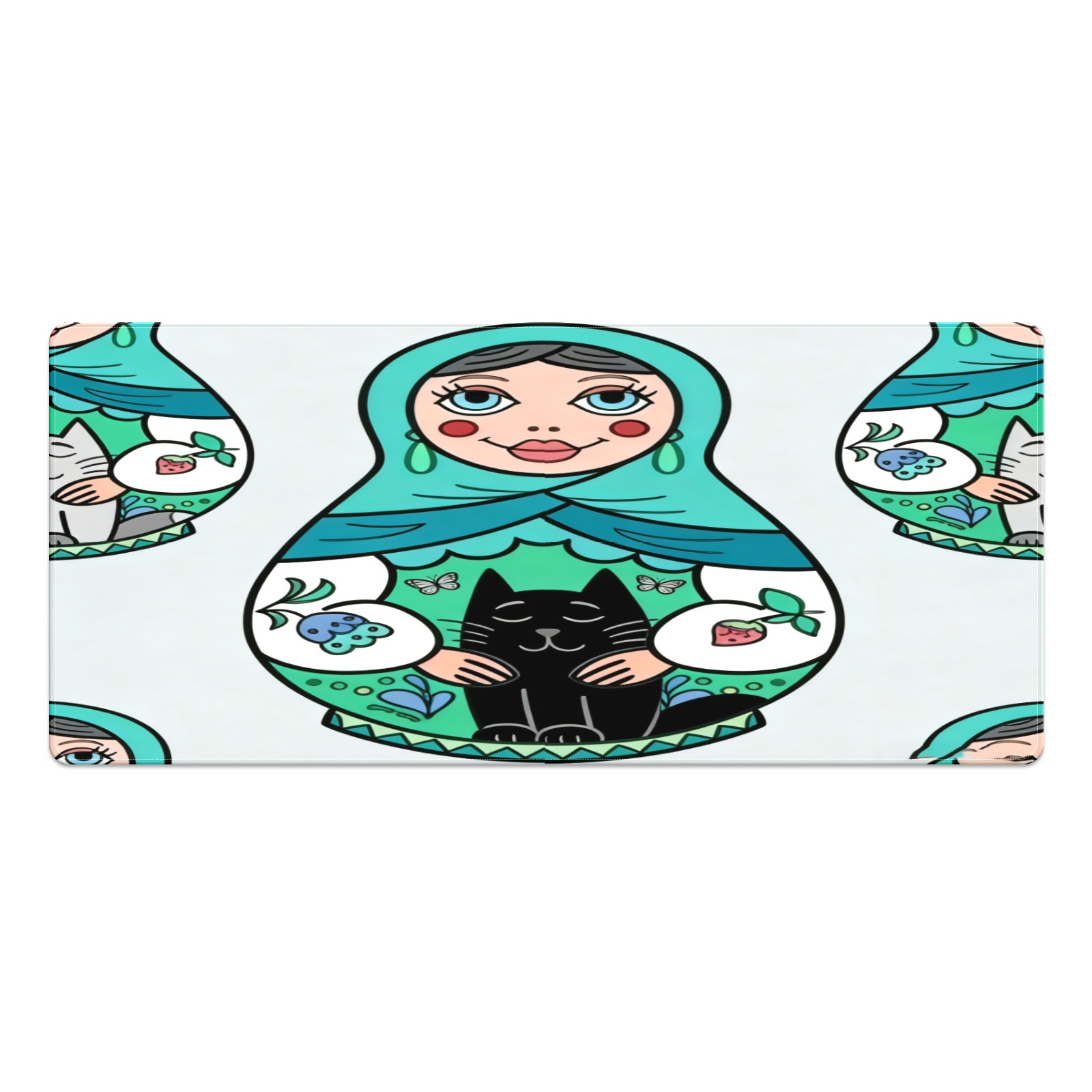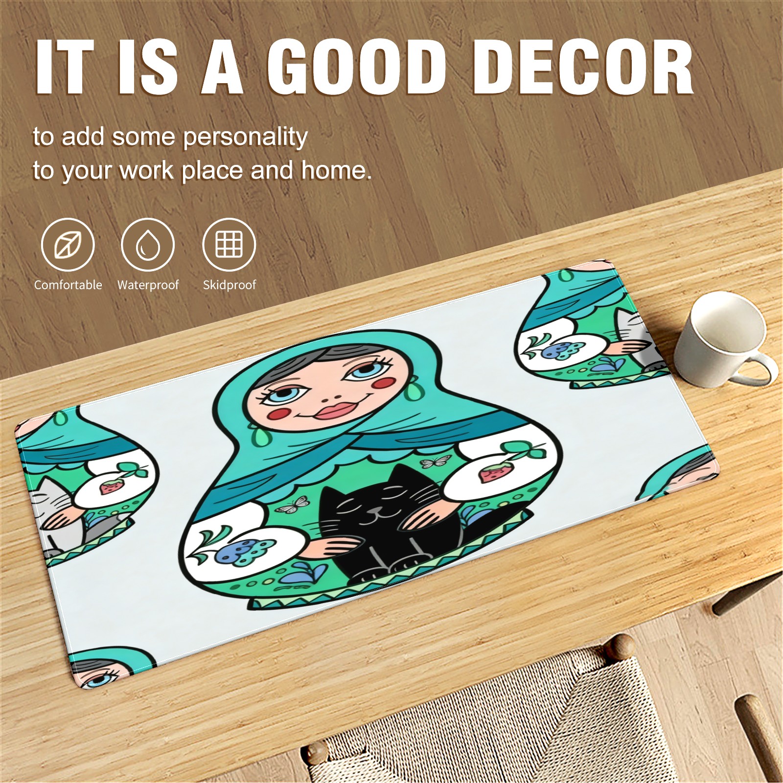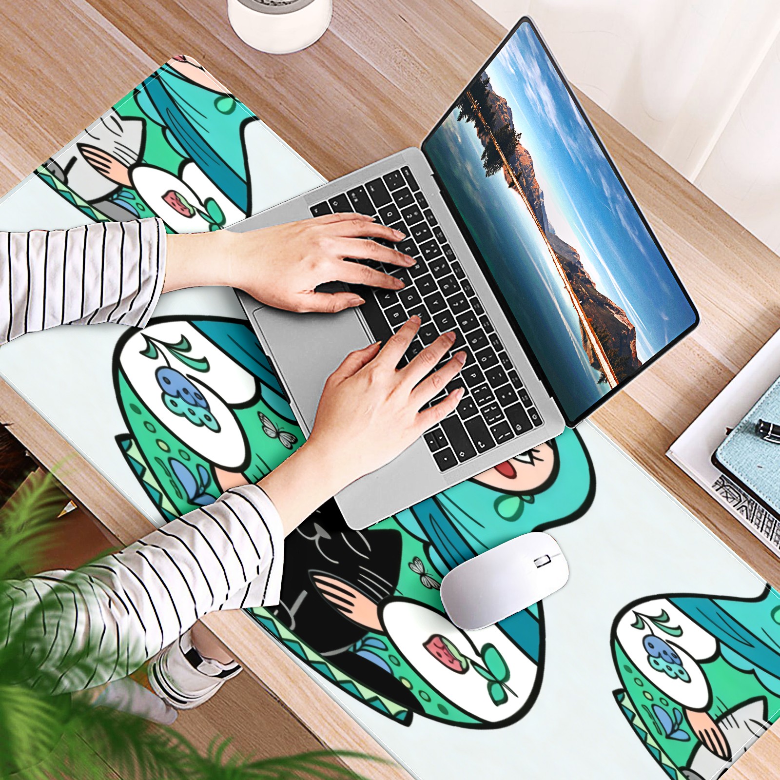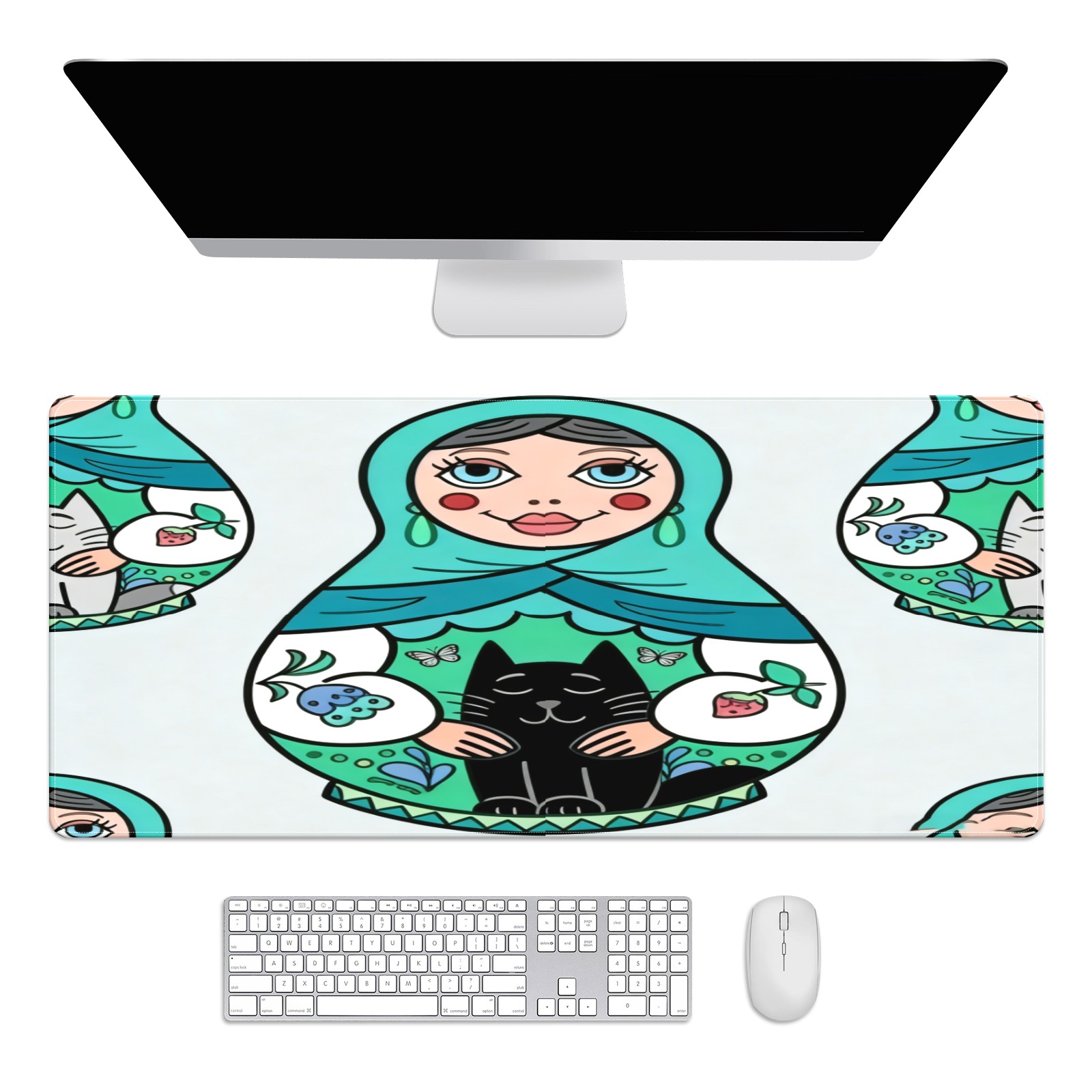 Large Gaming Mouse Pad (90x40cm), Extended Waterproof Desk Mat with Non-Slip Rubber Base, Cool Dolls Green for Gamers, Office & Home