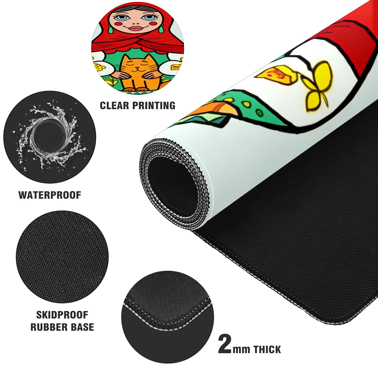 Large Gaming Mouse Pad (90x40cm), Extended Waterproof Desk Mat with Non-Slip Rubber Base, Fiery Dolls Red for Gamers, Office & Home