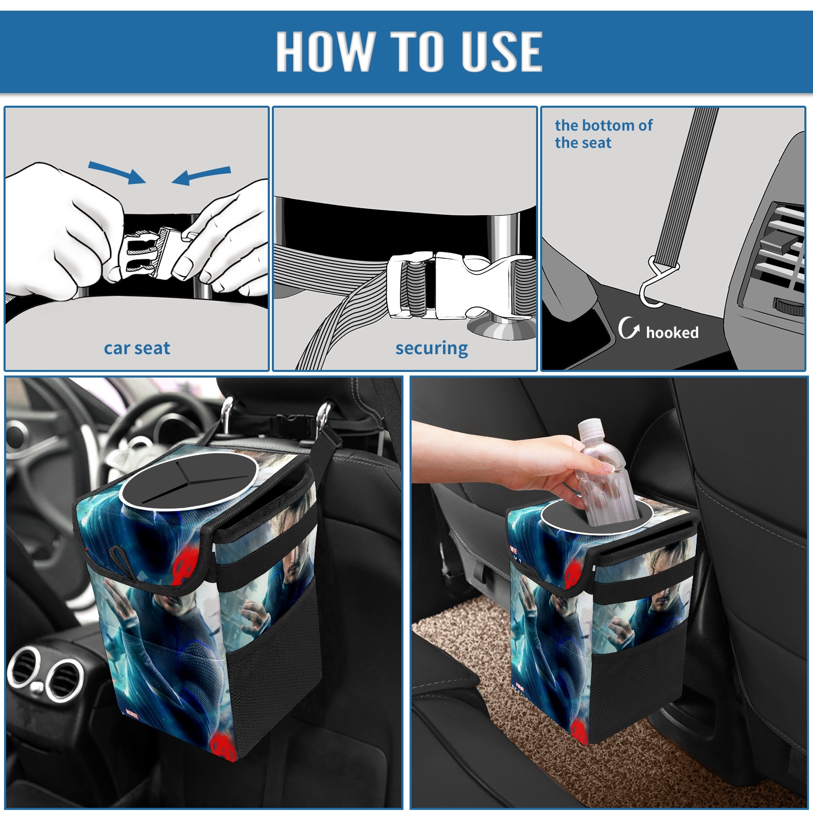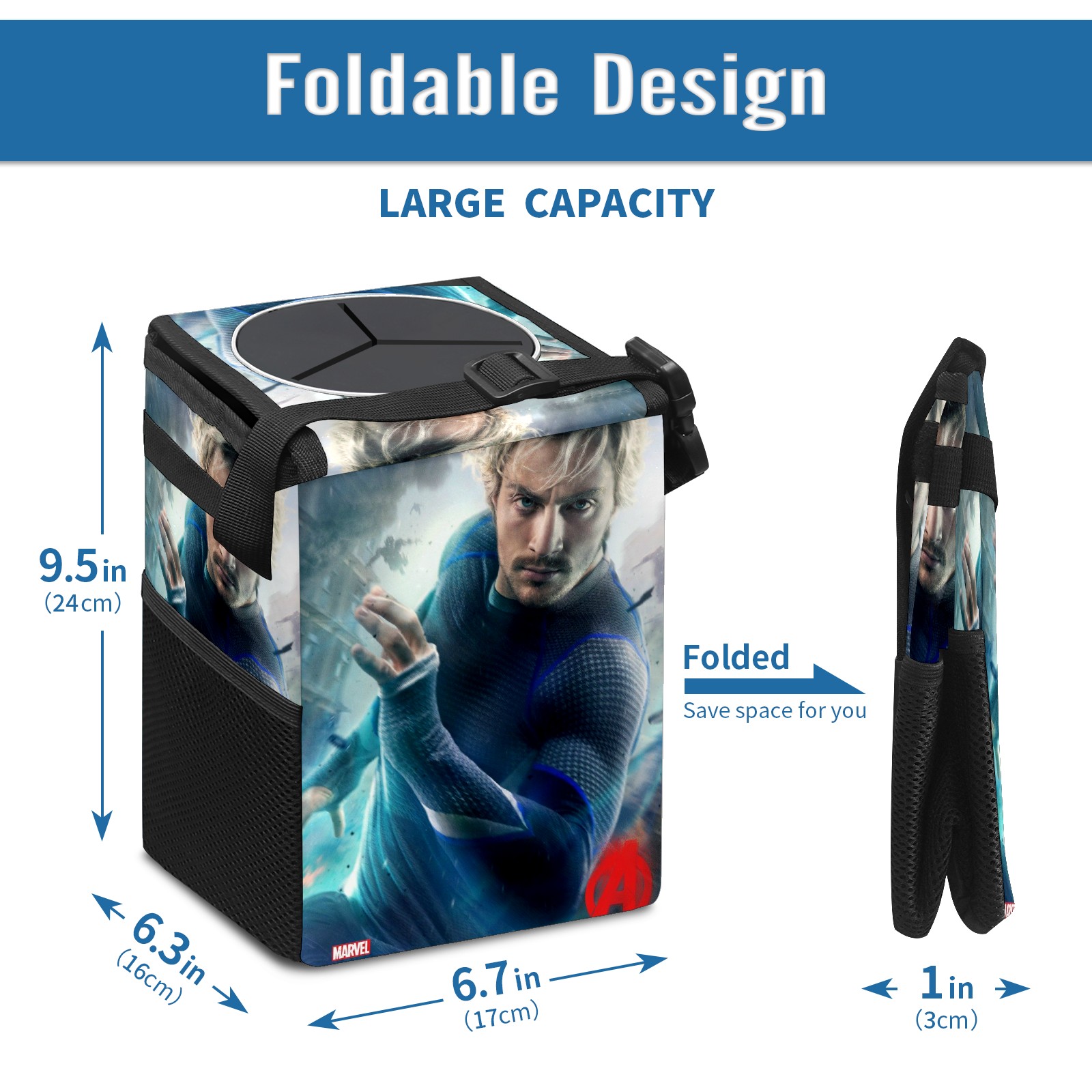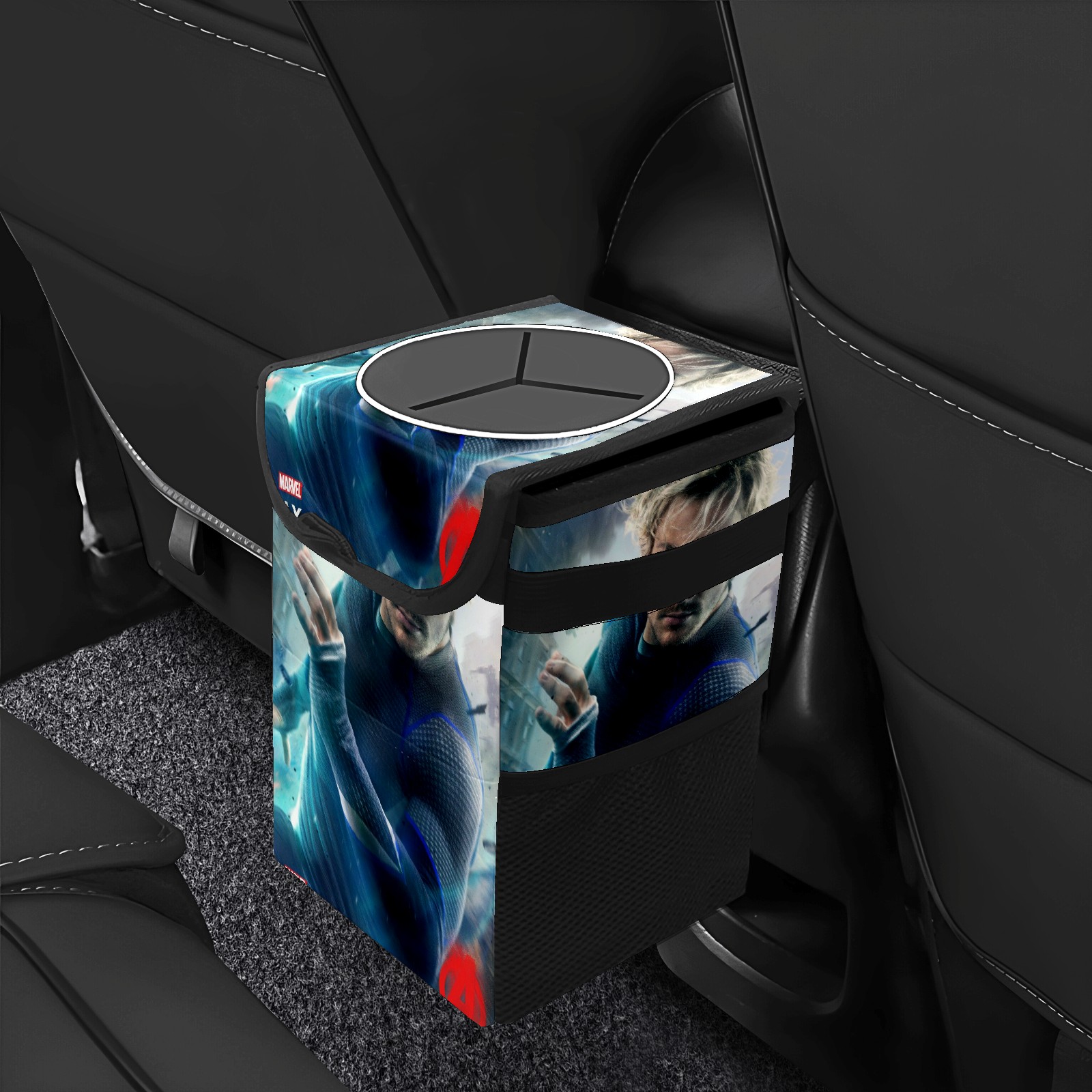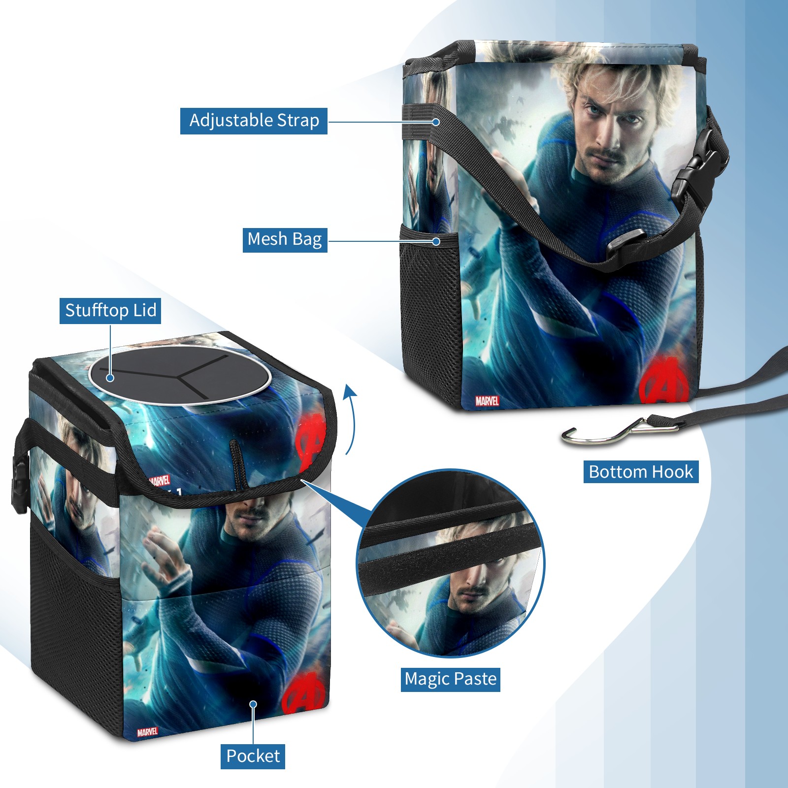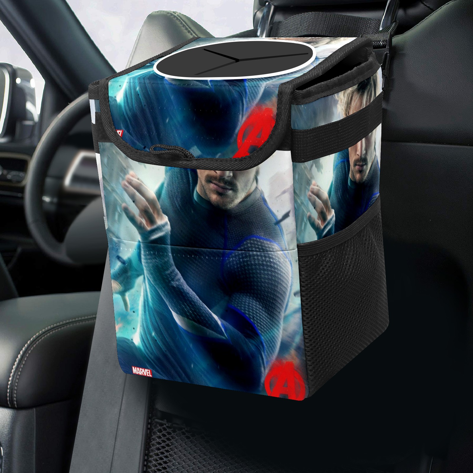 Car Trash Can with Lid, Small Portable Hanging Automotive Garbage Bin for Vehicles, Leakproof Waste Bag Container for SUV Truck Van Interior Auto Travel Road Trips(漫威 (1138))