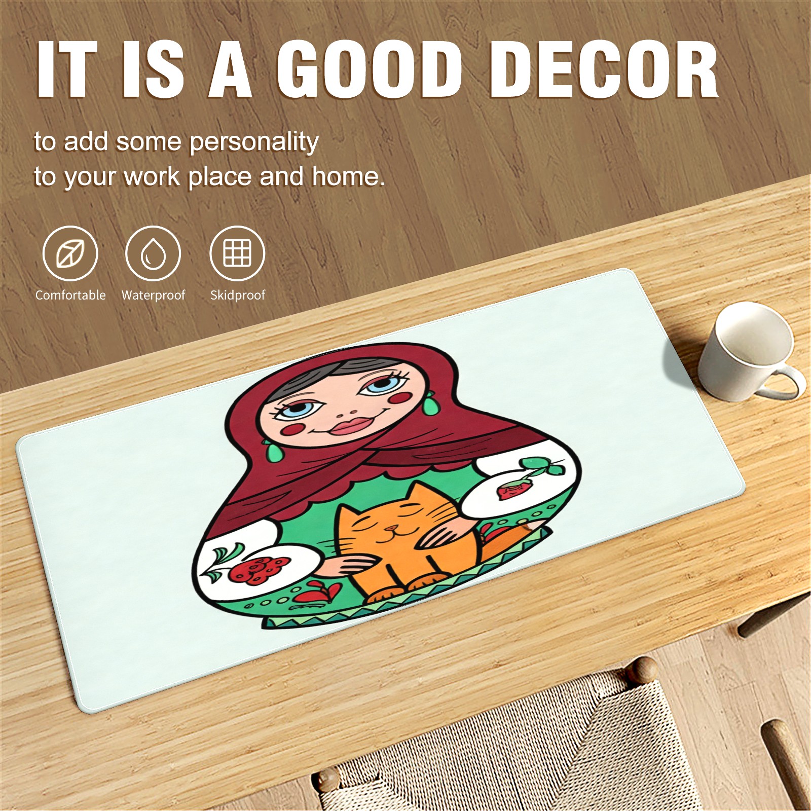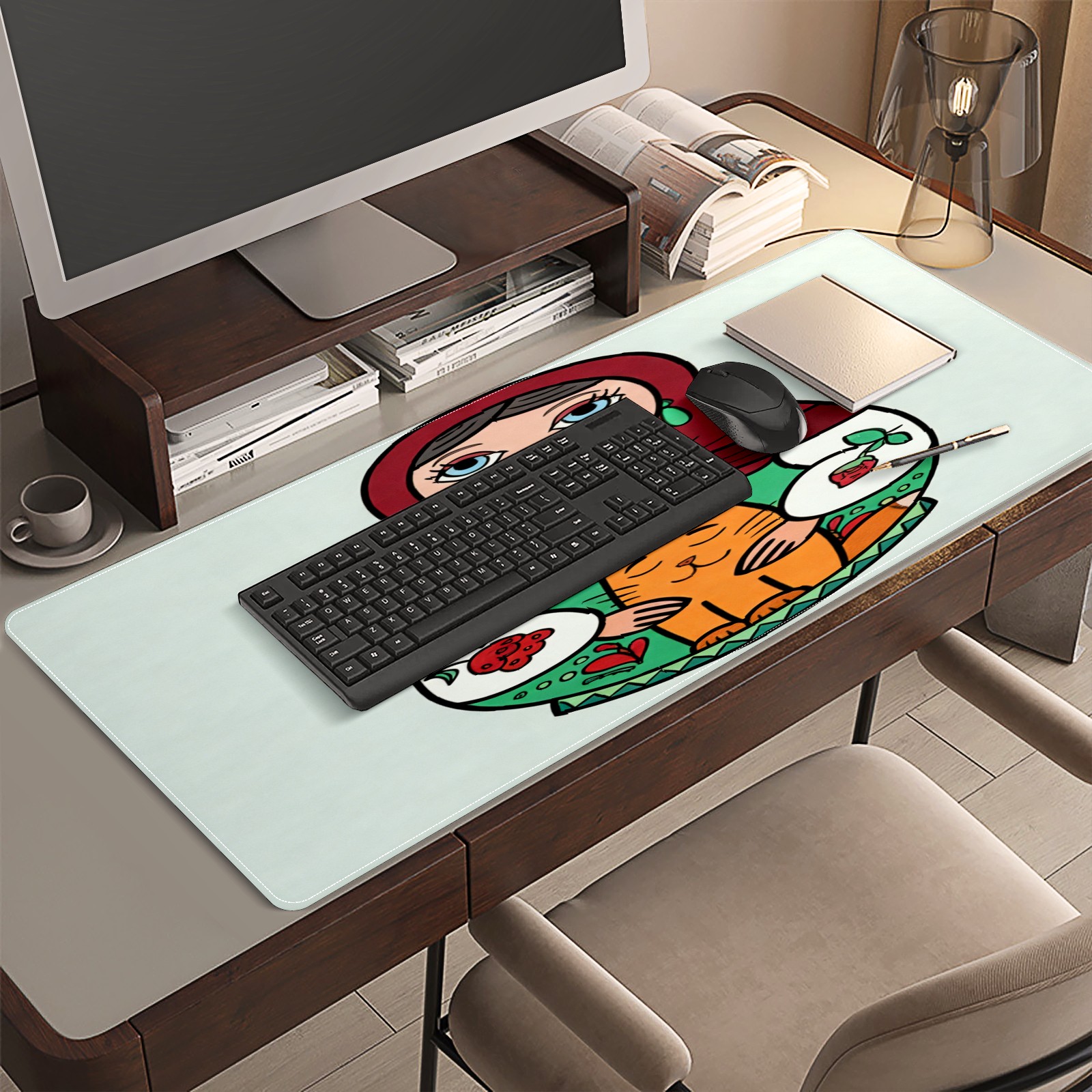 Large Gaming Mouse Pad (90x40cm), Extended Waterproof Desk Mat with Non-Slip Rubber Base, Warm Dolls Red for Gamers, Office & Home