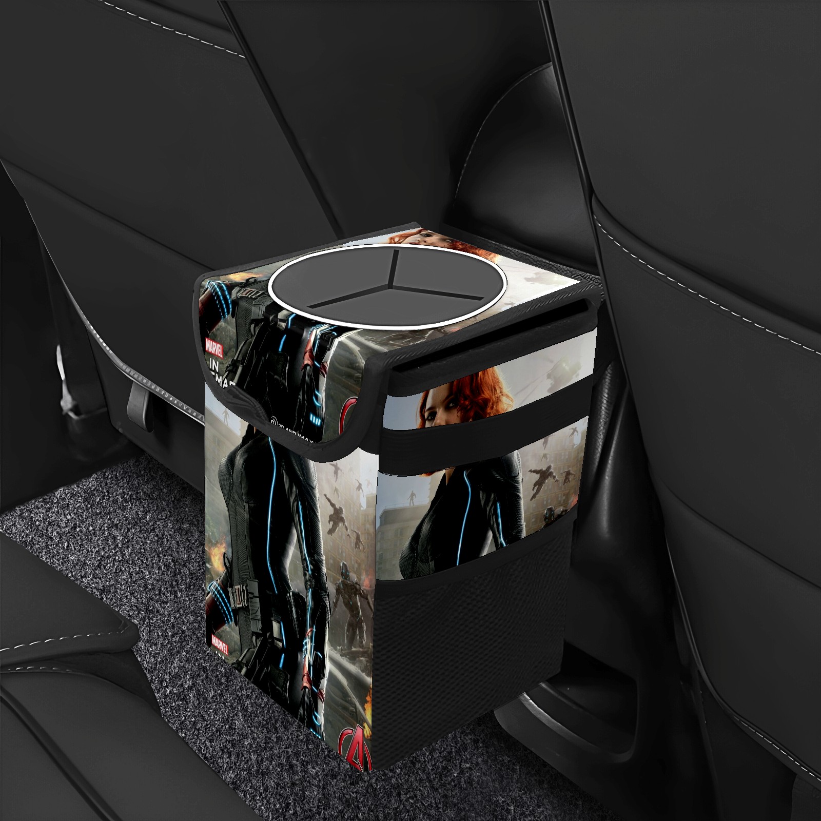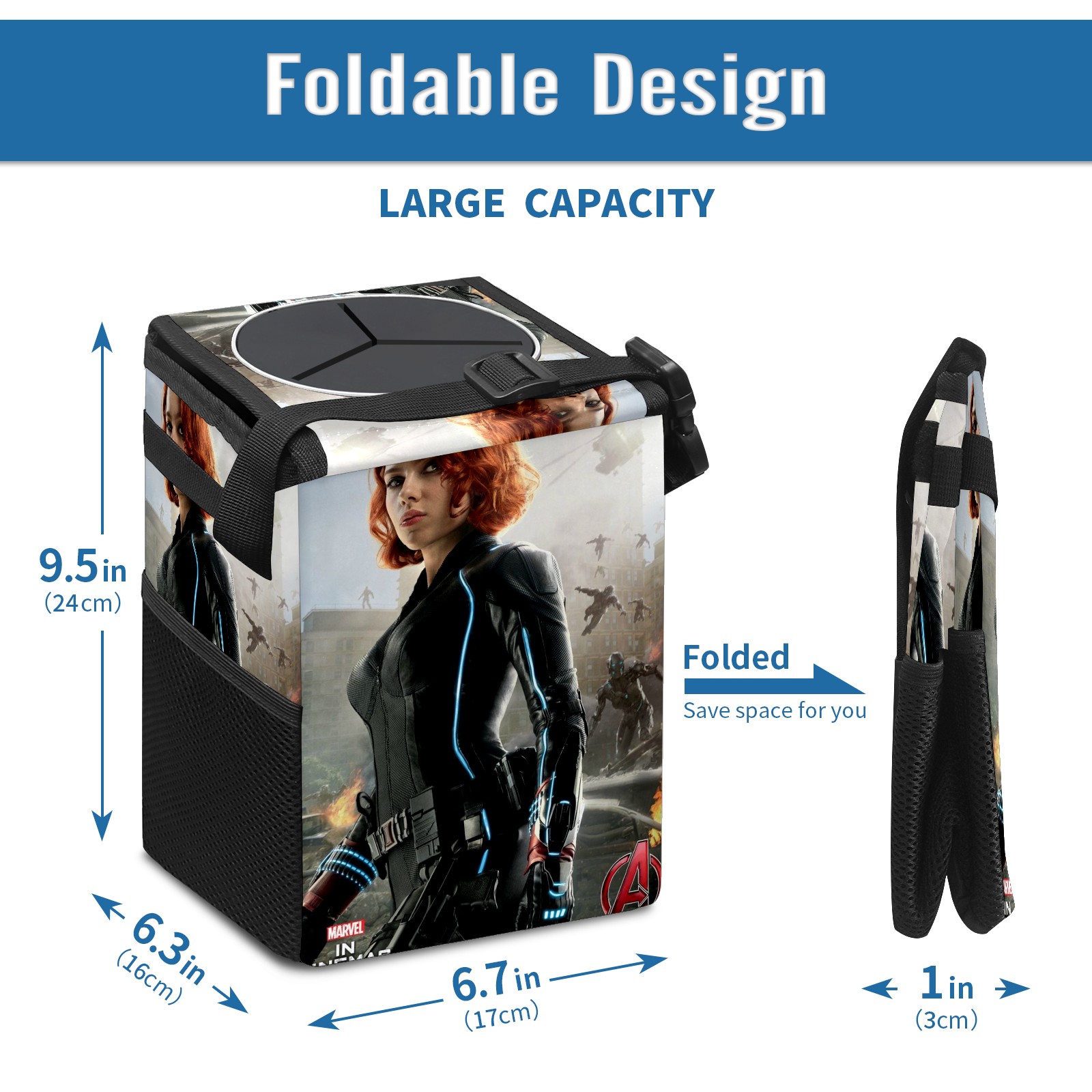 Car Trash Can with Lid, Small Portable Hanging Automotive Garbage Bin for Vehicles, Leakproof Waste Bag Container for SUV Truck Van Interior Auto Travel Road Trips(漫威 (1139))