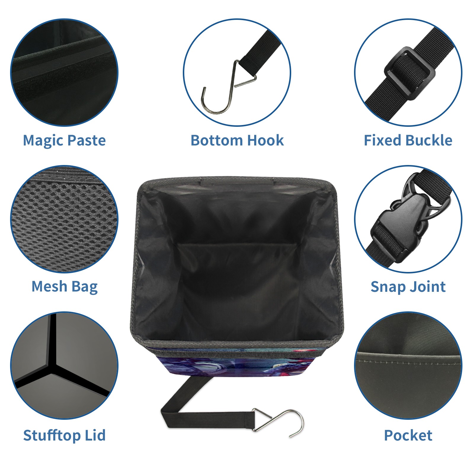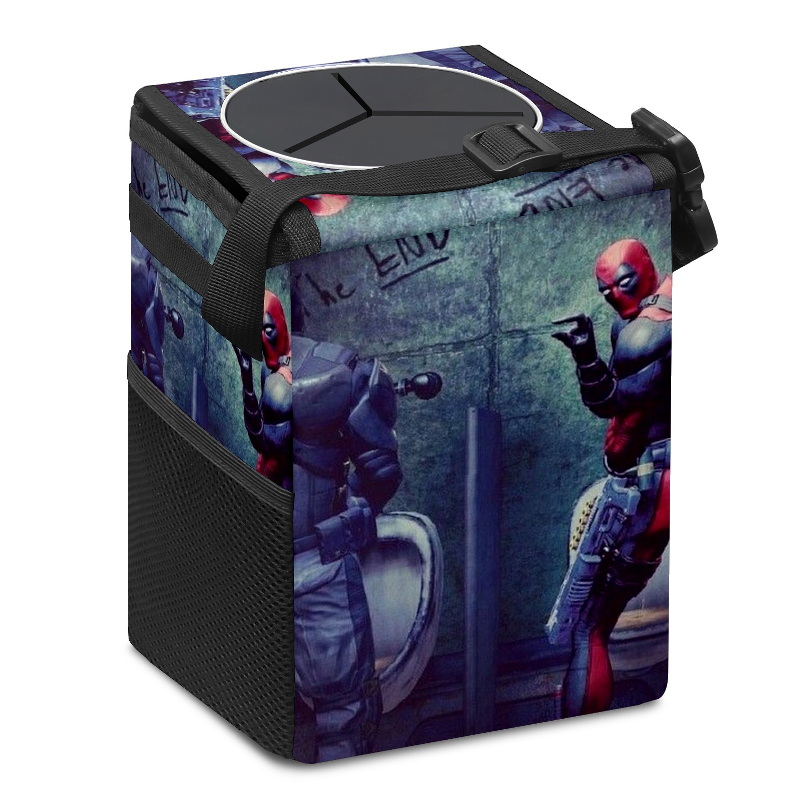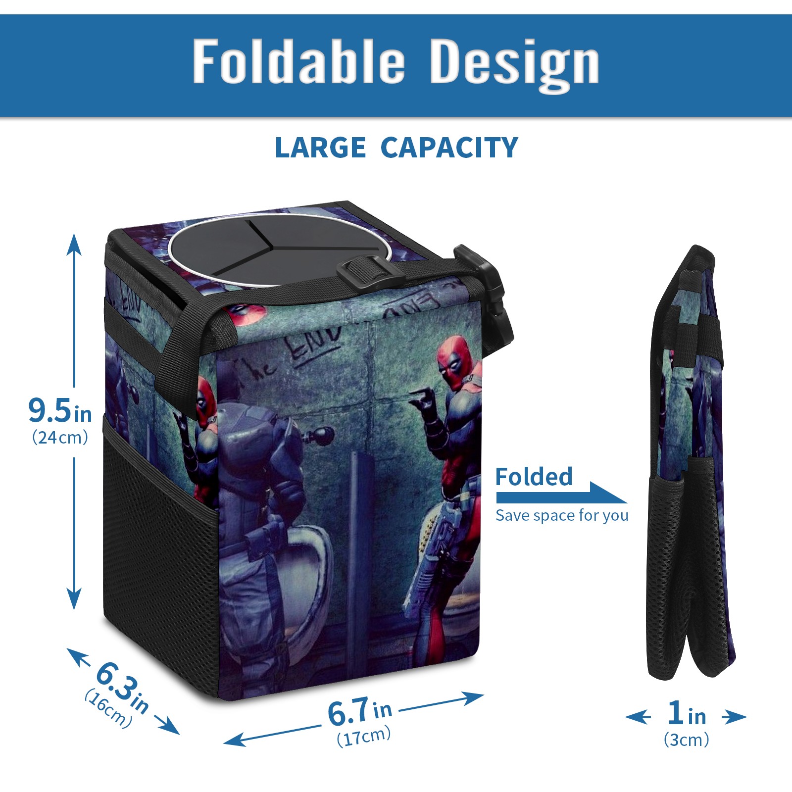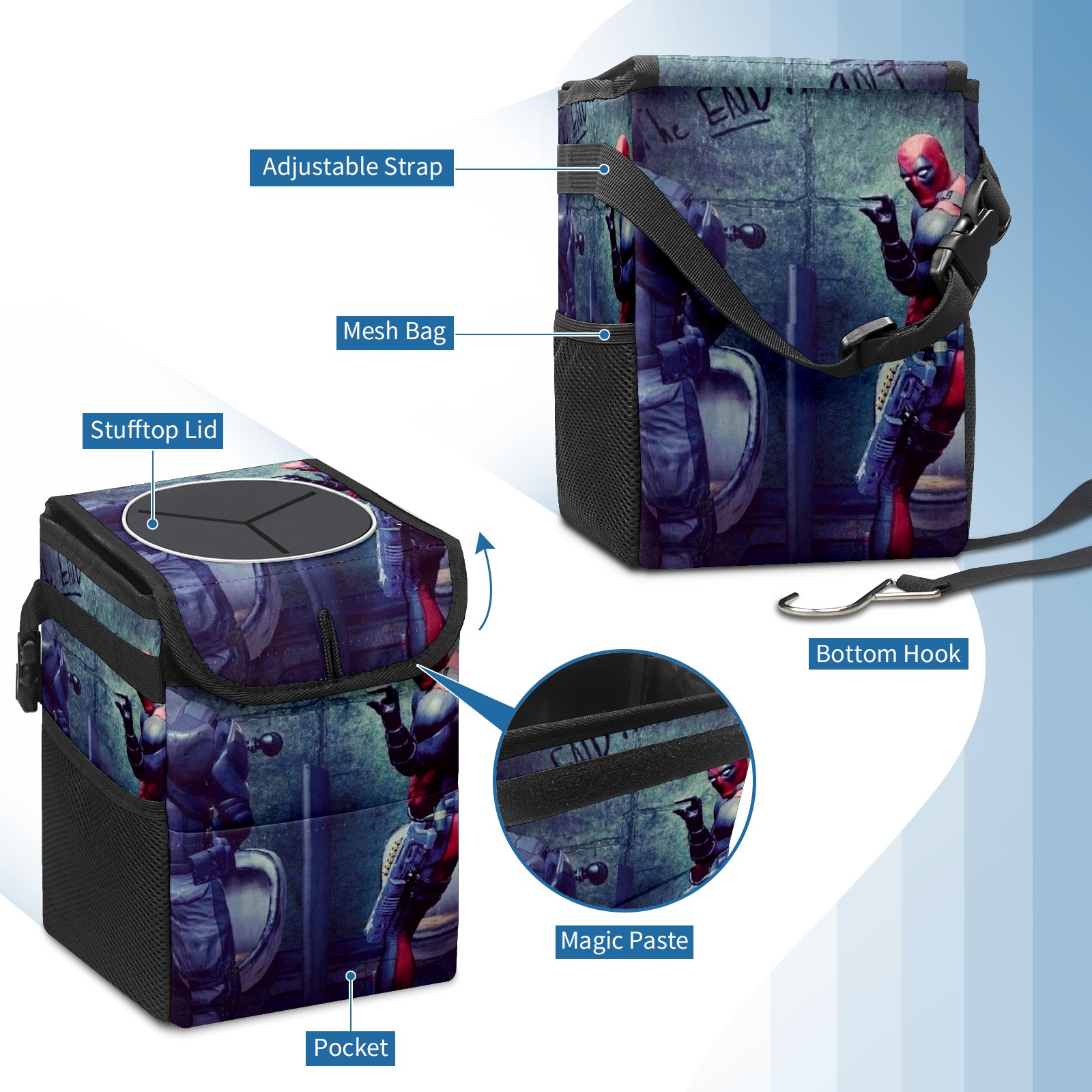 Car Trash Can with Lid, Small Portable Hanging Automotive Garbage Bin for Vehicles, Leakproof Waste Bag Container for SUV Truck Van Interior Auto Travel Road Trips(漫威 (1119))