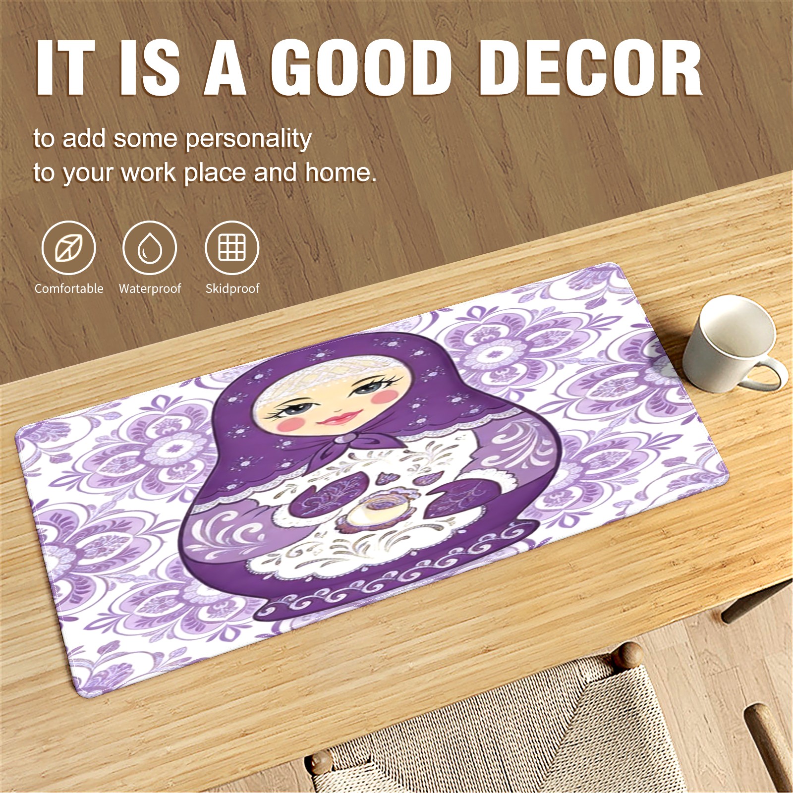 Large Gaming Mouse Pad (90x40cm), Extended Waterproof Desk Mat with Non-Slip Rubber Base, Elegant Dolls Purple for Gamers, Office & Home