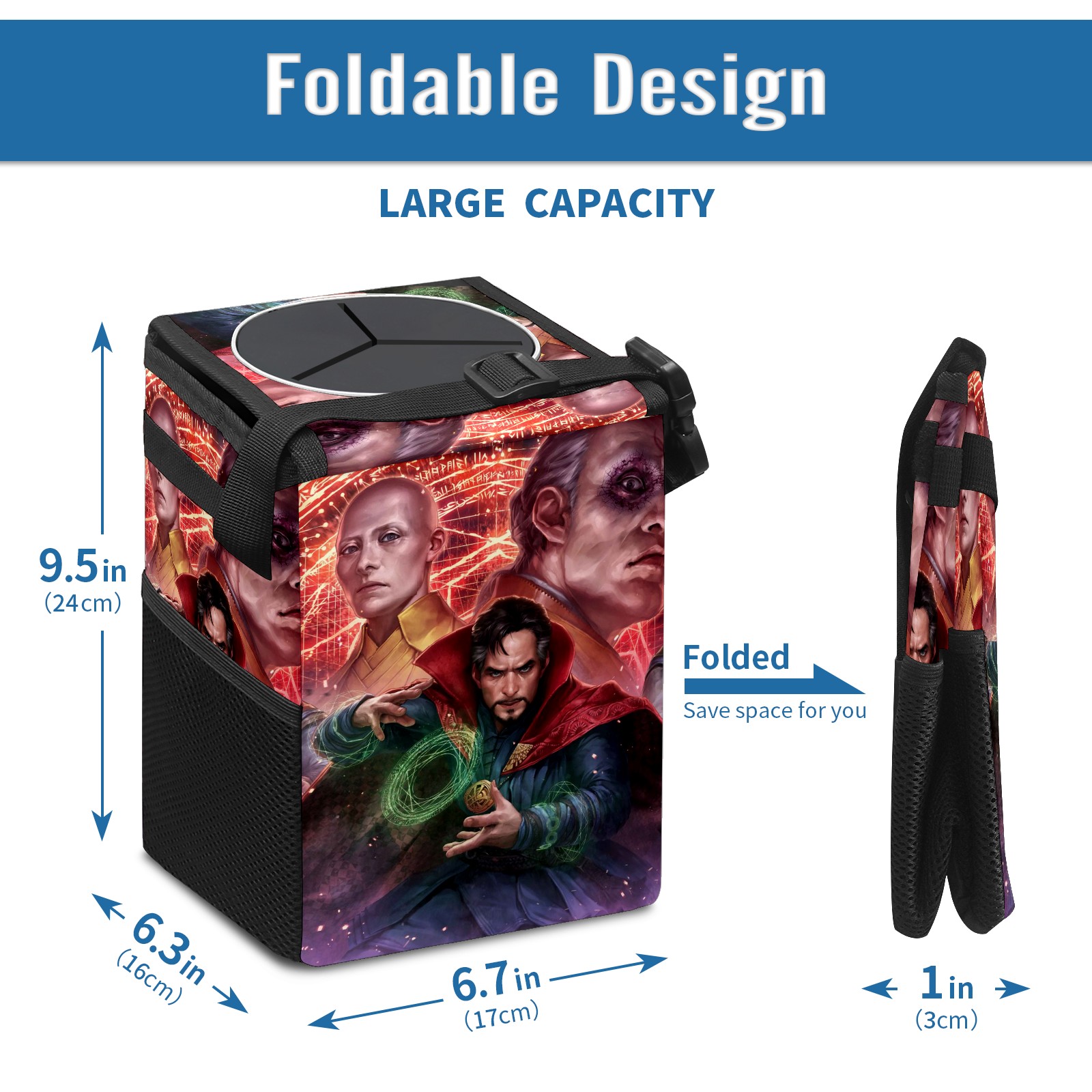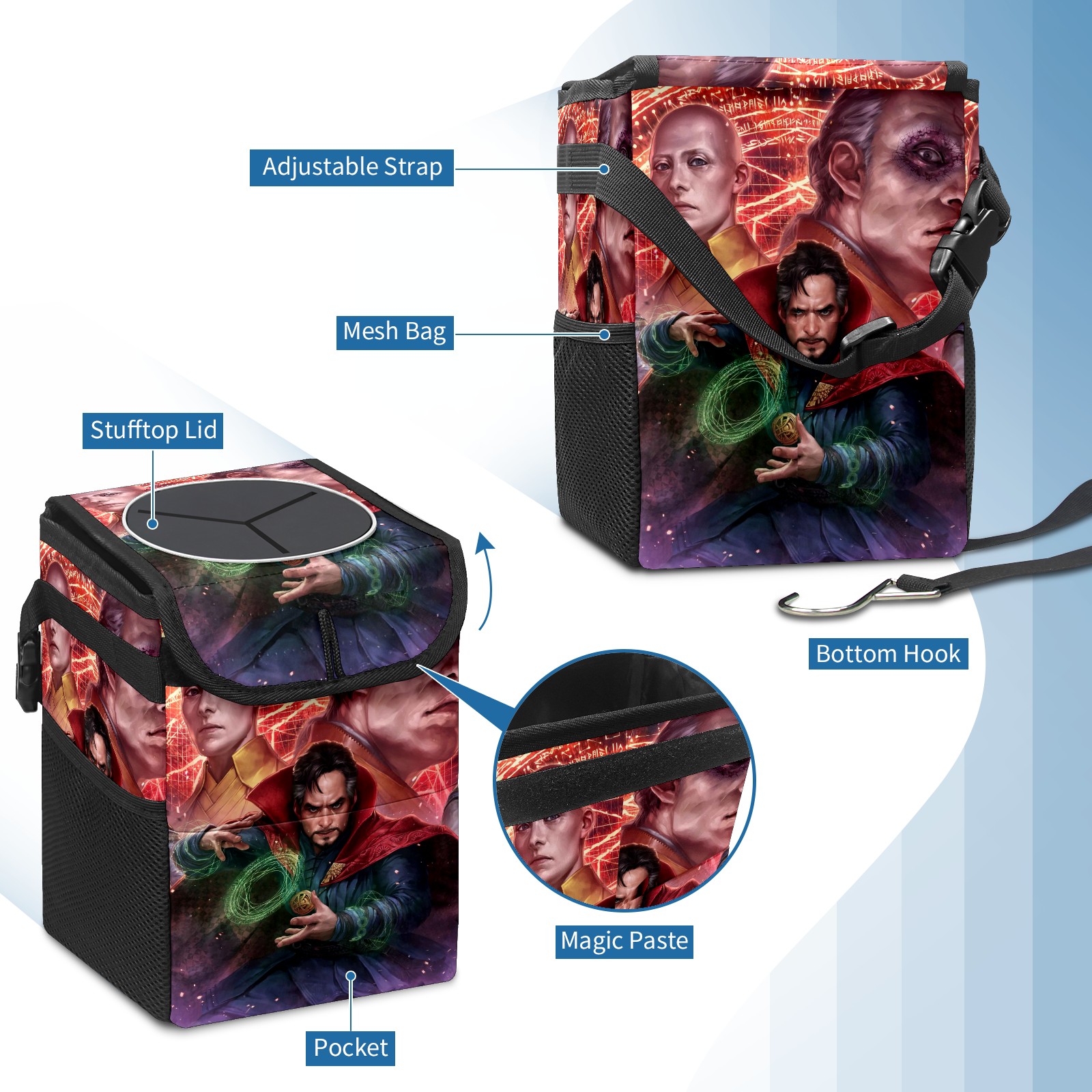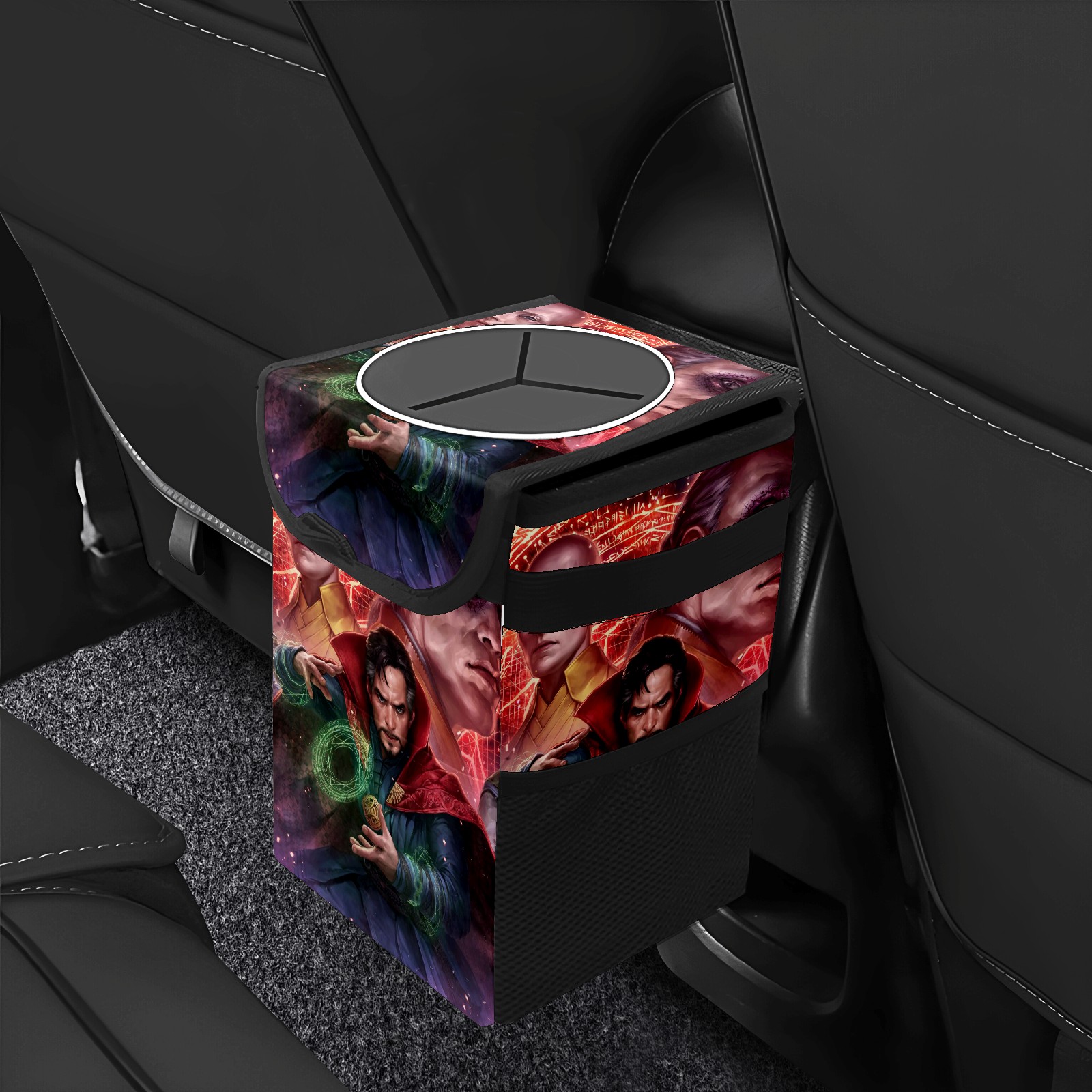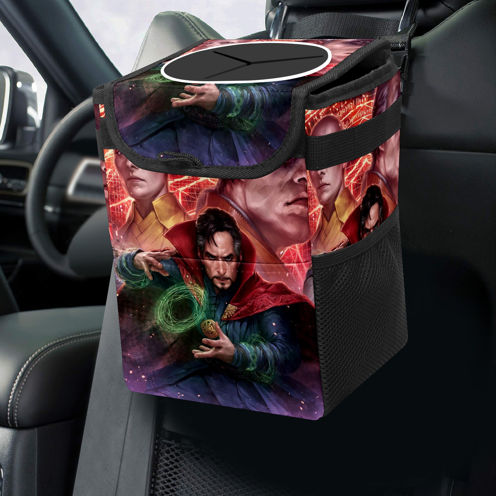 Car Trash Can with Lid, Small Portable Hanging Automotive Garbage Bin for Vehicles, Leakproof Waste Bag Container for SUV Truck Van Interior Auto Travel Road Trips(漫威 (1101))