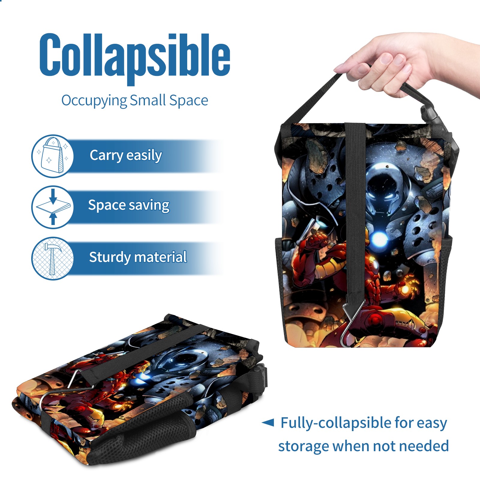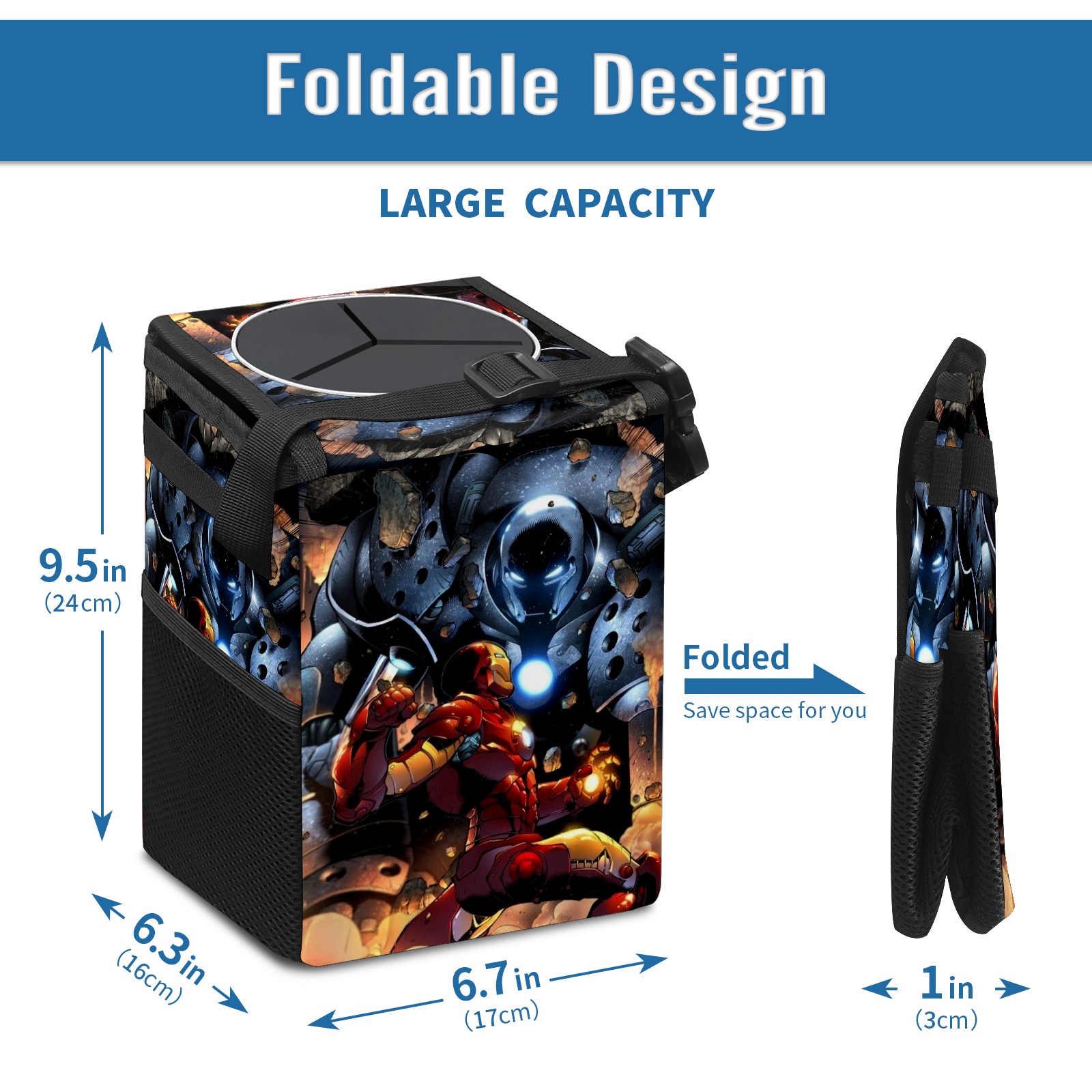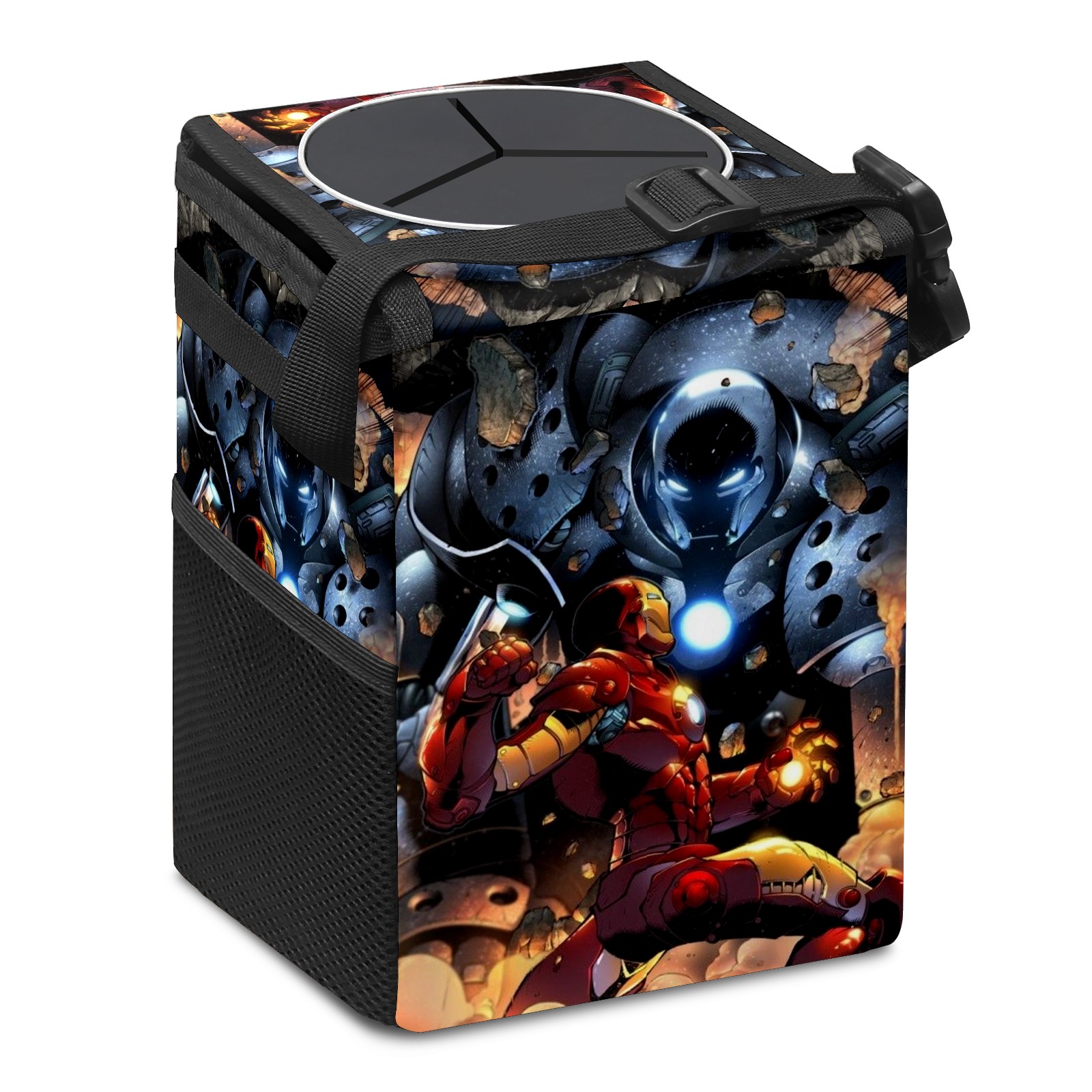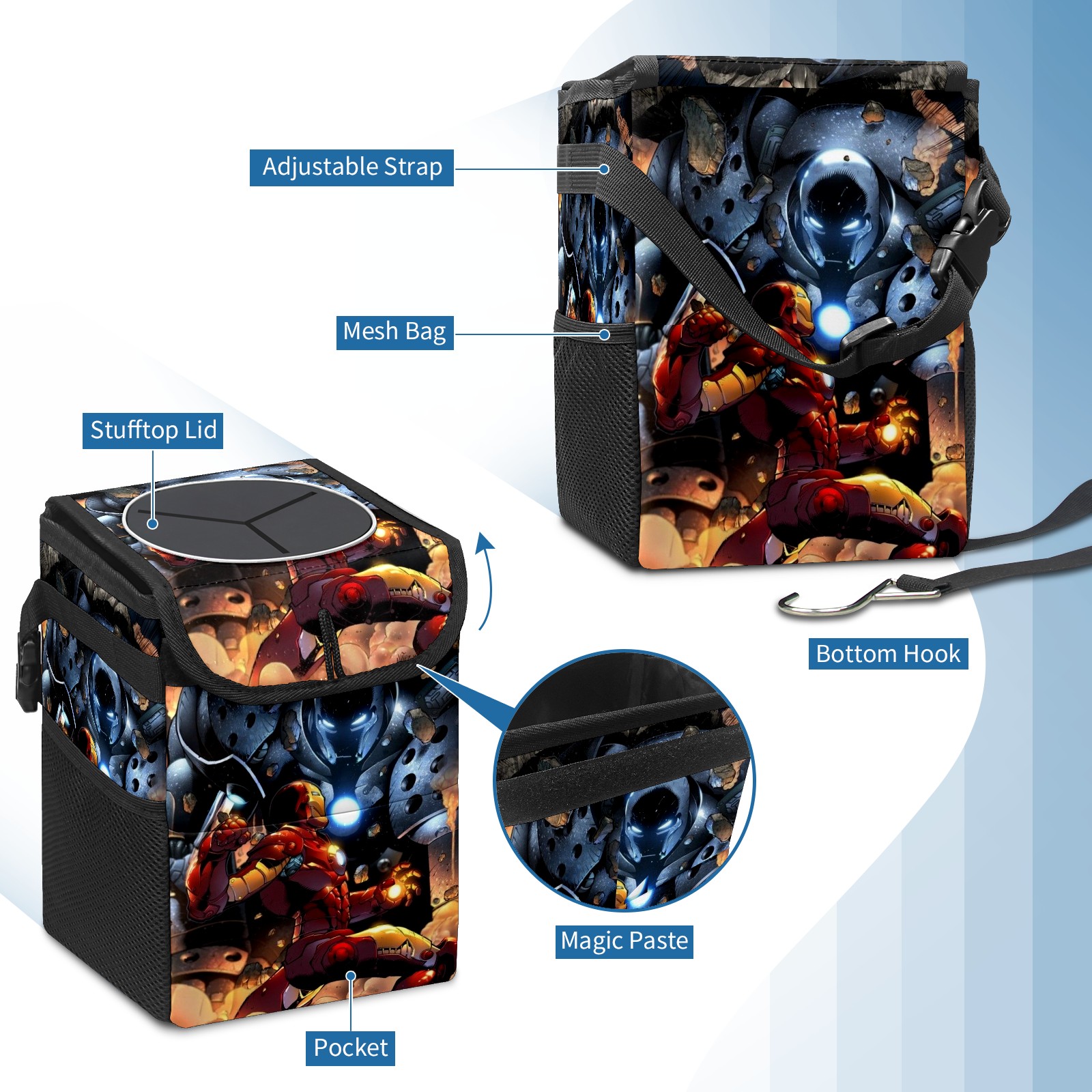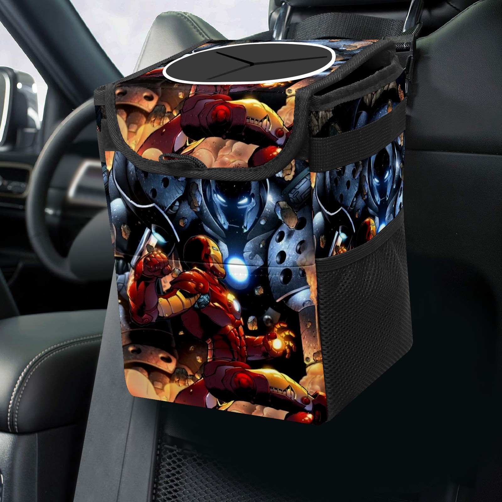Car Trash Can with Lid, Small Portable Hanging Automotive Garbage Bin for Vehicles, Leakproof Waste Bag Container for SUV Truck Van Interior Auto Travel Road Trips(漫威 (1084))