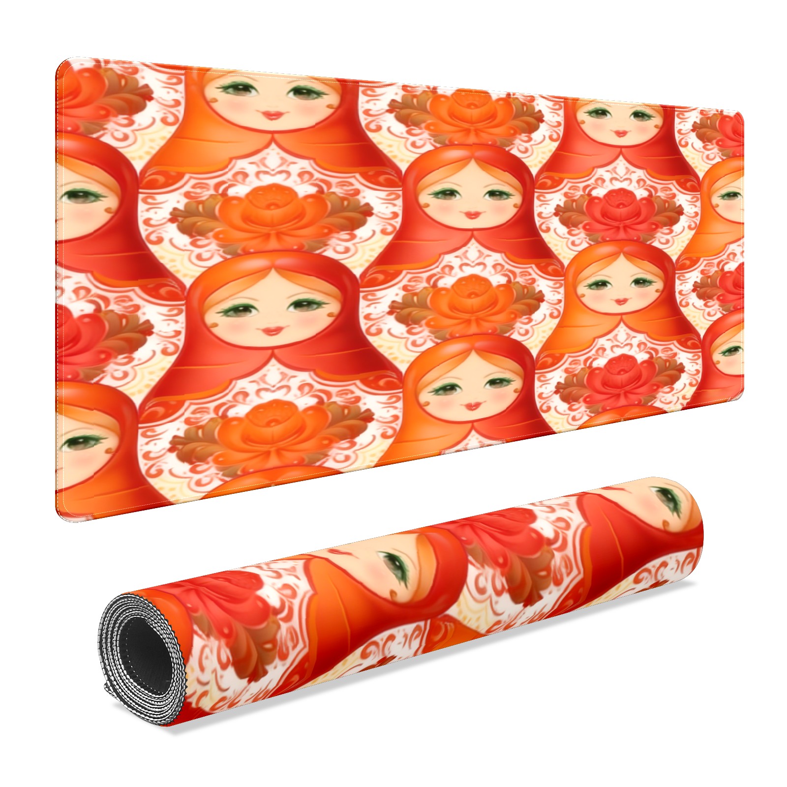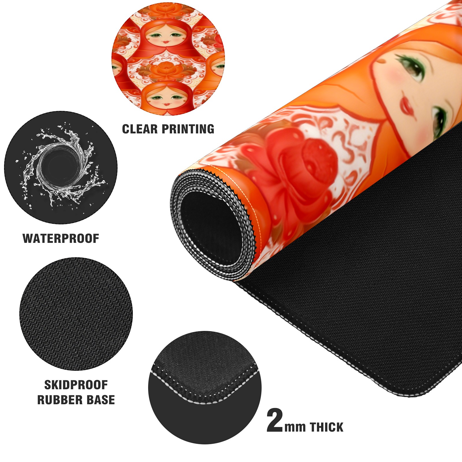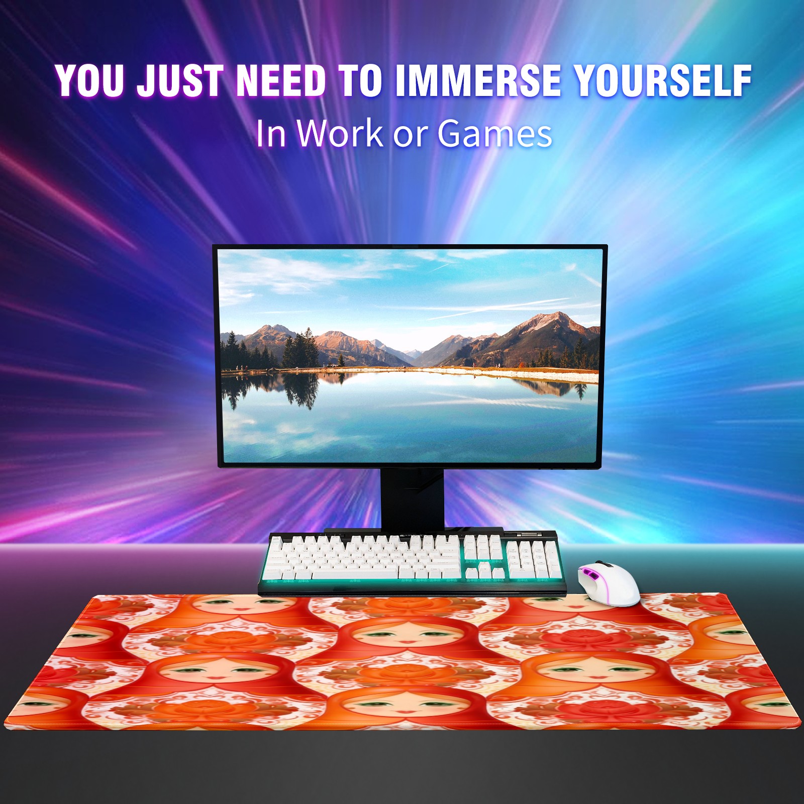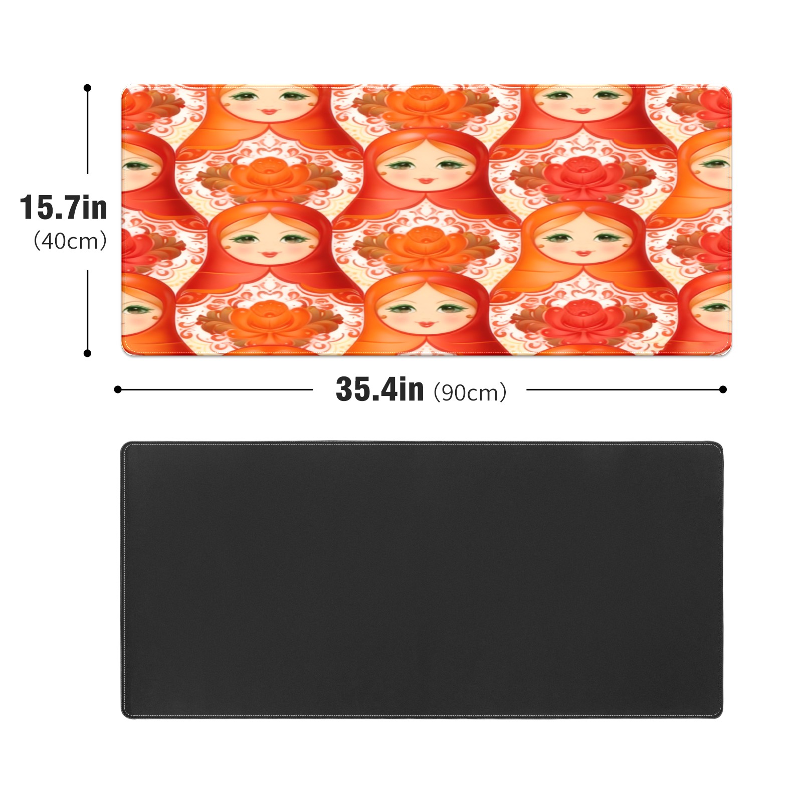 Large Gaming Mouse Pad (90x40cm), Extended Waterproof Desk Mat with Non-Slip Rubber Base, Vintage Dolls Orange for Gamers, Office & Home