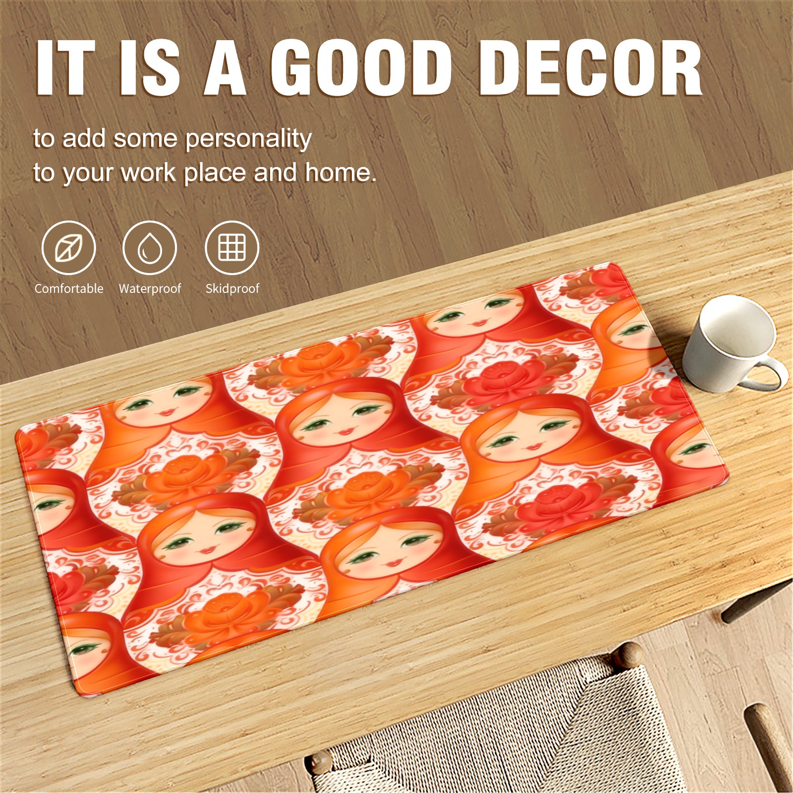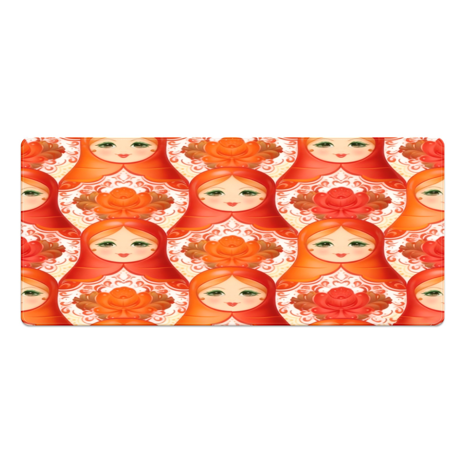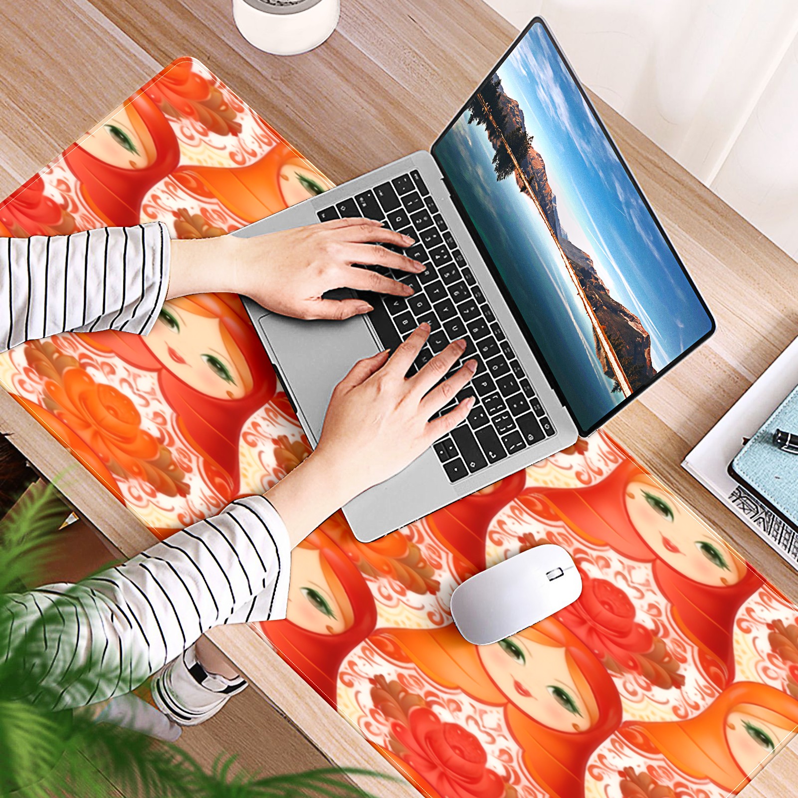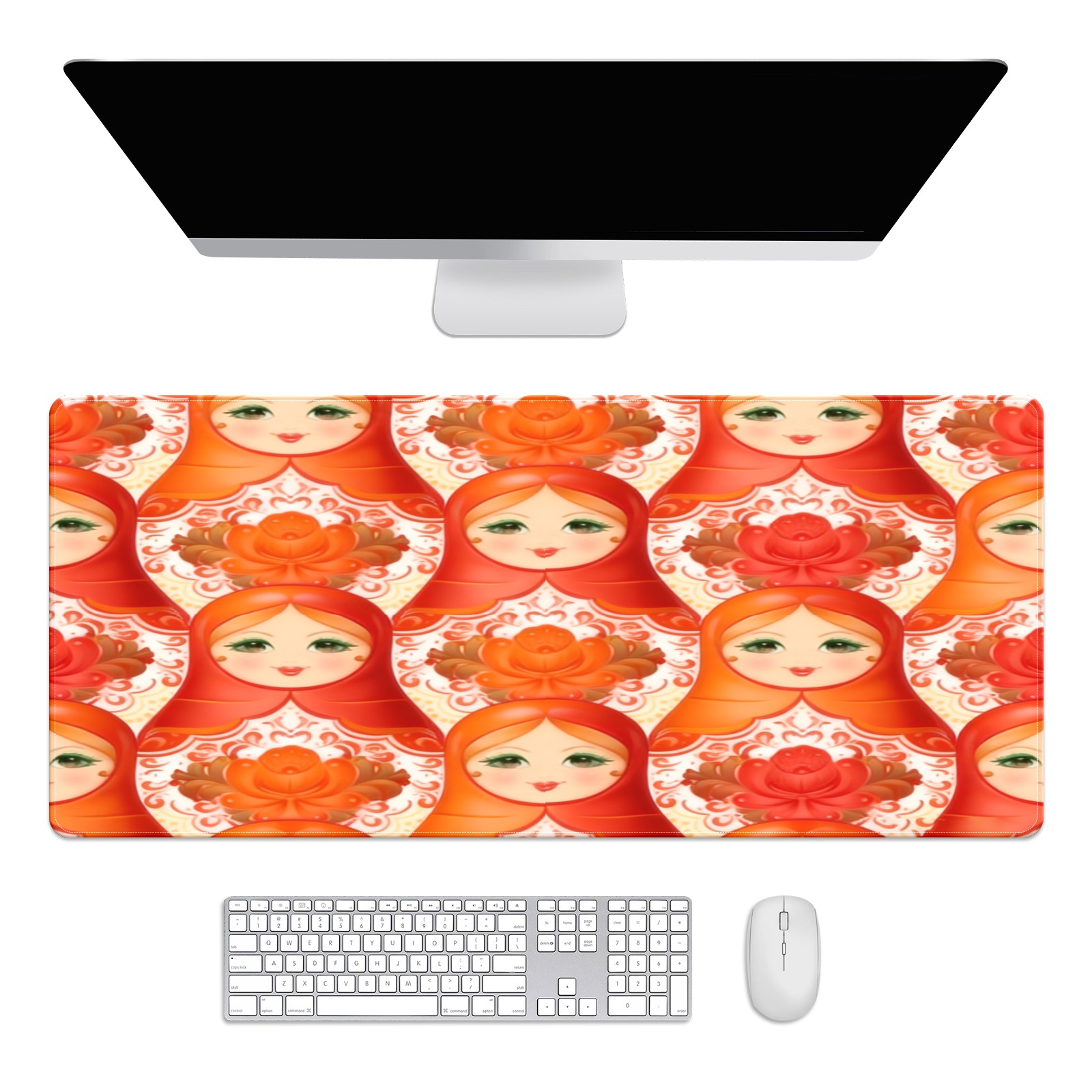 Large Gaming Mouse Pad (90x40cm), Extended Waterproof Desk Mat with Non-Slip Rubber Base, Vintage Dolls Orange for Gamers, Office & Home