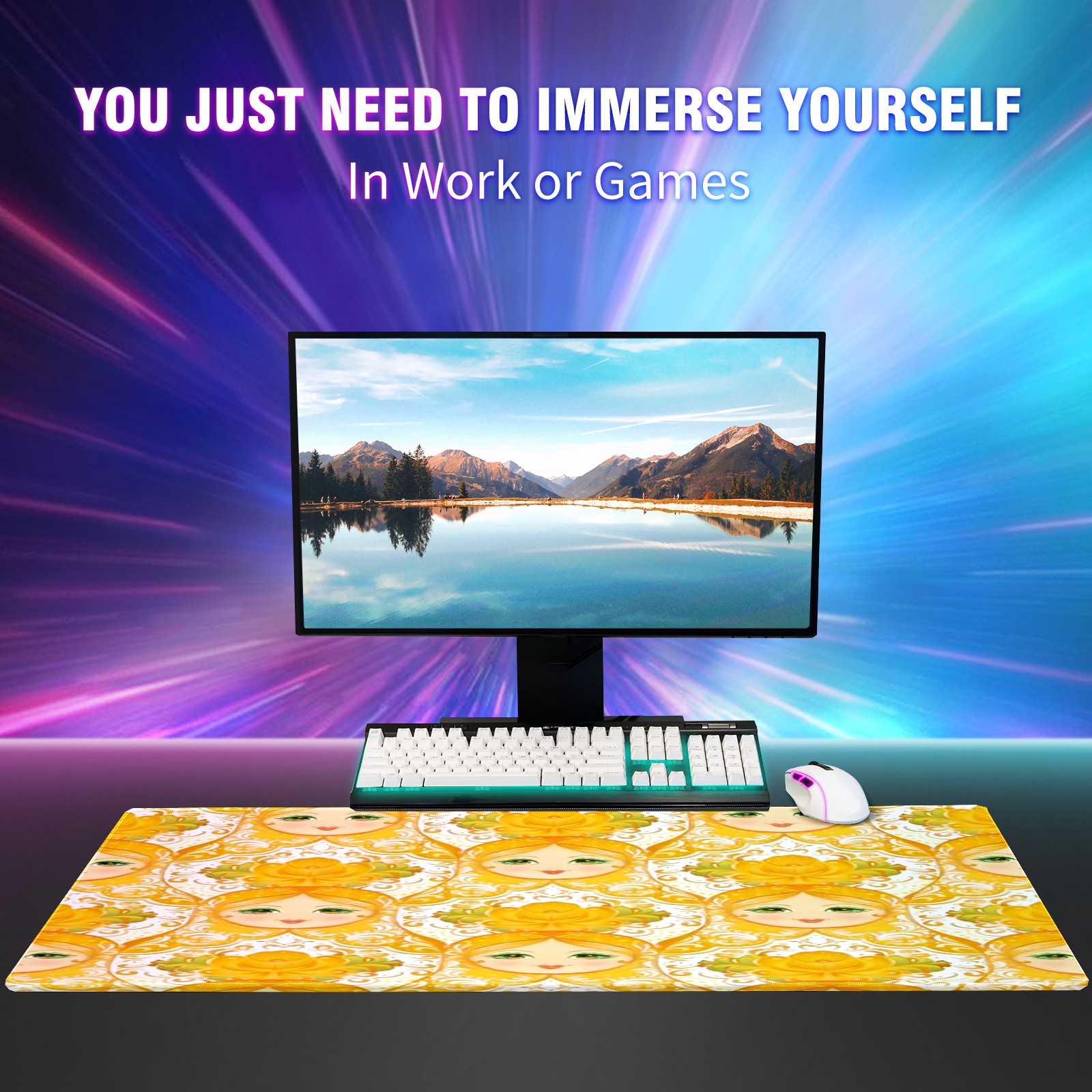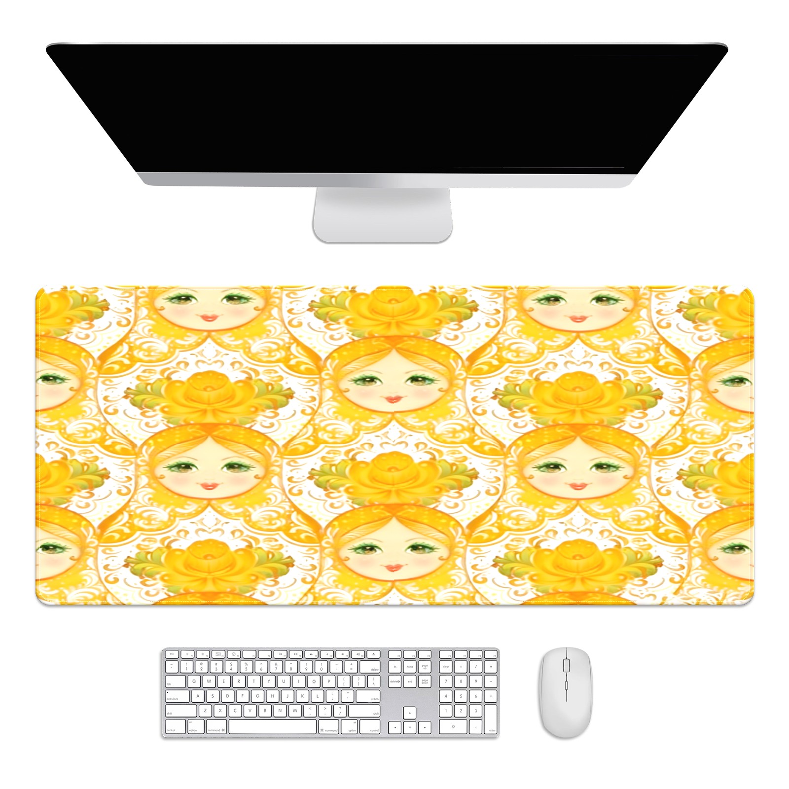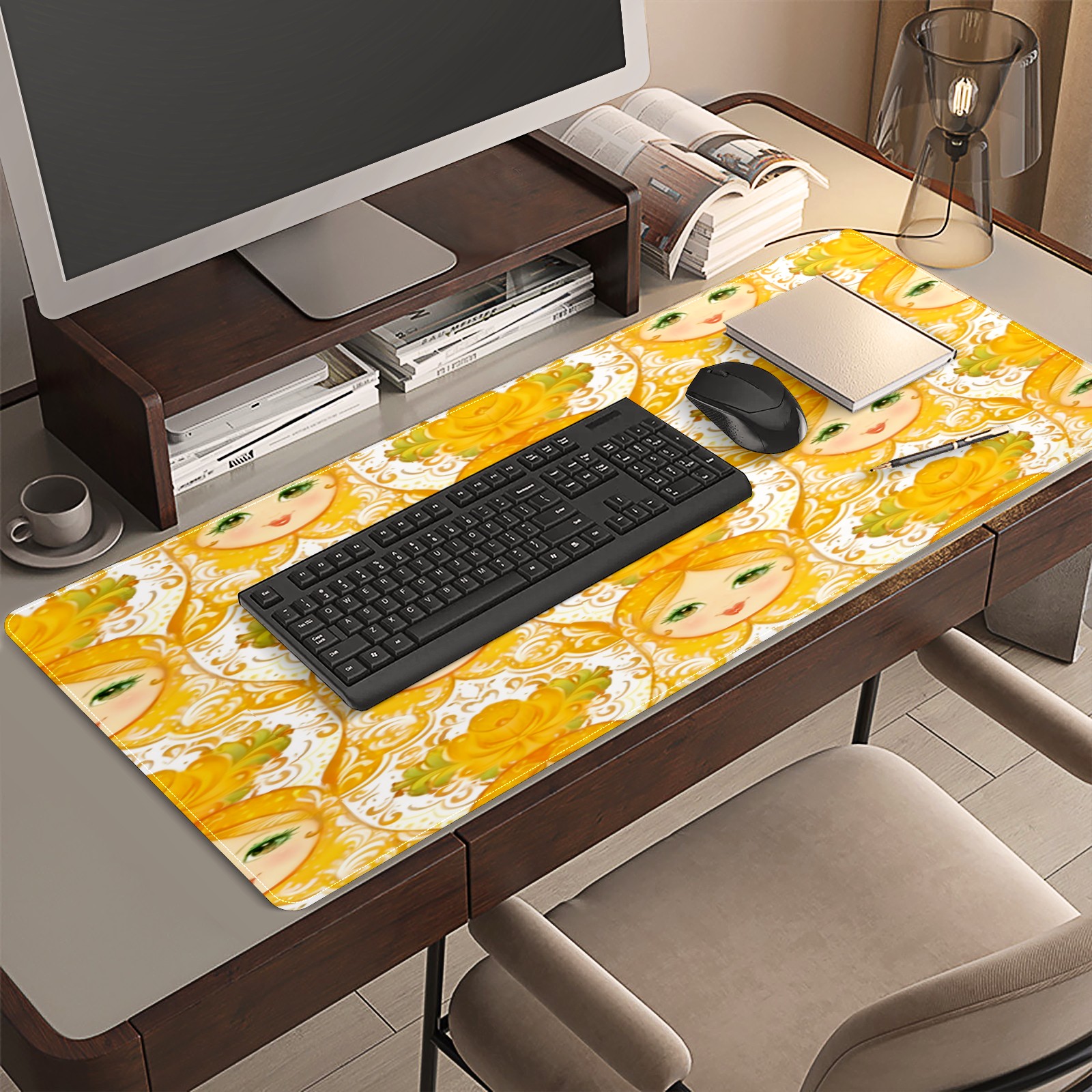 Large Gaming Mouse Pad (90x40cm), Extended Waterproof Desk Mat with Non-Slip Rubber Base, Warm Dolls Yellow for Gamers, Office & Home