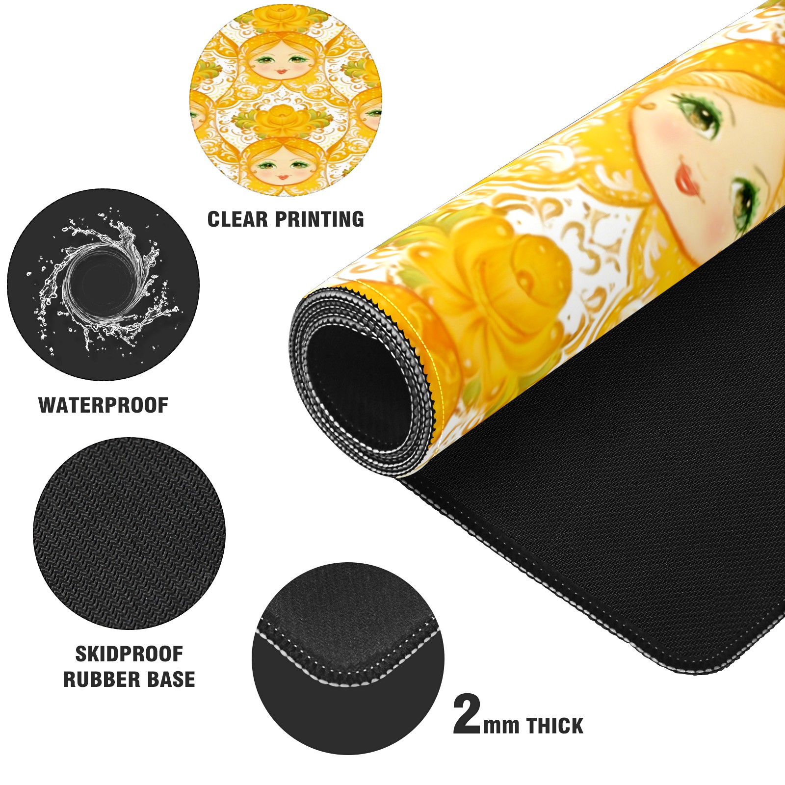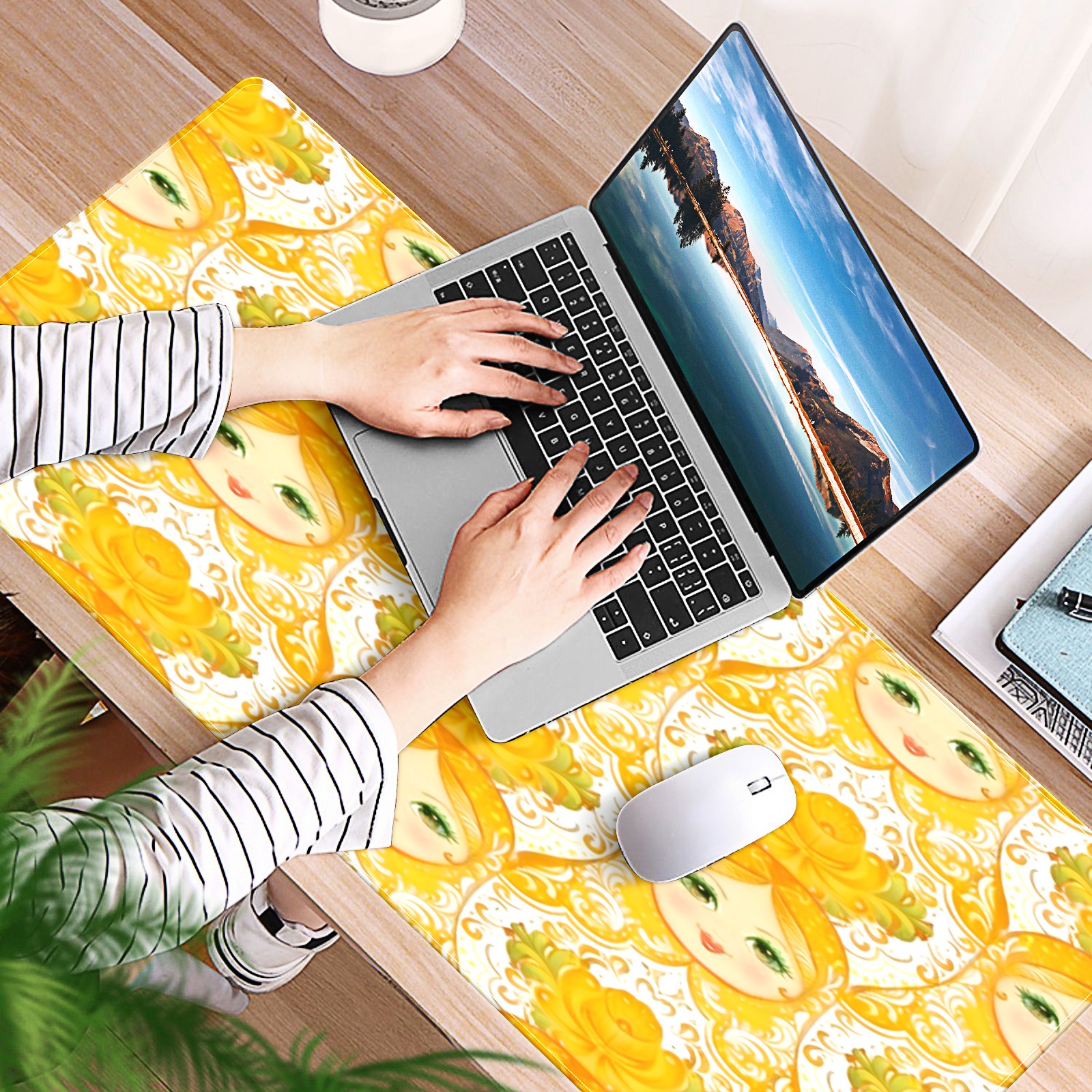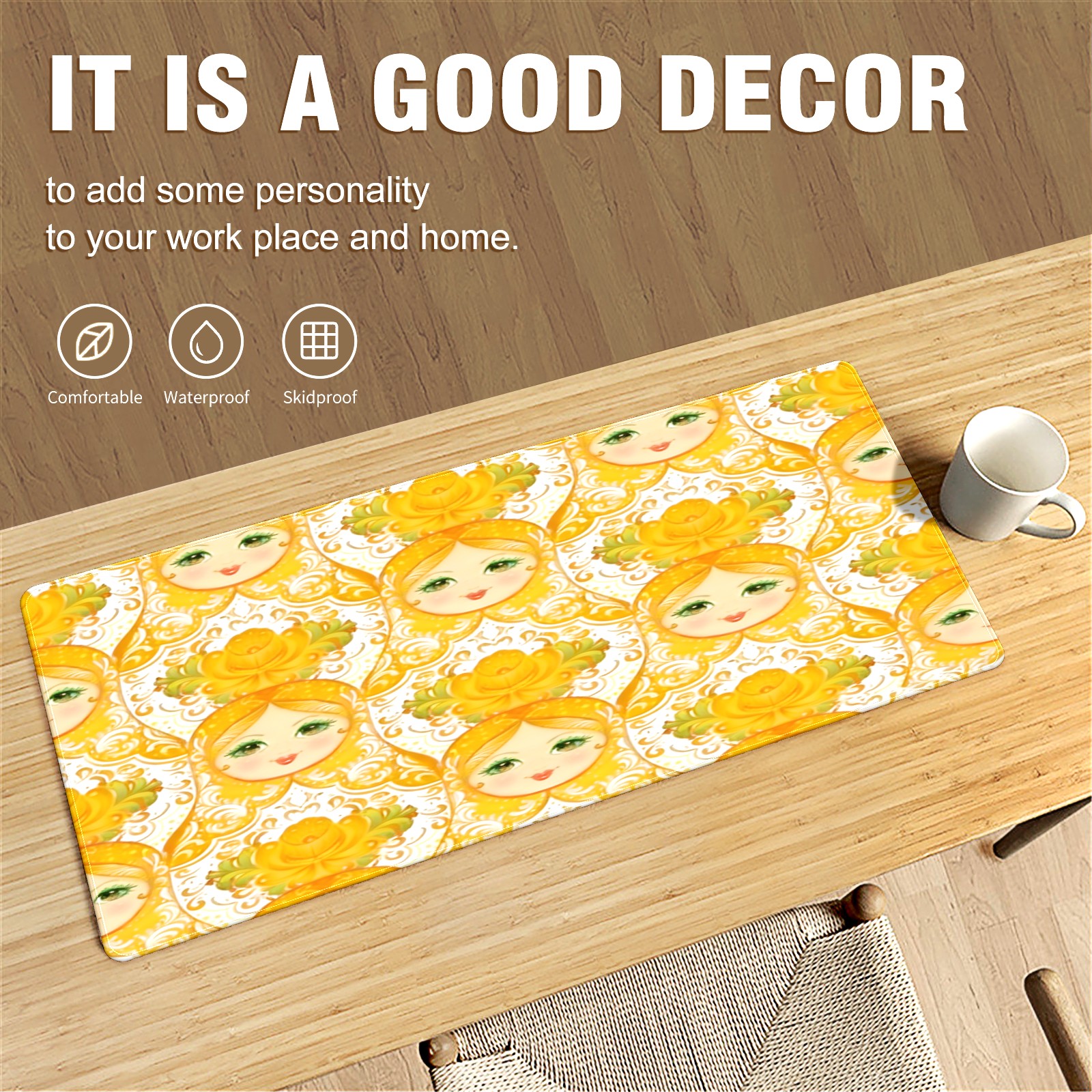 Large Gaming Mouse Pad (90x40cm), Extended Waterproof Desk Mat with Non-Slip Rubber Base, Warm Dolls Yellow for Gamers, Office & Home