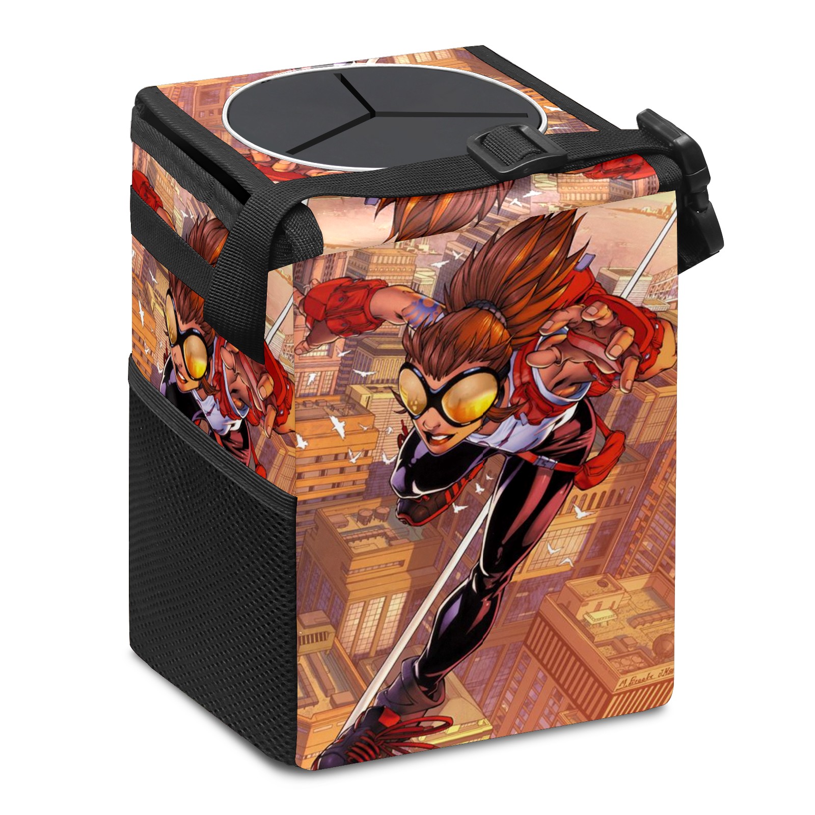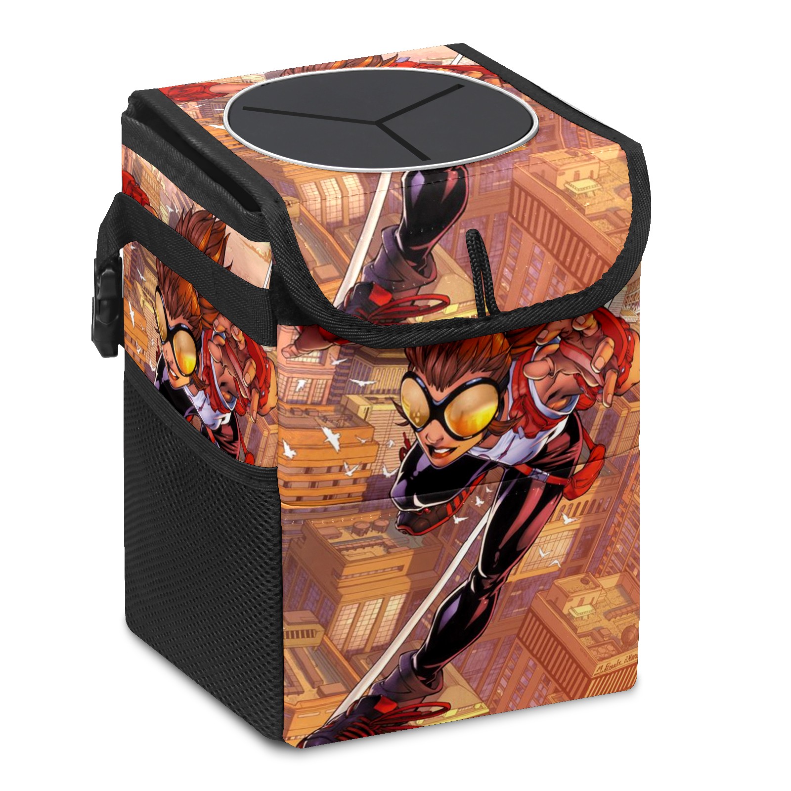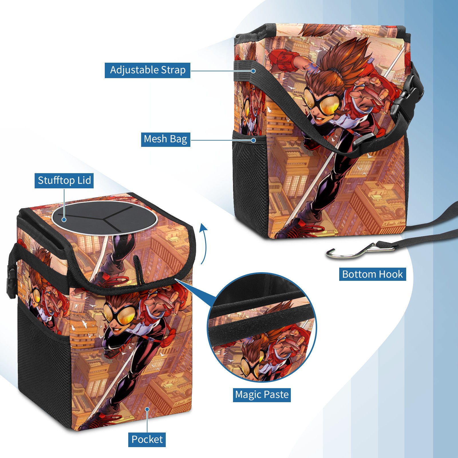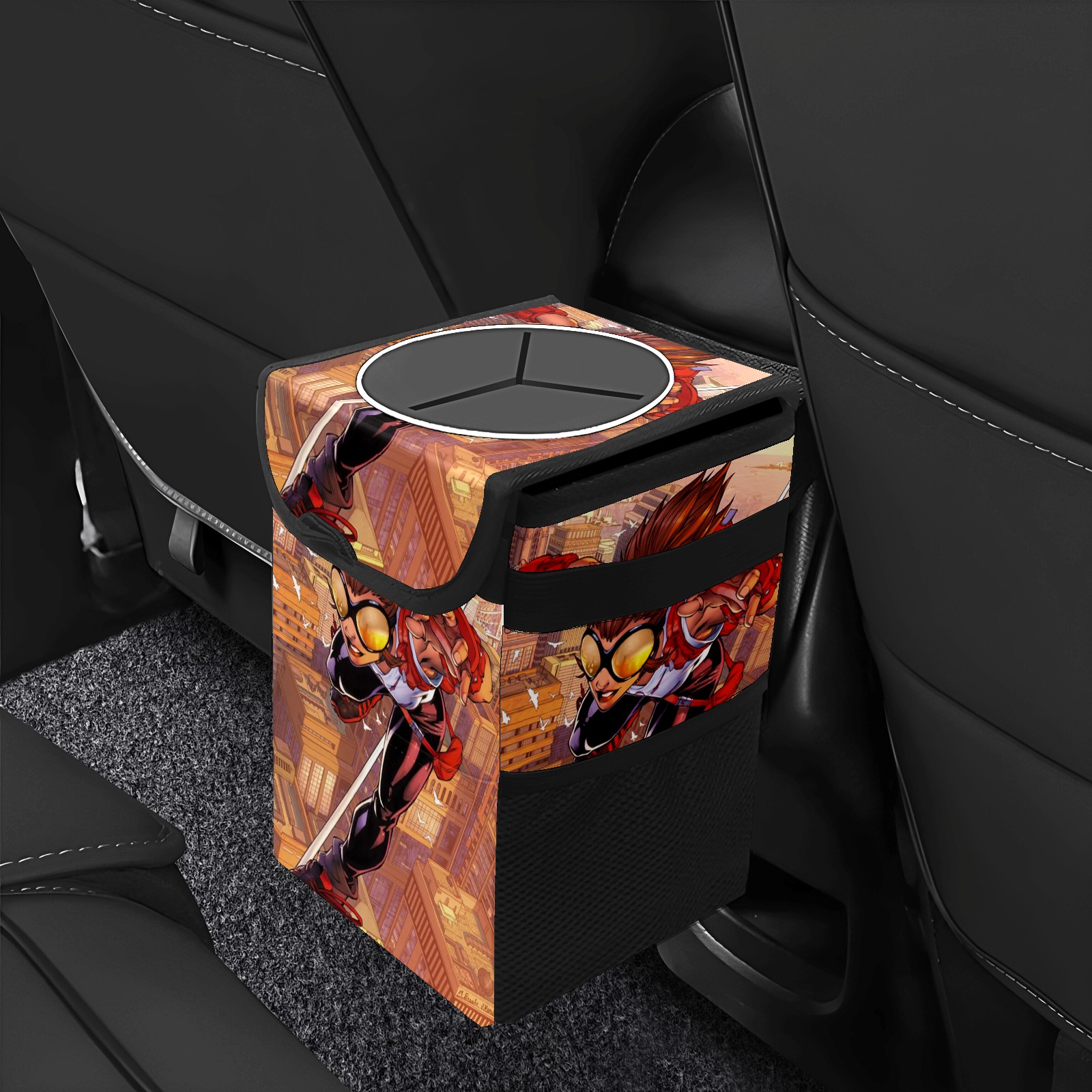 Car Trash Can with Lid, Small Portable Hanging Automotive Garbage Bin for Vehicles, Leakproof Waste Bag Container for SUV Truck Van Interior Auto Travel Road Trips(漫威 (1015))