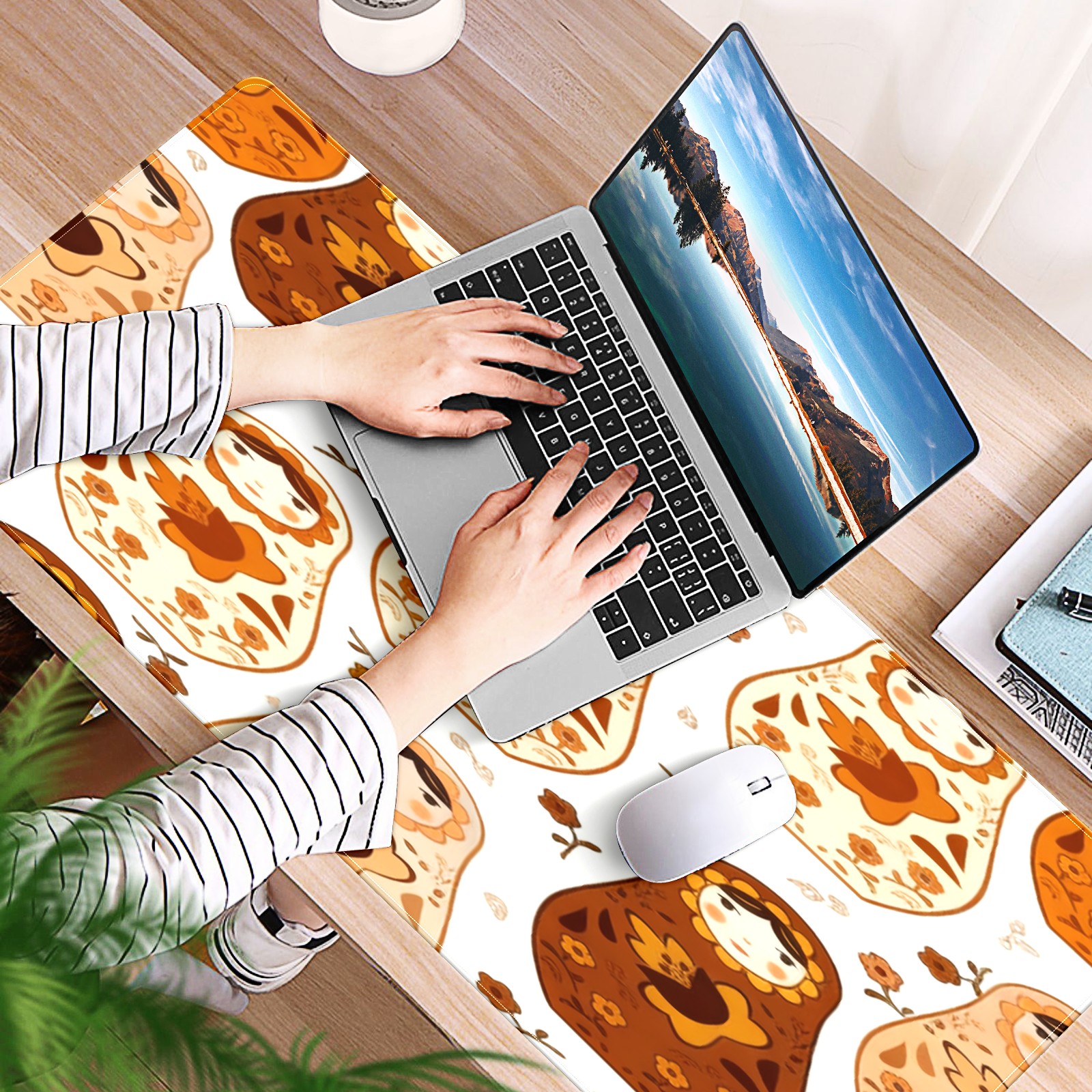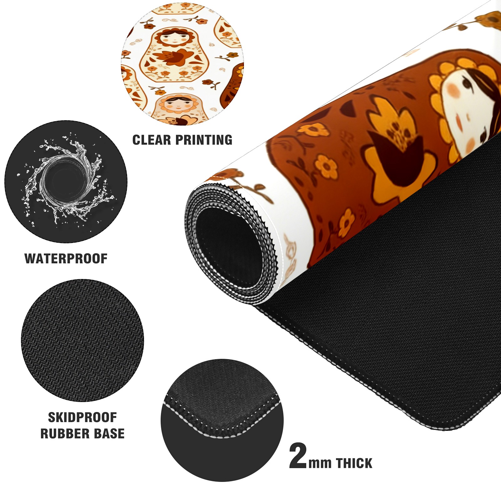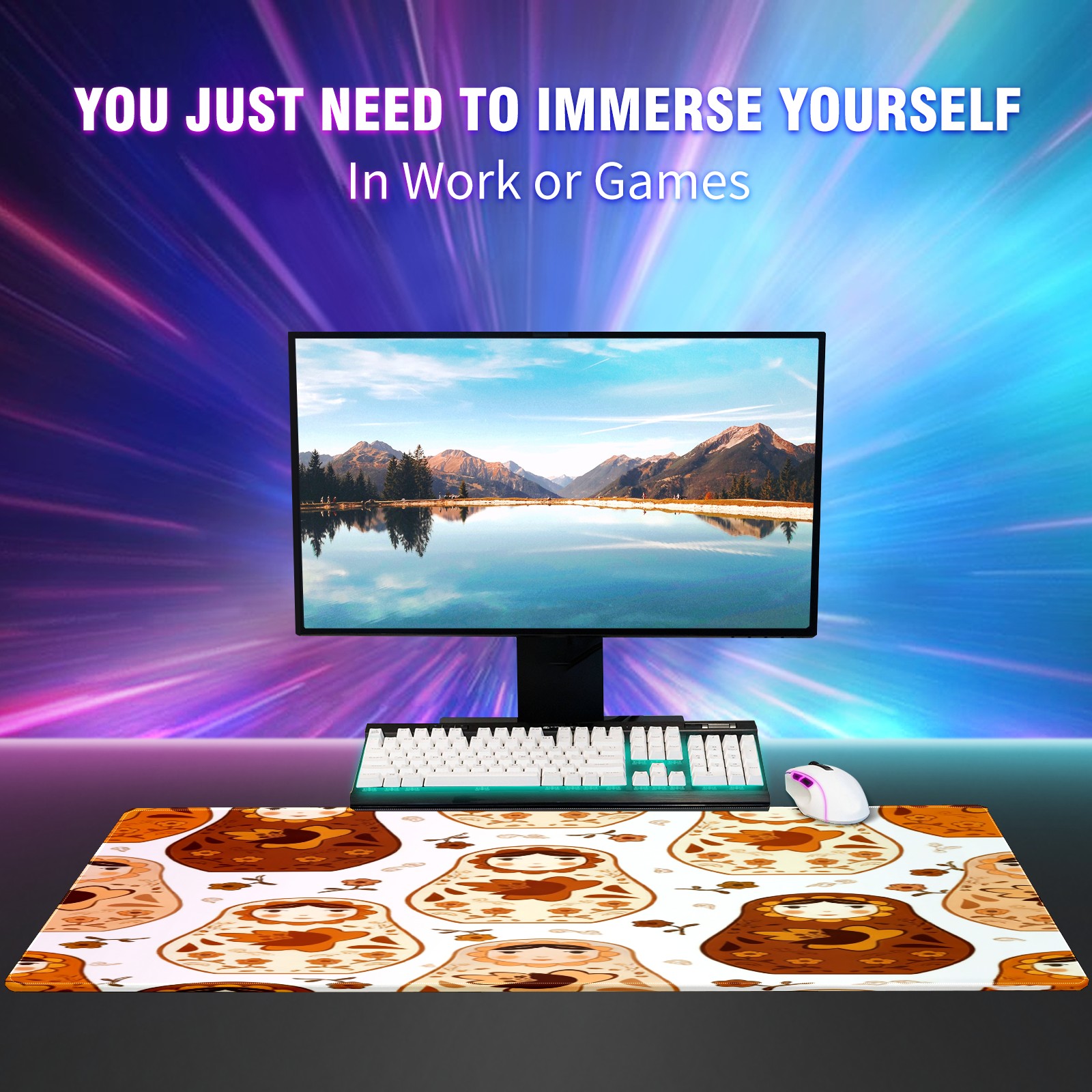 Large Gaming Mouse Pad (90x40cm), Extended Waterproof Desk Mat with Non-Slip Rubber Base, Calm Dolls Brown for Gamers, Office & Home