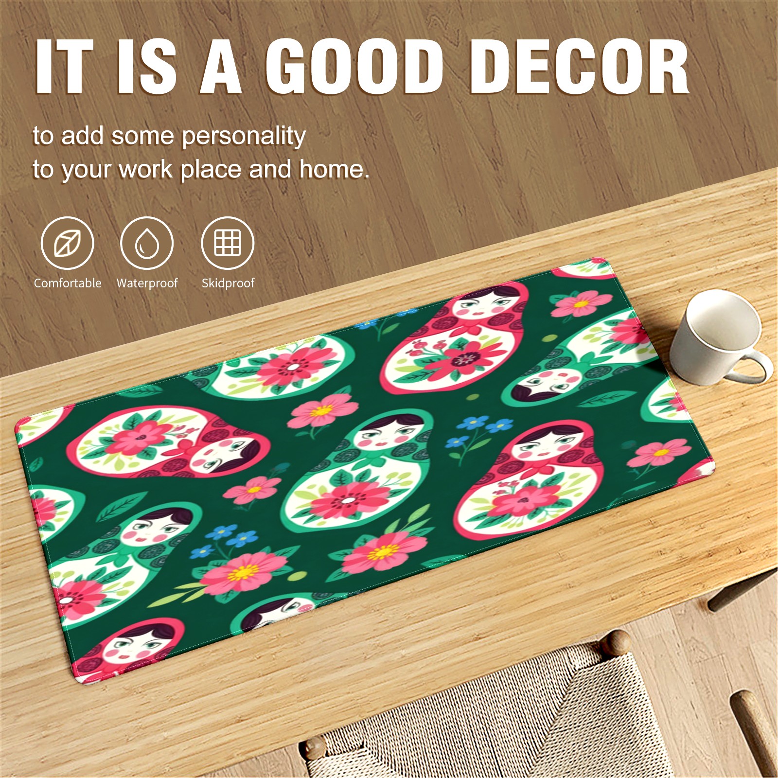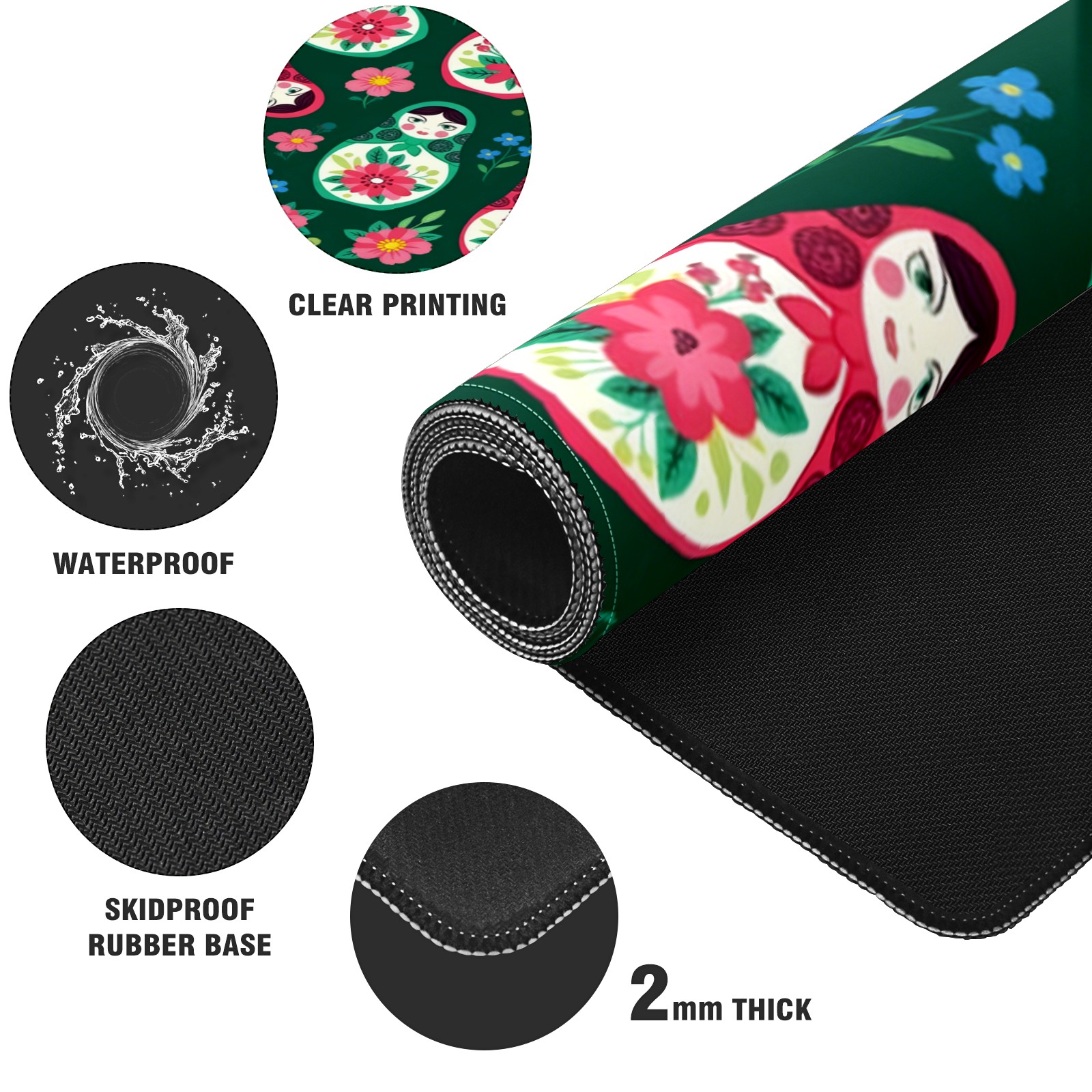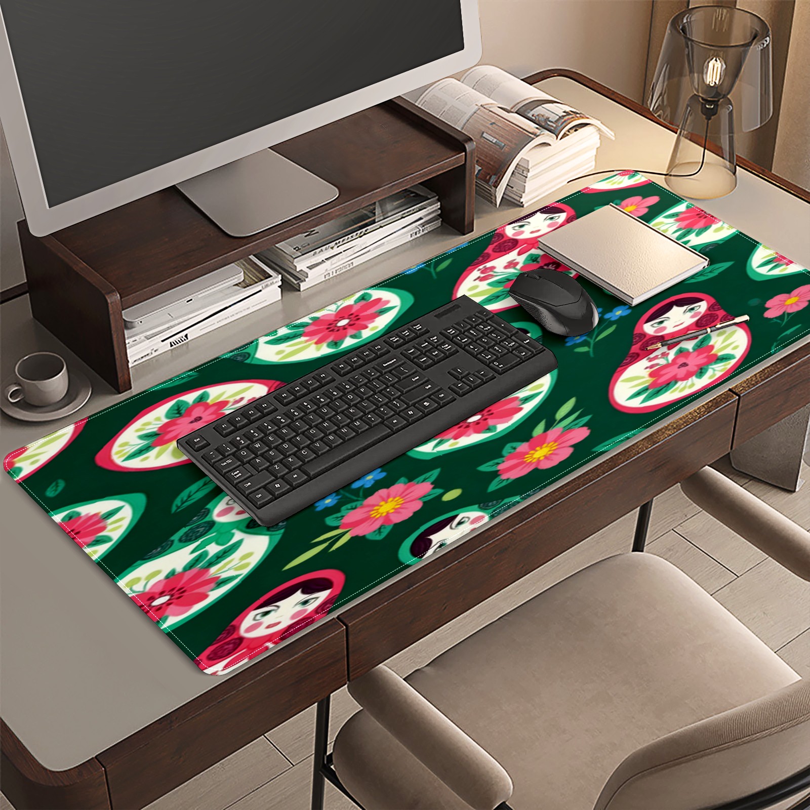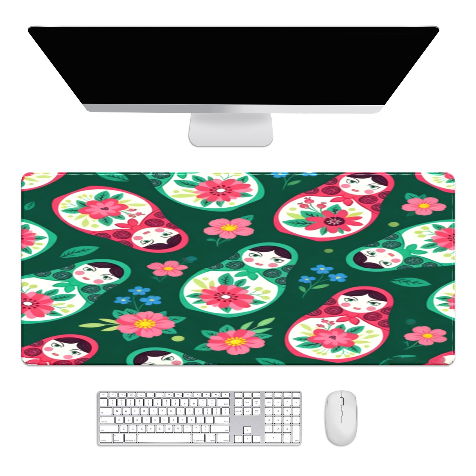 Large Gaming Mouse Pad (90x40cm), Extended Waterproof Desk Mat with Non-Slip Rubber Base, Fresh Dolls Green for Gamers, Office & Home