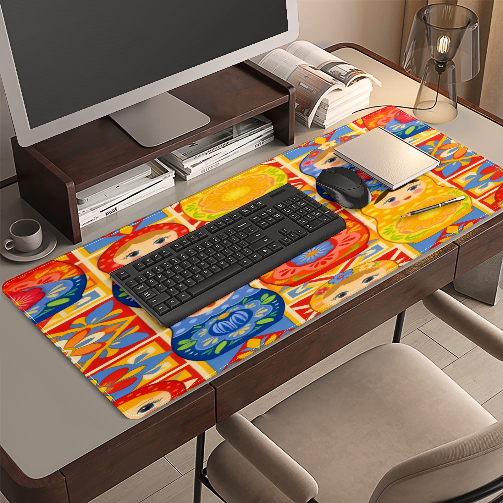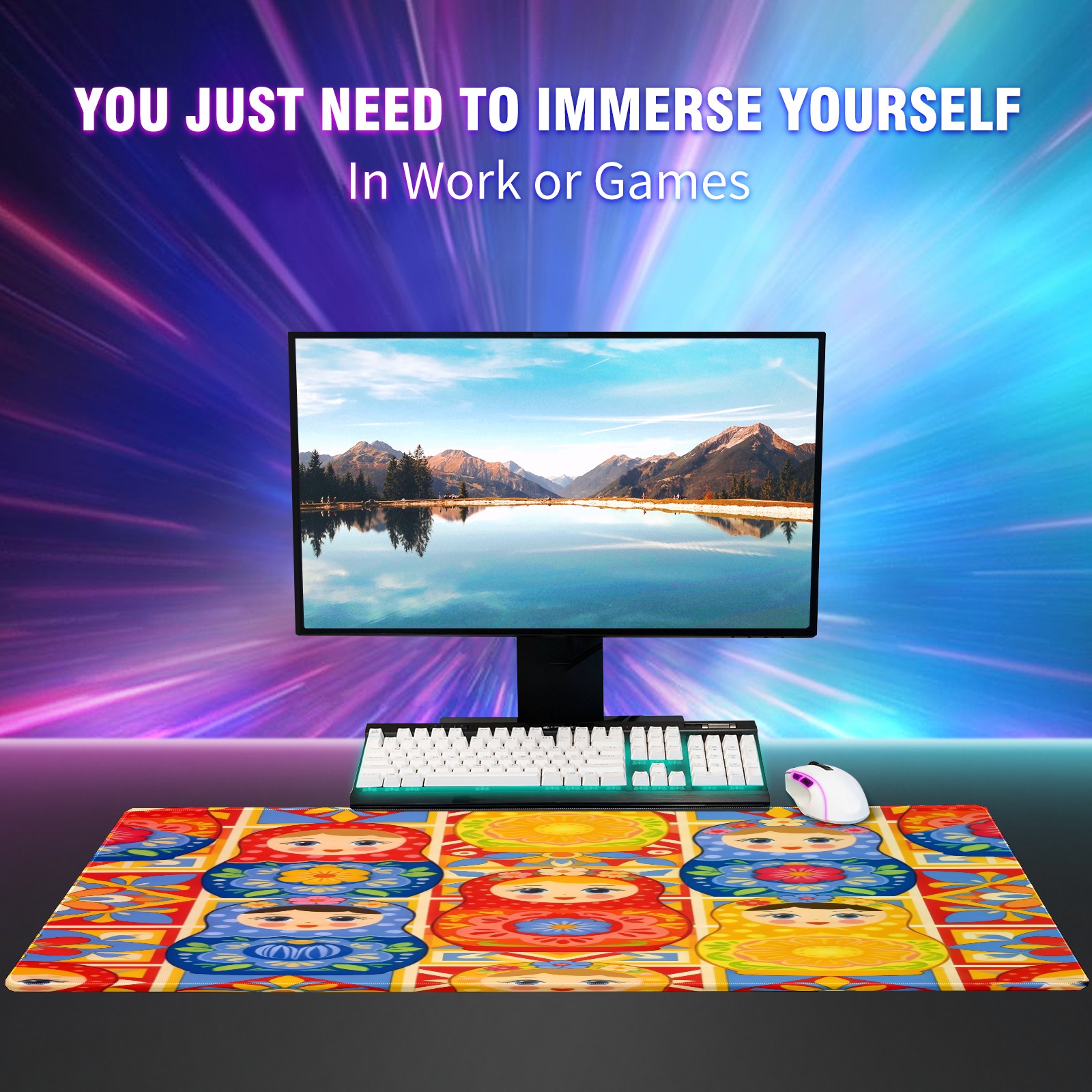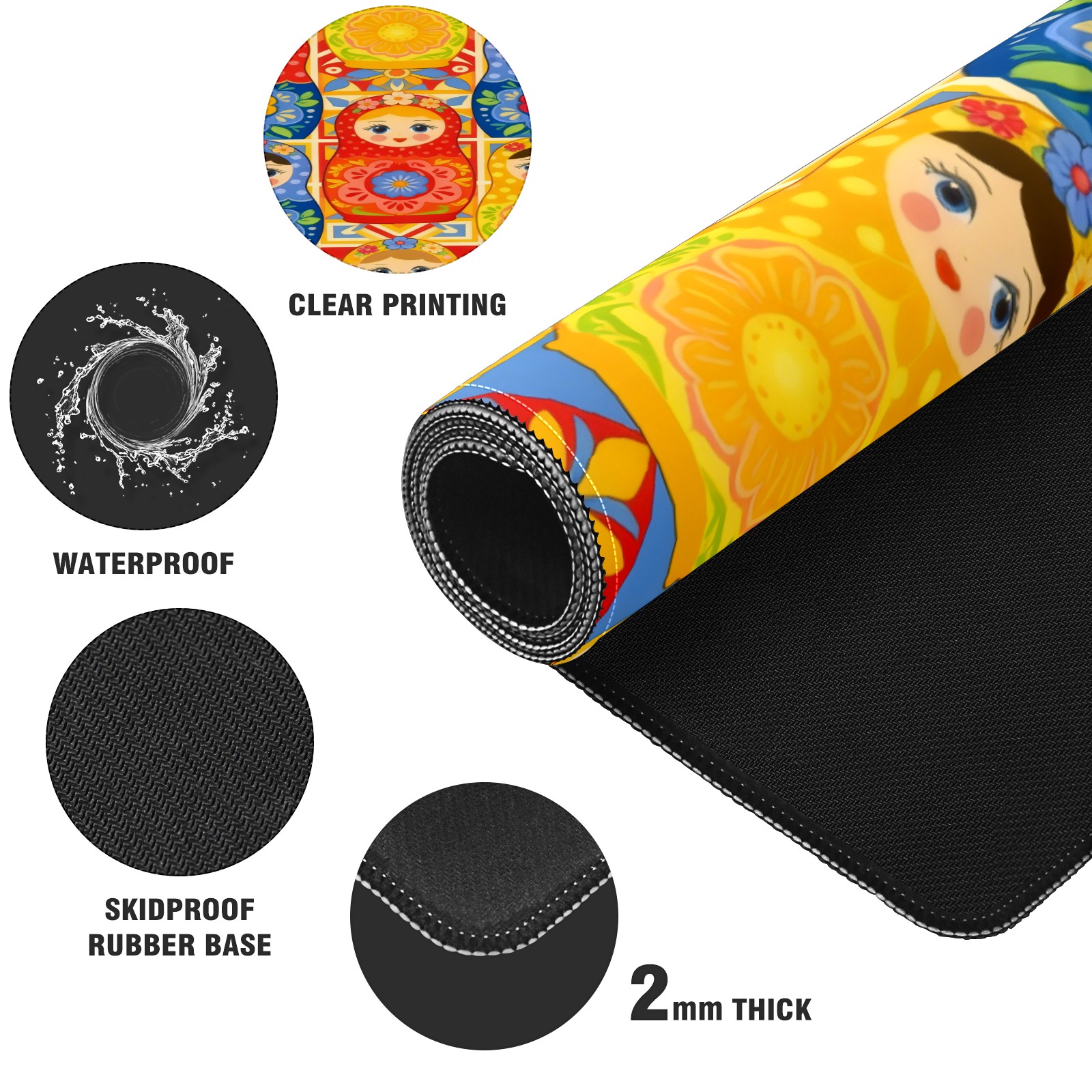 Large Gaming Mouse Pad (90x40cm), Extended Waterproof Desk Mat with Non-Slip Rubber Base, Colorful Dolls Yellow for Gamers, Office & Home