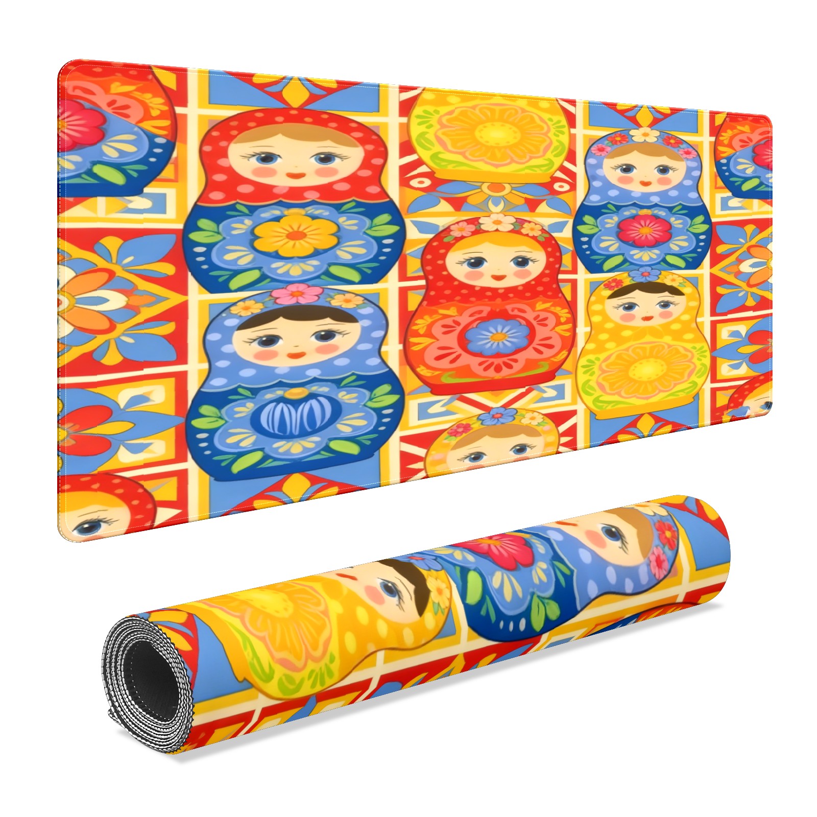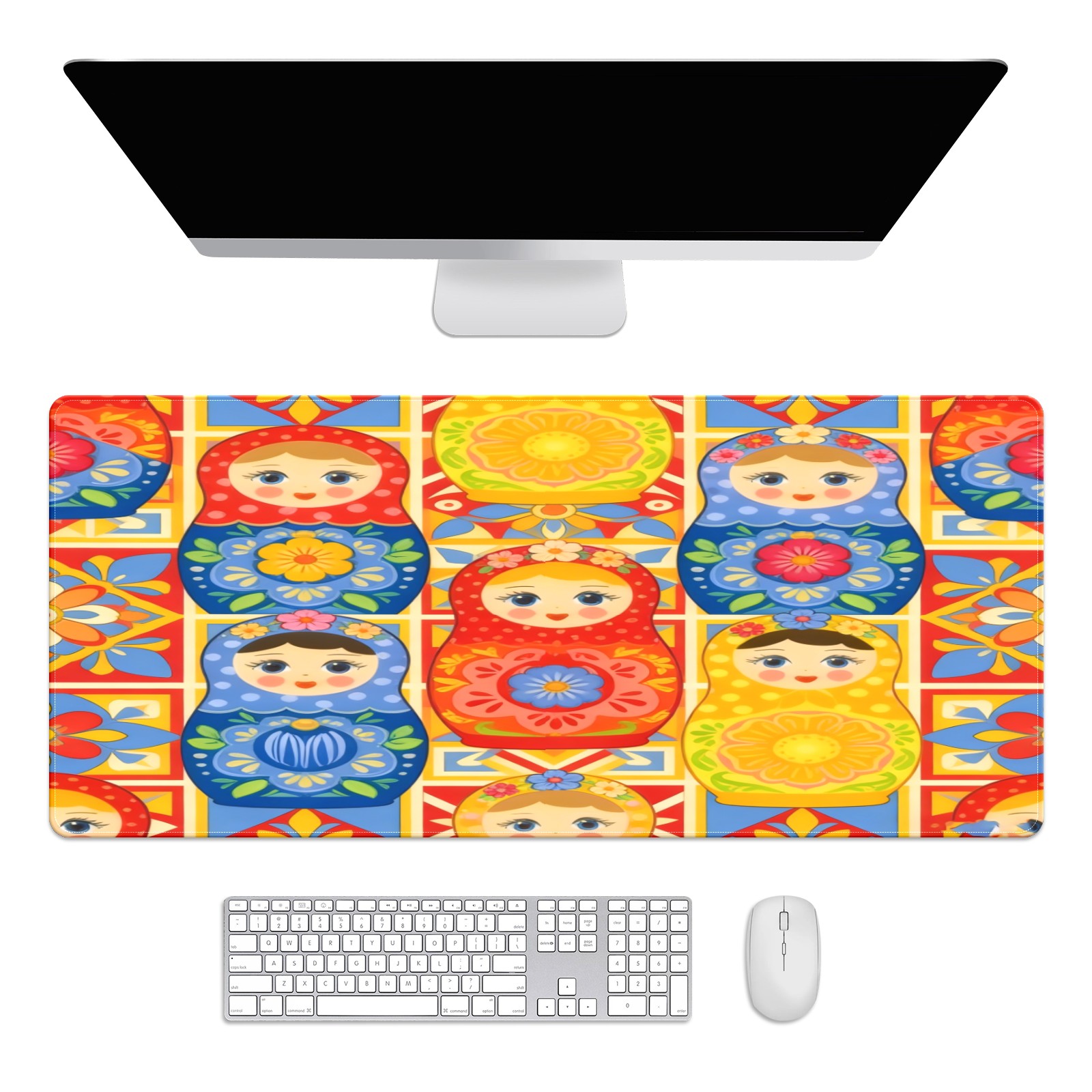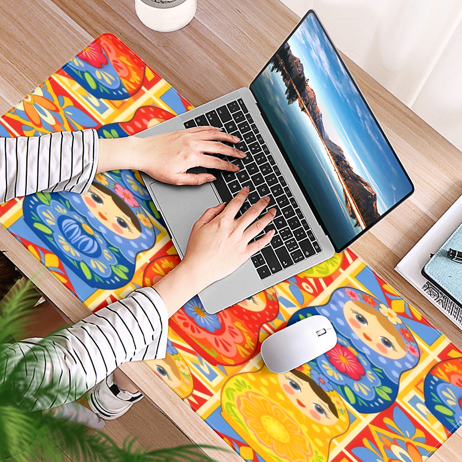 Large Gaming Mouse Pad (90x40cm), Extended Waterproof Desk Mat with Non-Slip Rubber Base, Colorful Dolls Yellow for Gamers, Office & Home