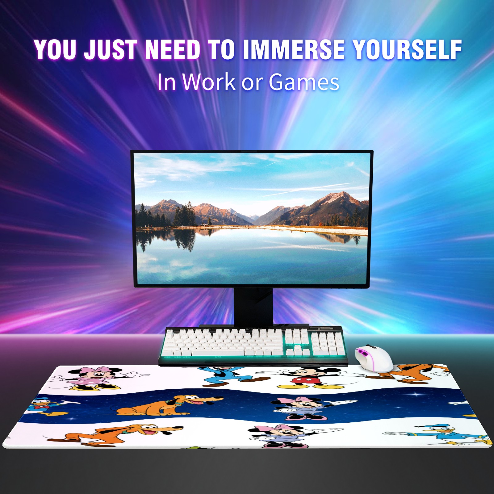 Large Gaming Mouse Pad (90x40cm), Extended Waterproof Desk Mat with Non-Slip Rubber Base, Cheerful Character White for Gamers, Office & Home