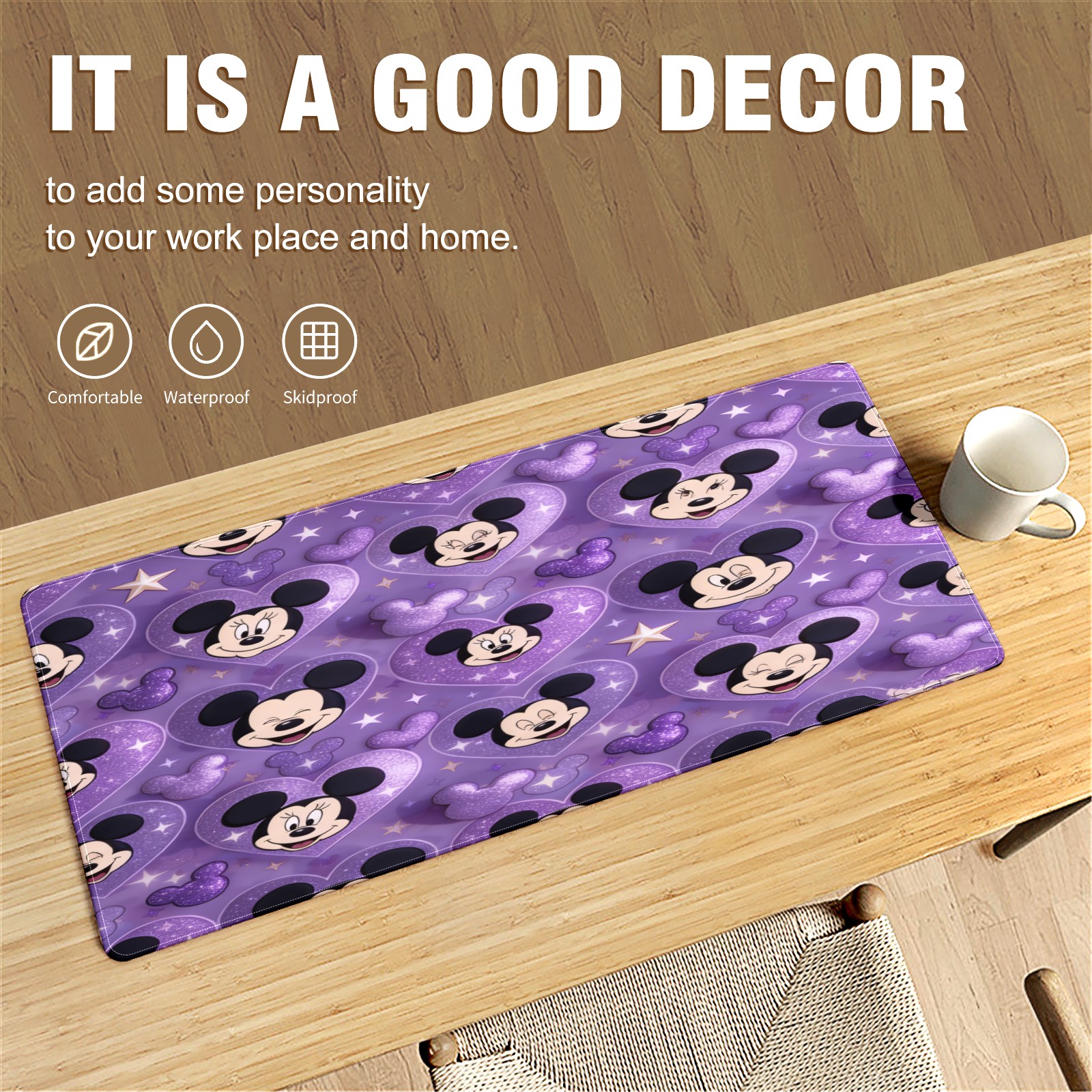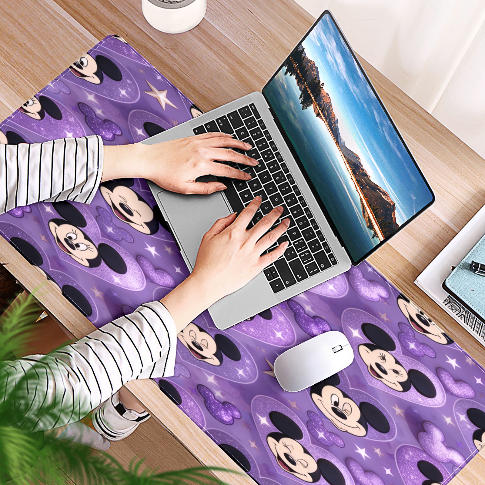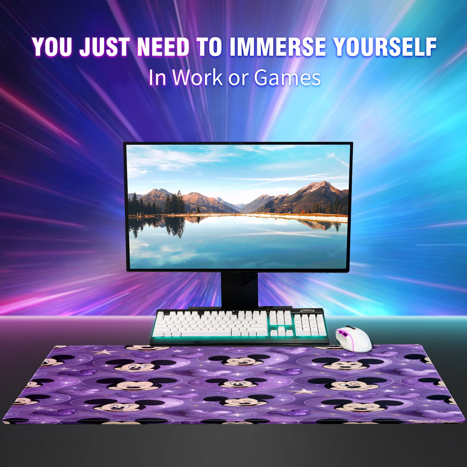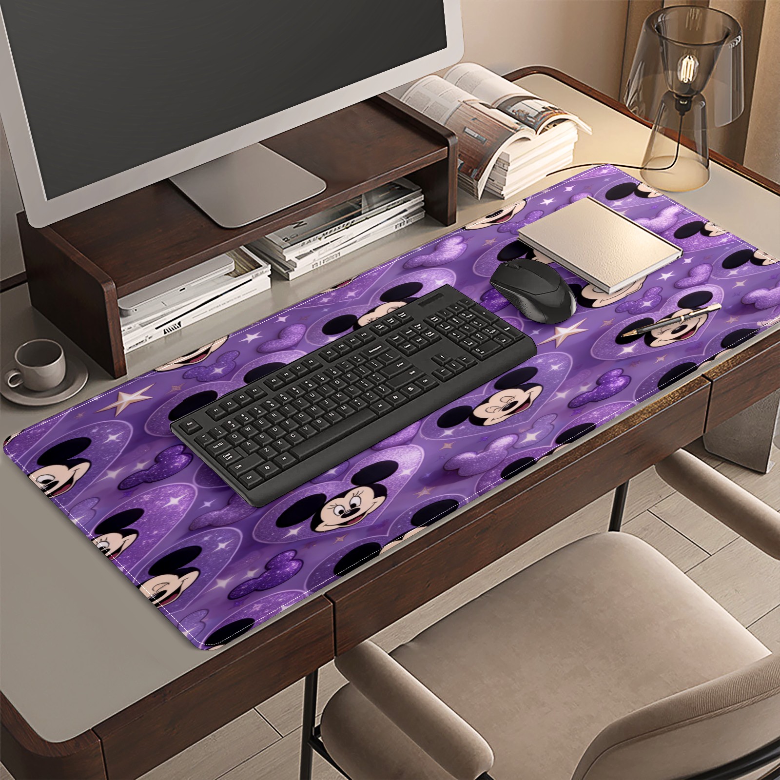 Large Gaming Mouse Pad (90x40cm), Extended Waterproof Desk Mat with Non-Slip Rubber Base, Mysterious Mouse Purple for Gamers, Office & Home