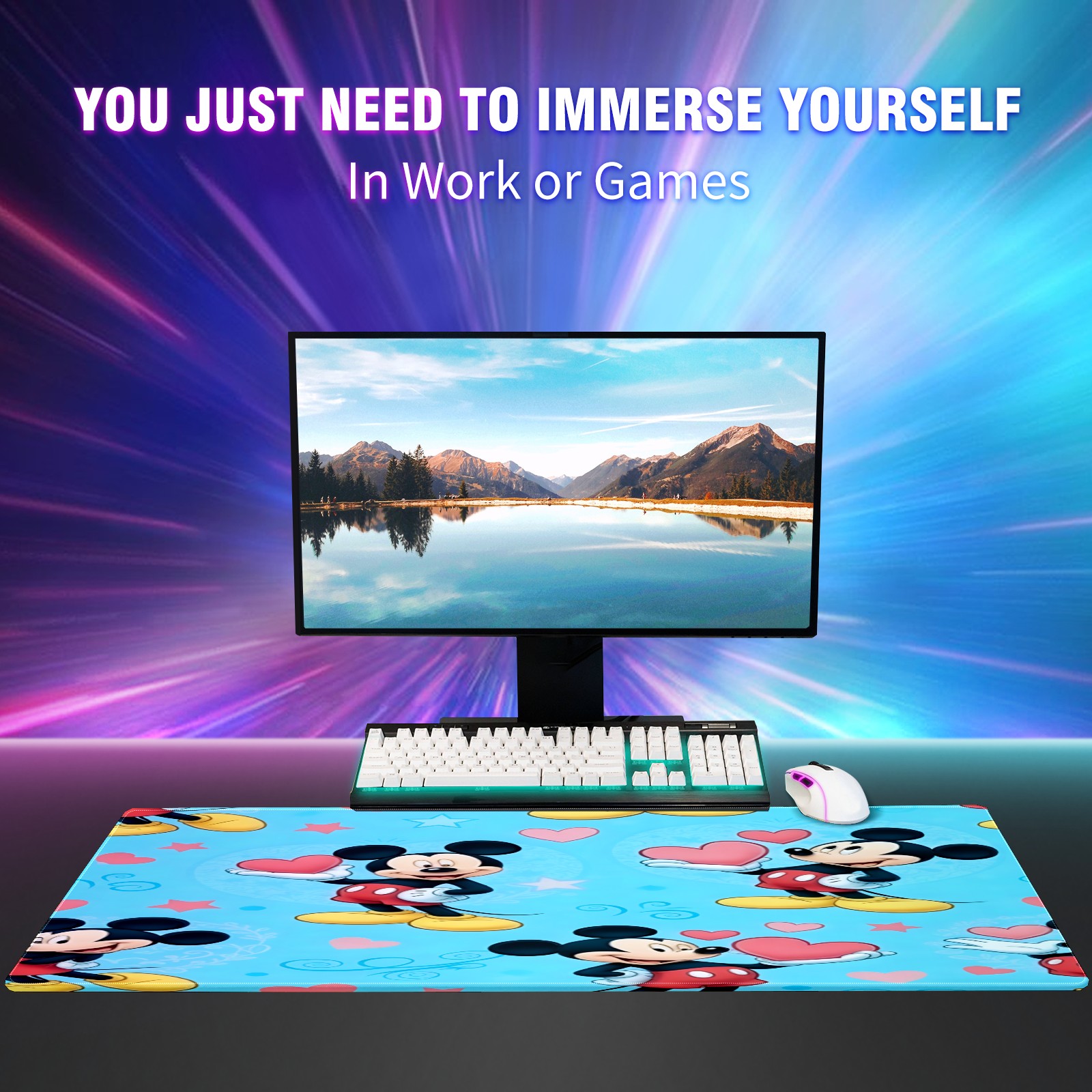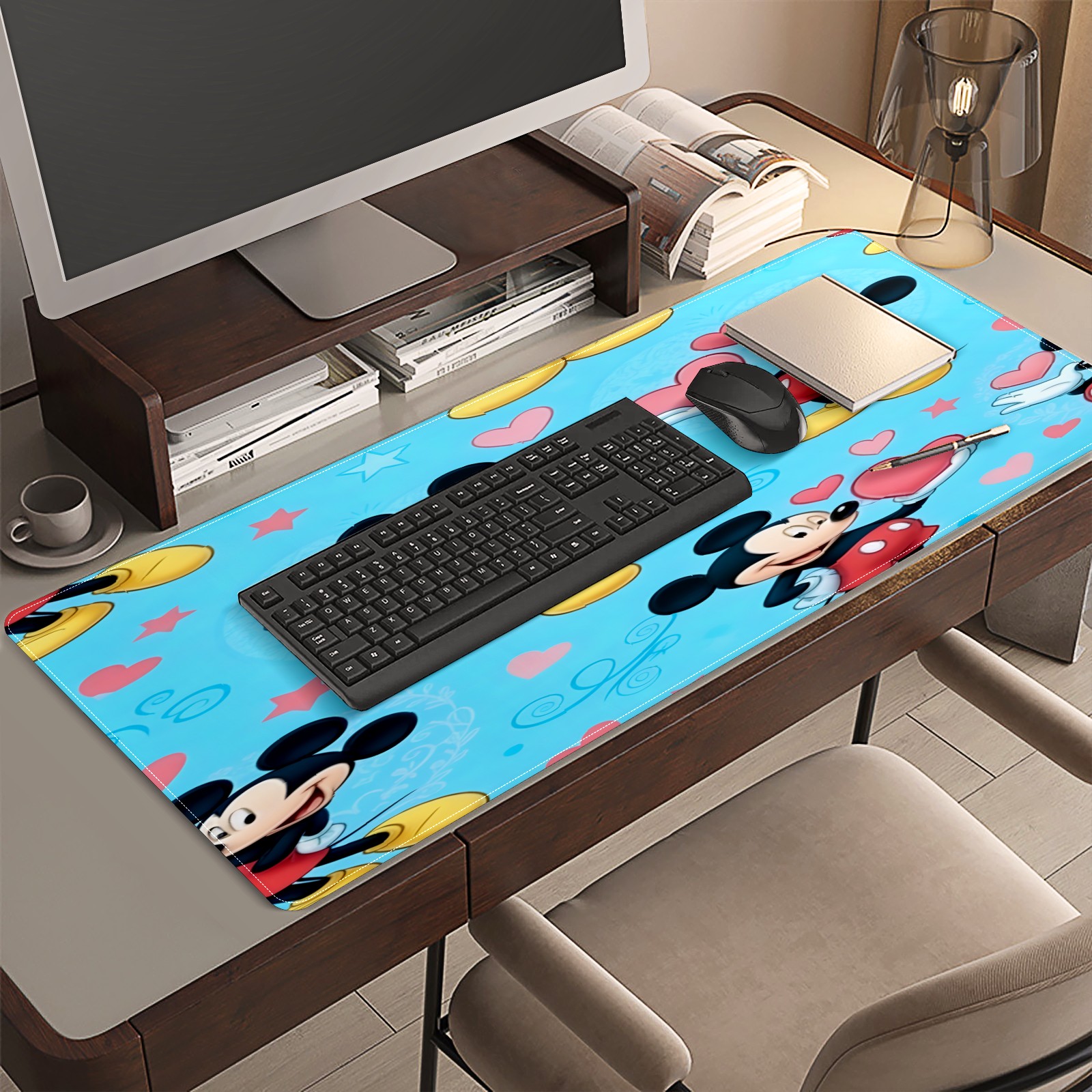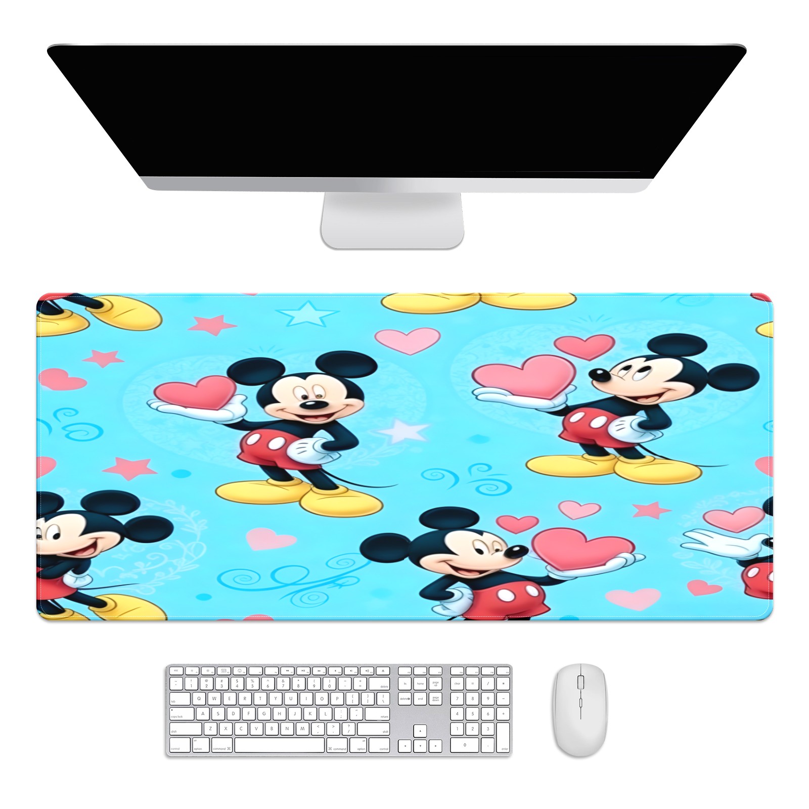 Large Gaming Mouse Pad (90x40cm), Extended Waterproof Desk Mat with Non-Slip Rubber Base, Romantic Mouse Blue for Gamers, Office & Home