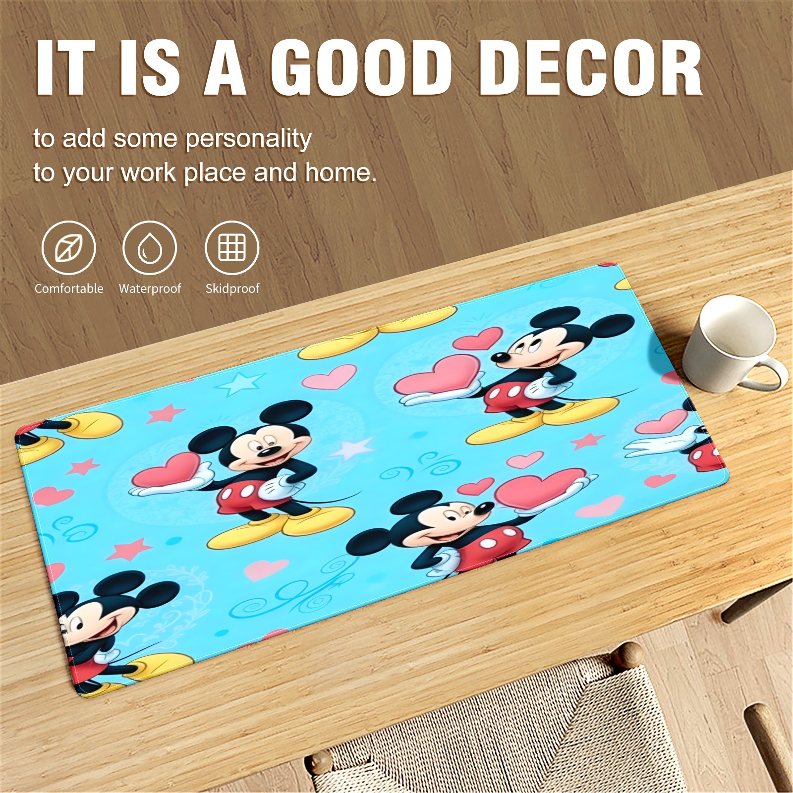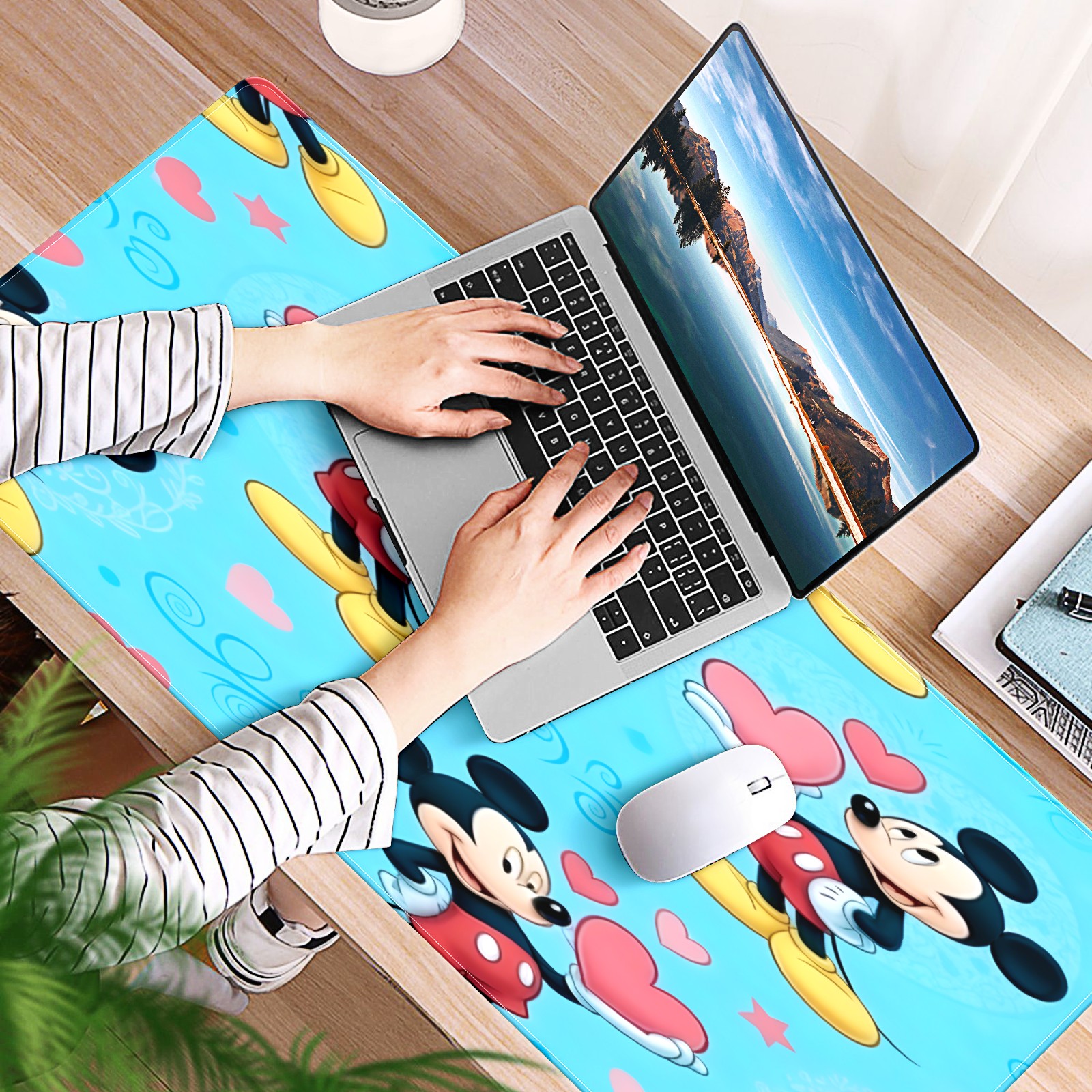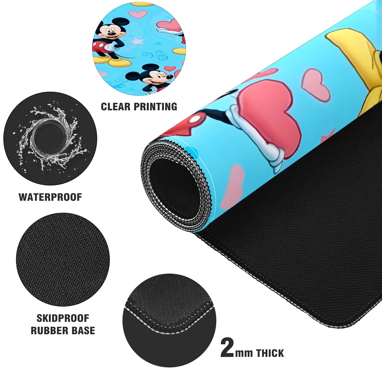 Large Gaming Mouse Pad (90x40cm), Extended Waterproof Desk Mat with Non-Slip Rubber Base, Romantic Mouse Blue for Gamers, Office & Home