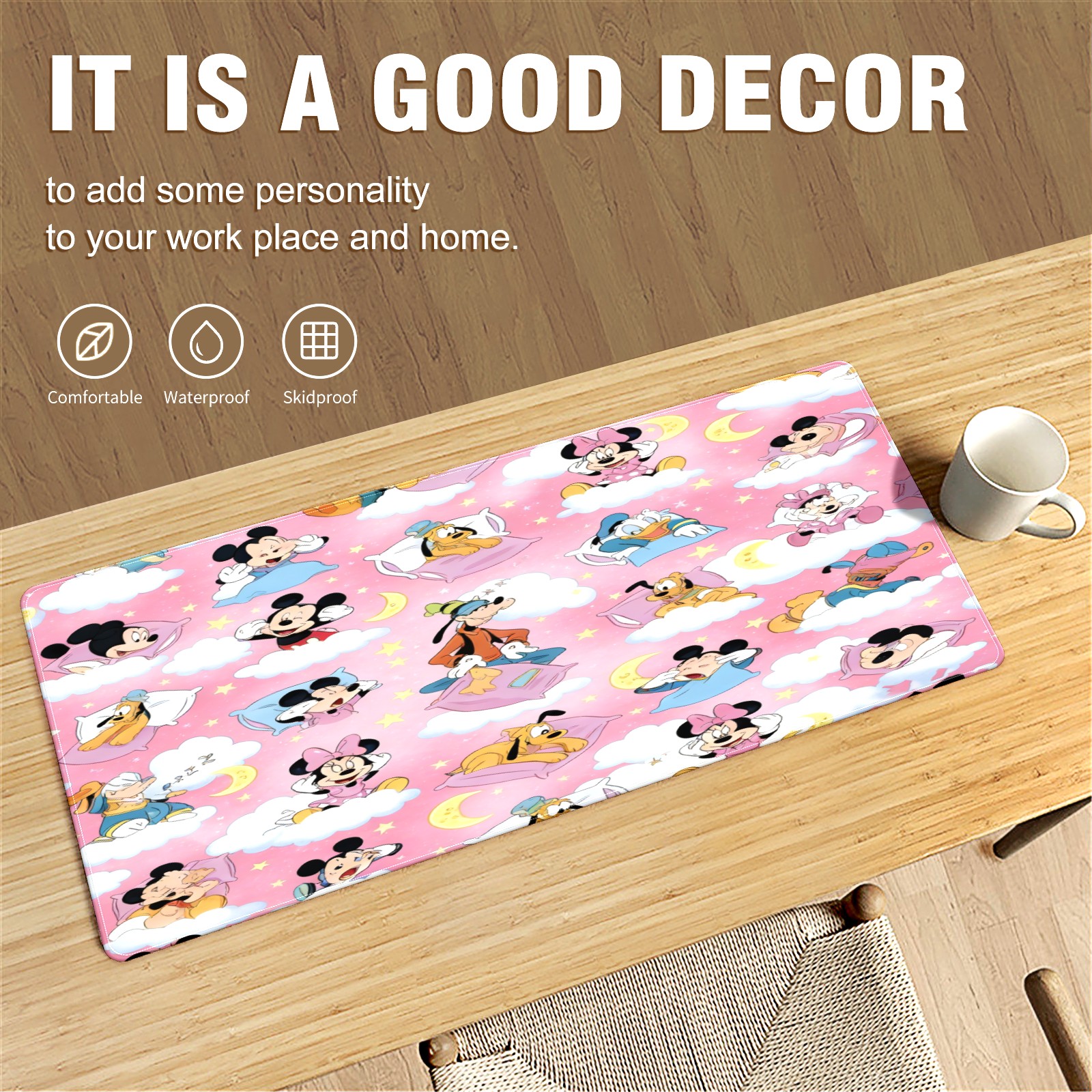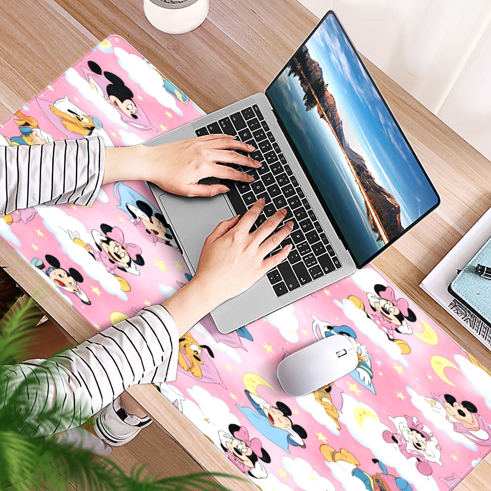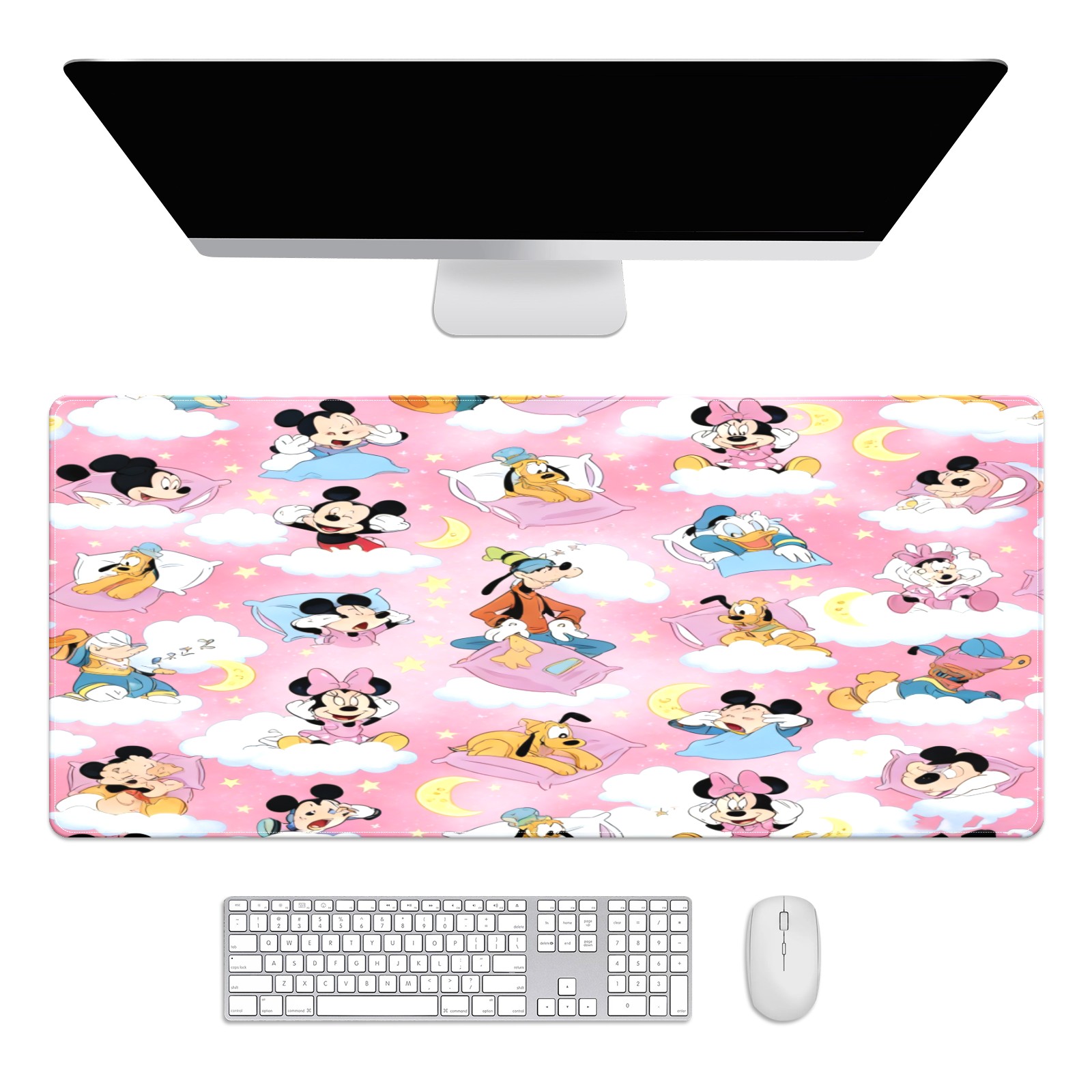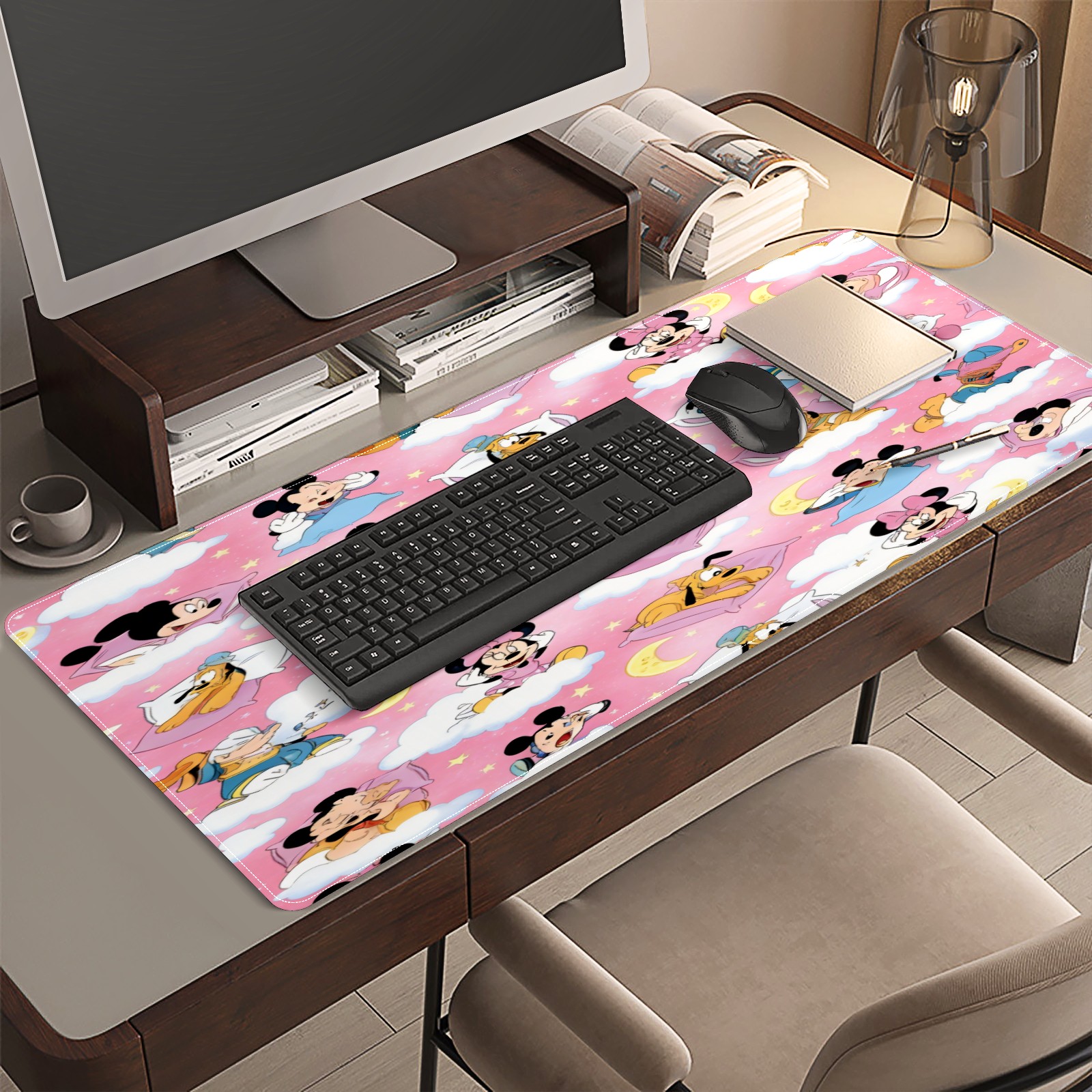 Large Gaming Mouse Pad (90x40cm), Extended Waterproof Desk Mat with Non-Slip Rubber Base, Soft Character Pink for Gamers, Office & Home