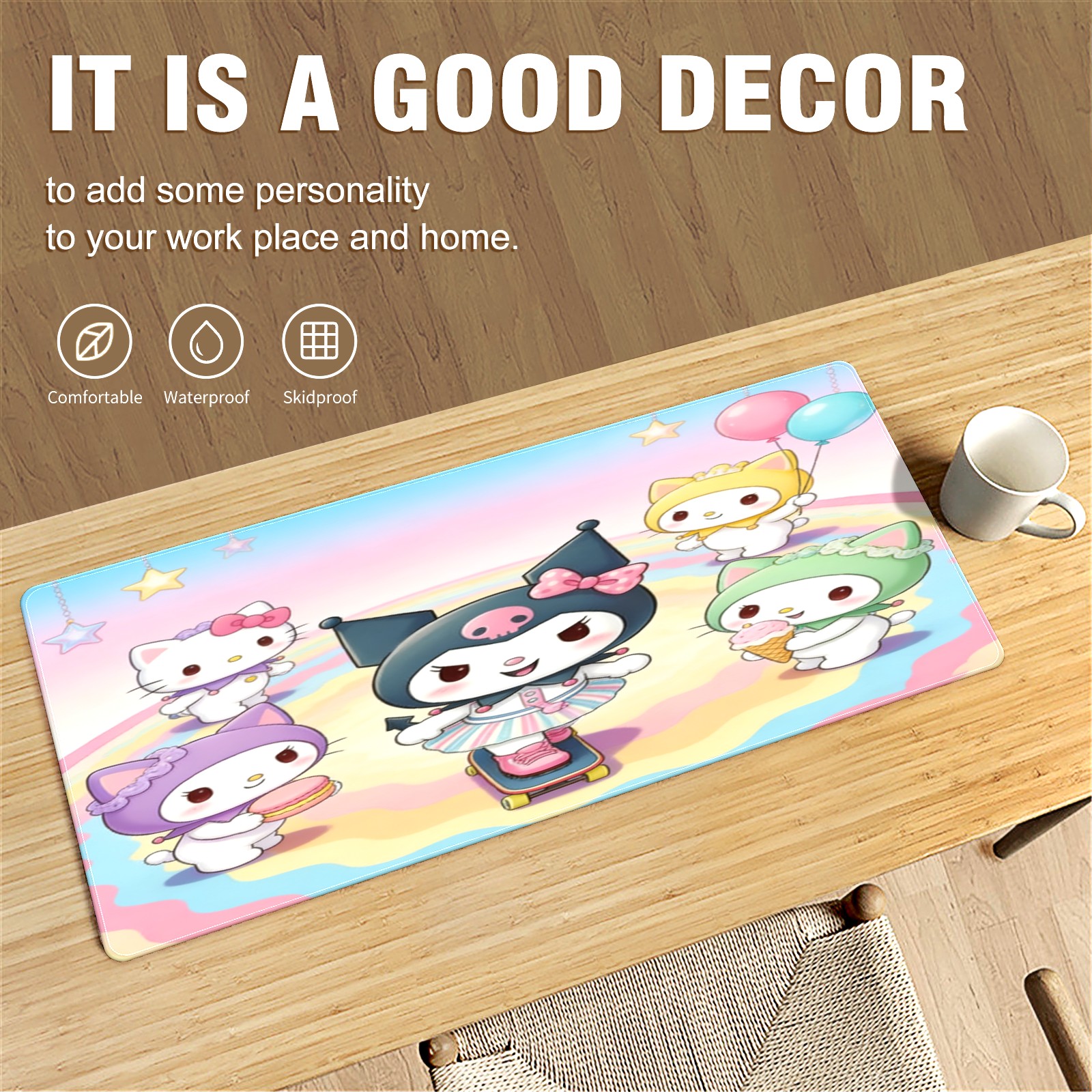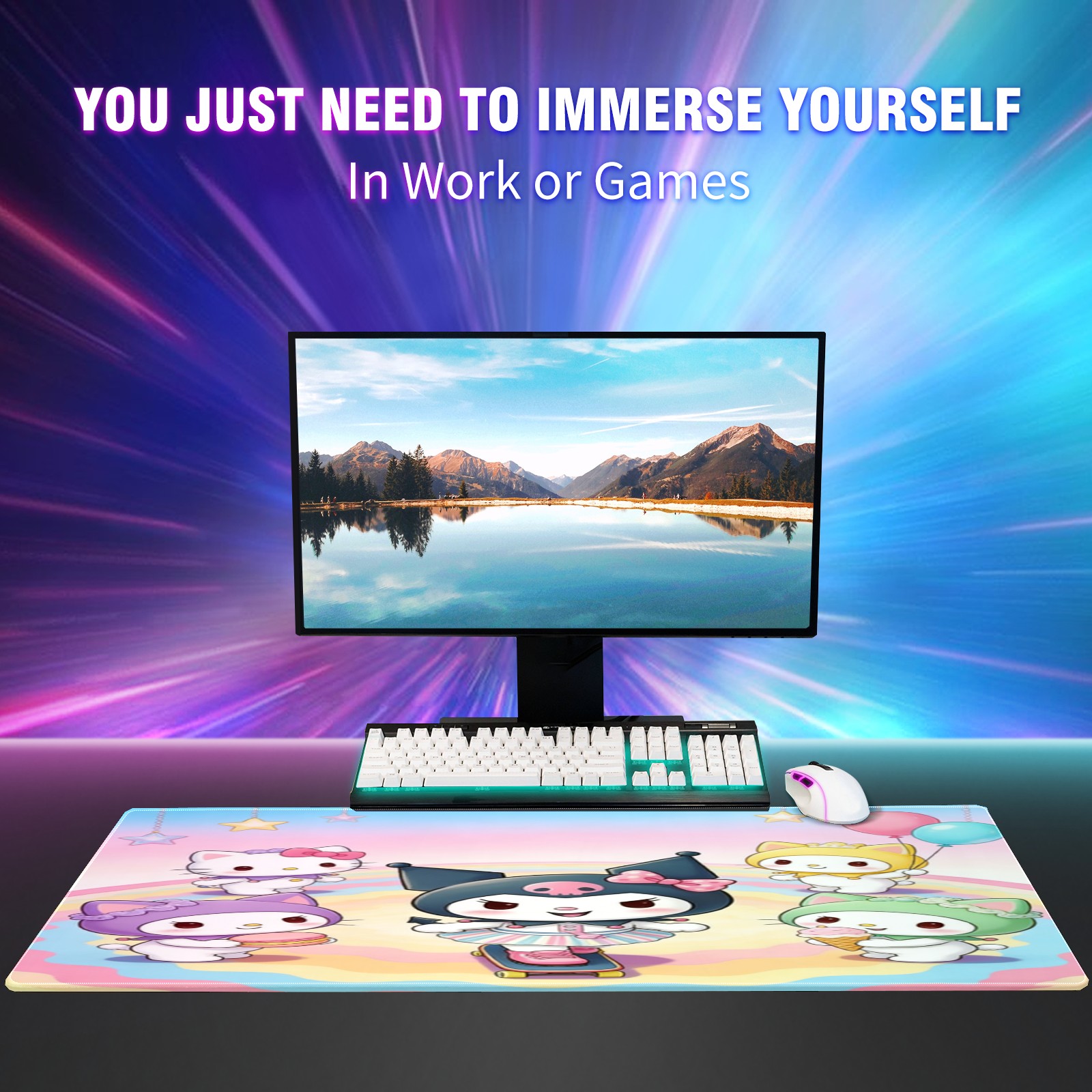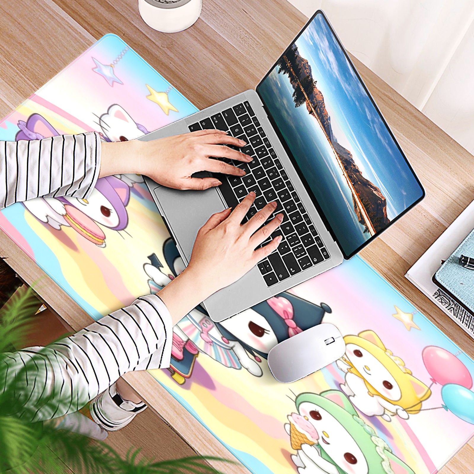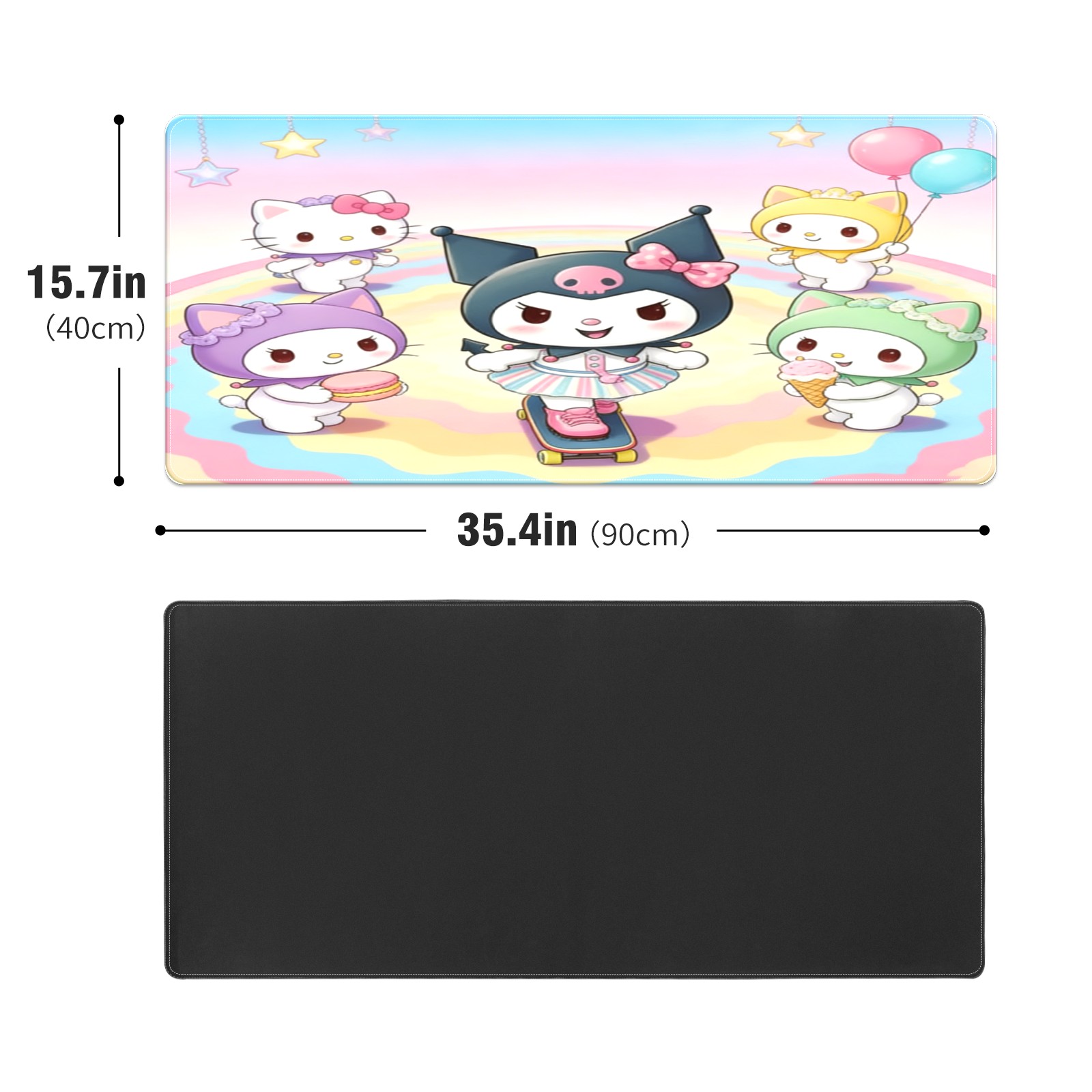 Large Gaming Mouse Pad (90x40cm), Extended Waterproof Desk Mat with Non-Slip Rubber Base, Sanrio Character Pink for Gamers, Office & Home
