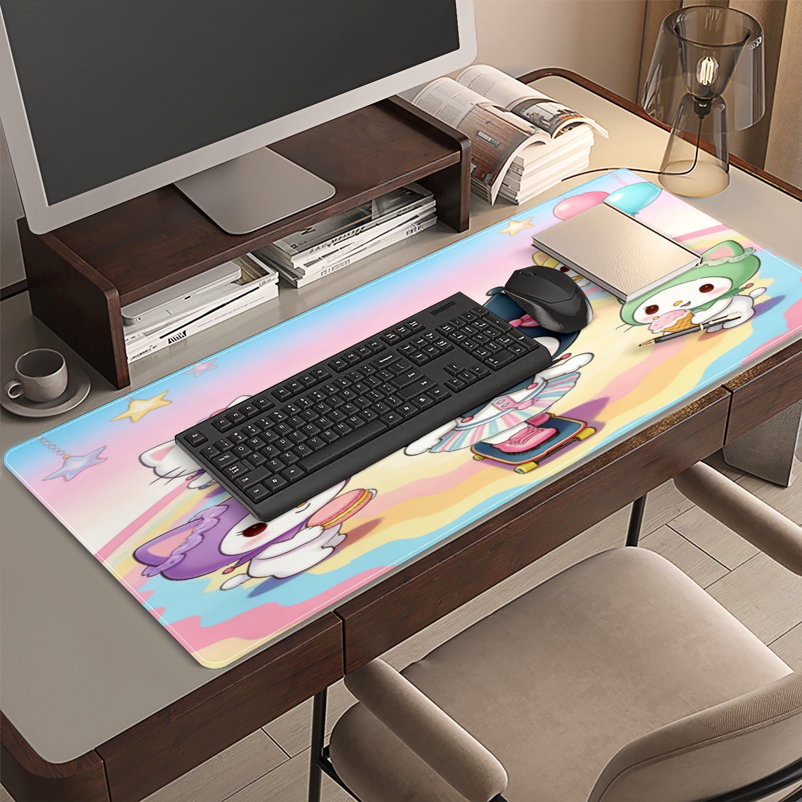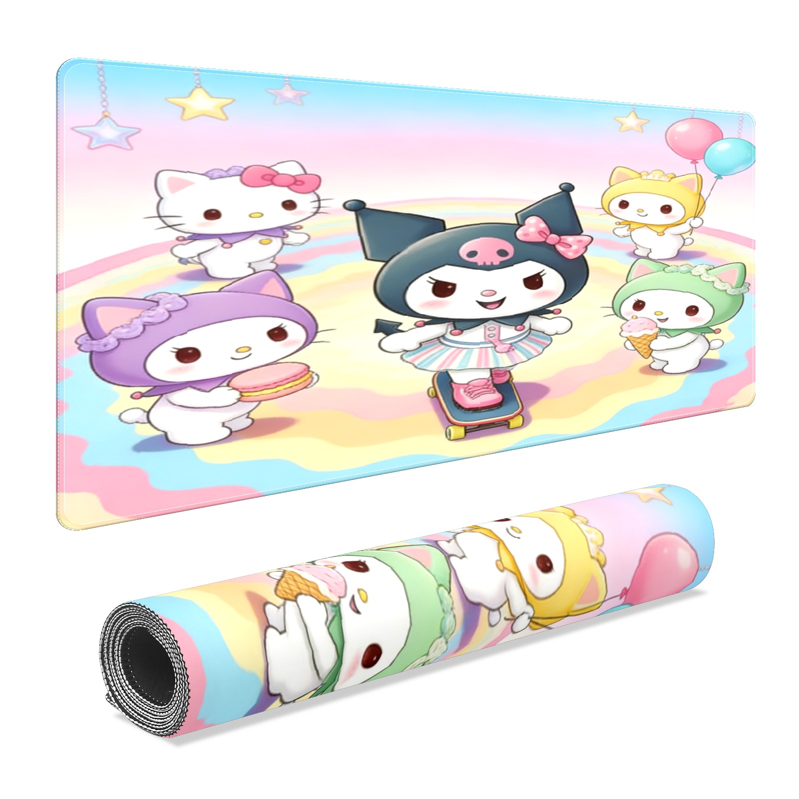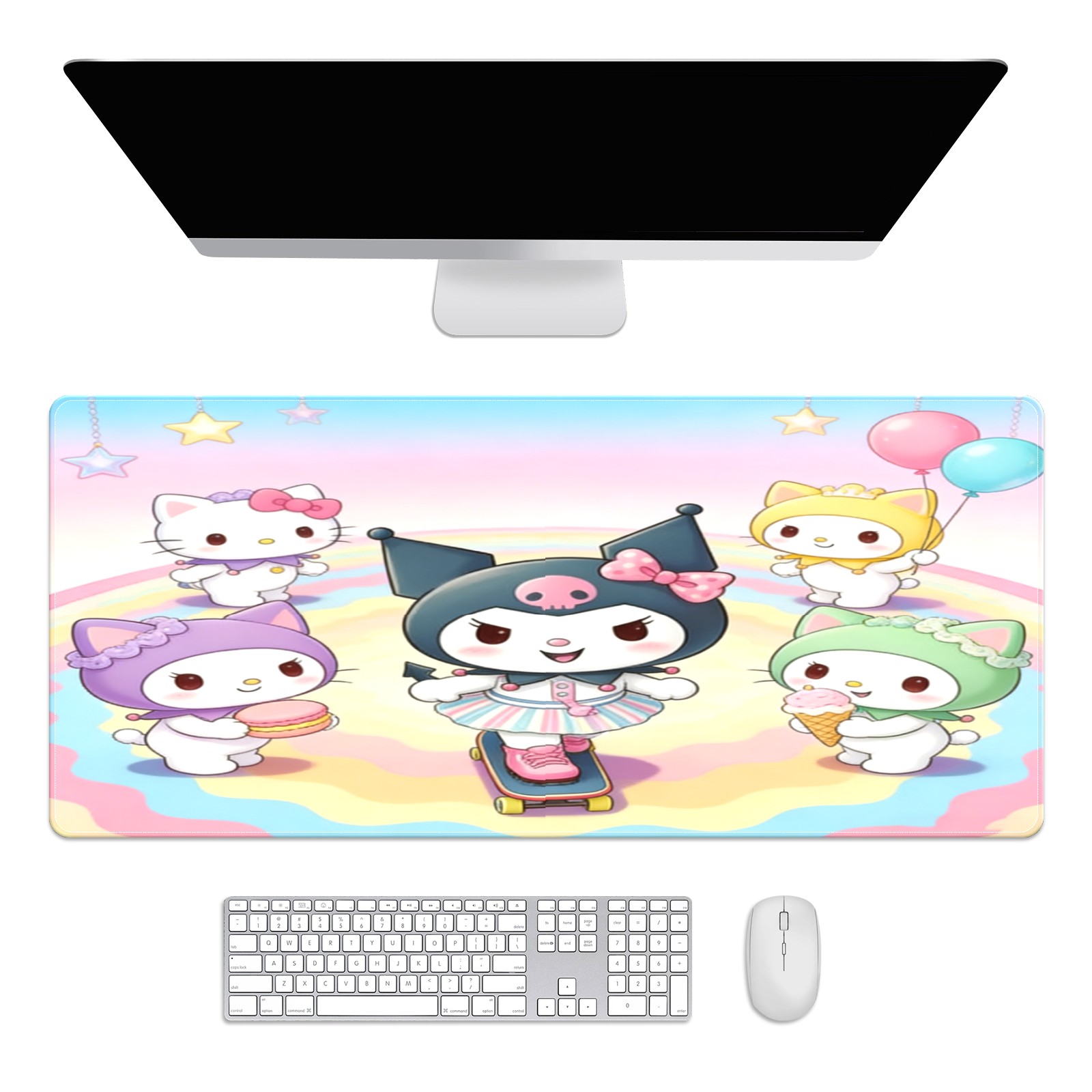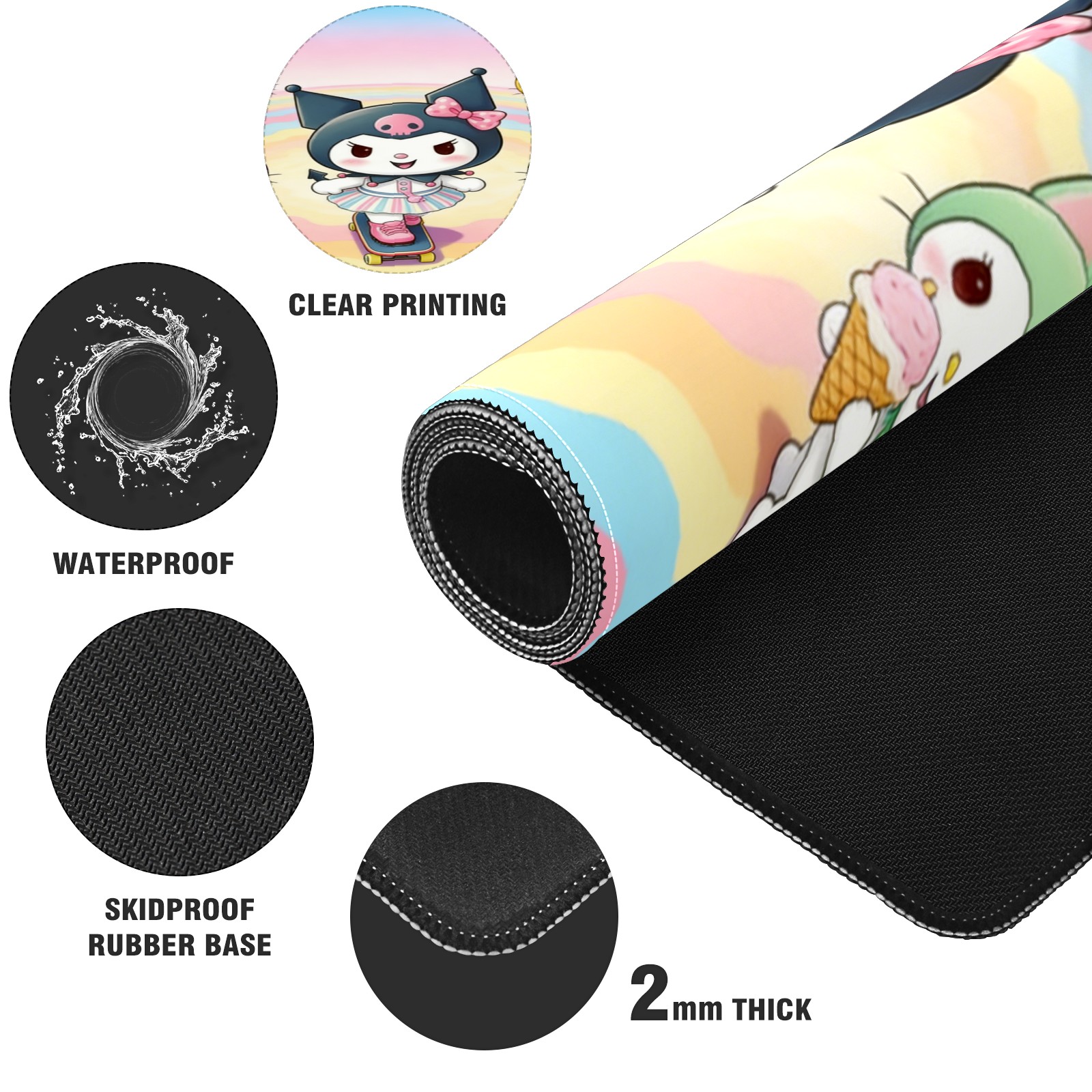Large Gaming Mouse Pad (90x40cm), Extended Waterproof Desk Mat with Non-Slip Rubber Base, Sanrio Character Pink for Gamers, Office & Home