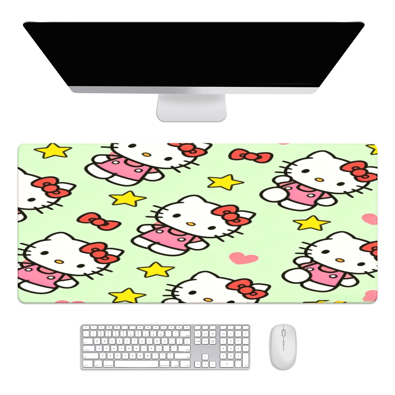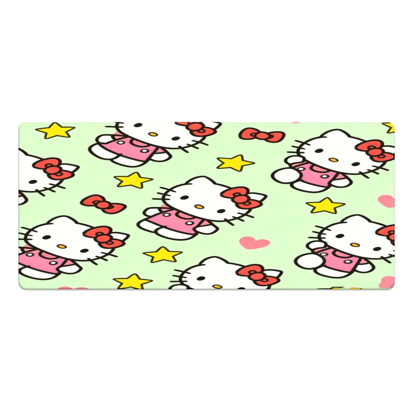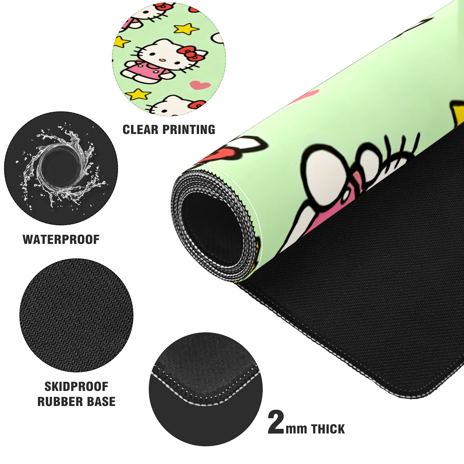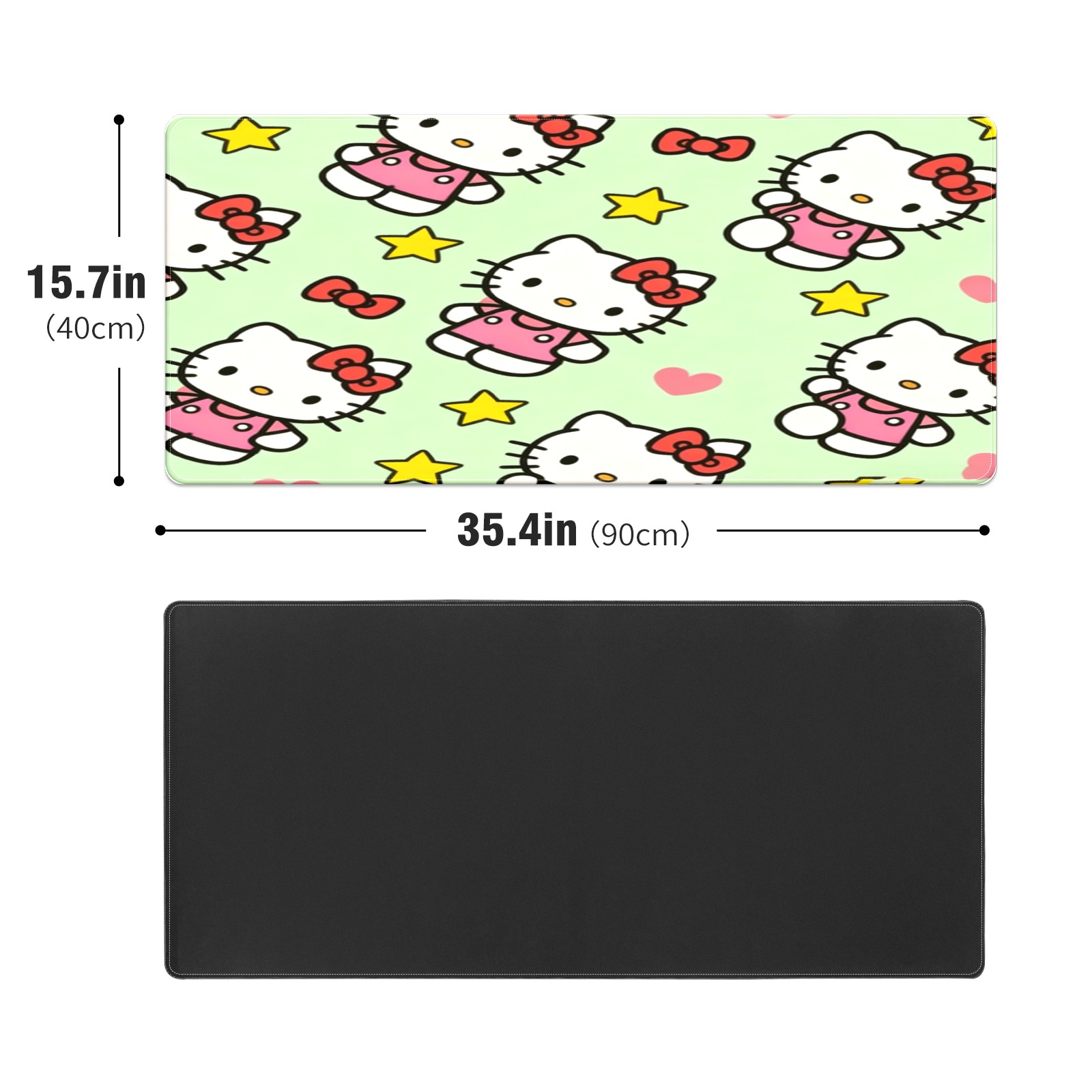 Large Gaming Mouse Pad (90x40cm), Extended Waterproof Desk Mat with Non-Slip Rubber Base, Sweet Cat Green for Gamers, Office & Home