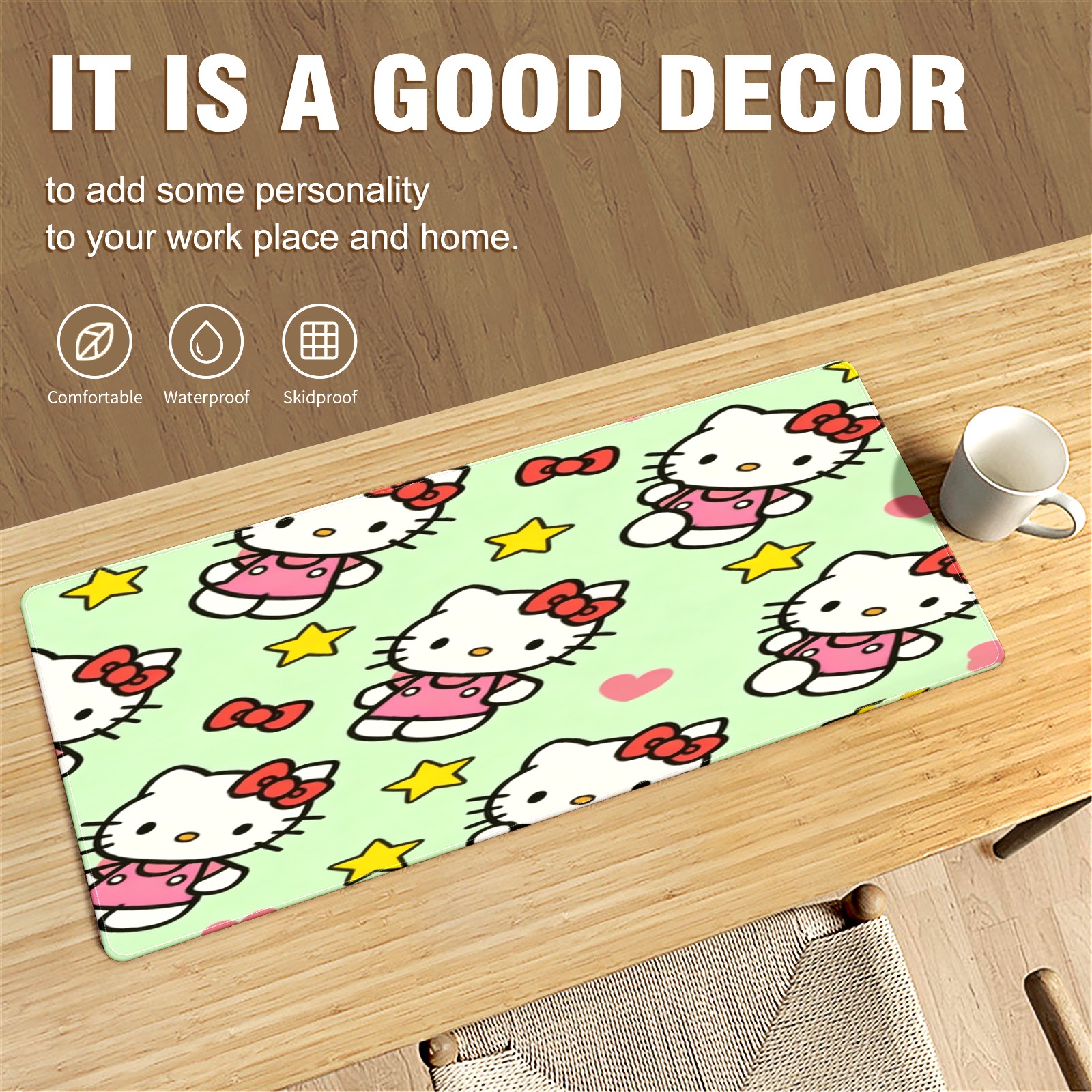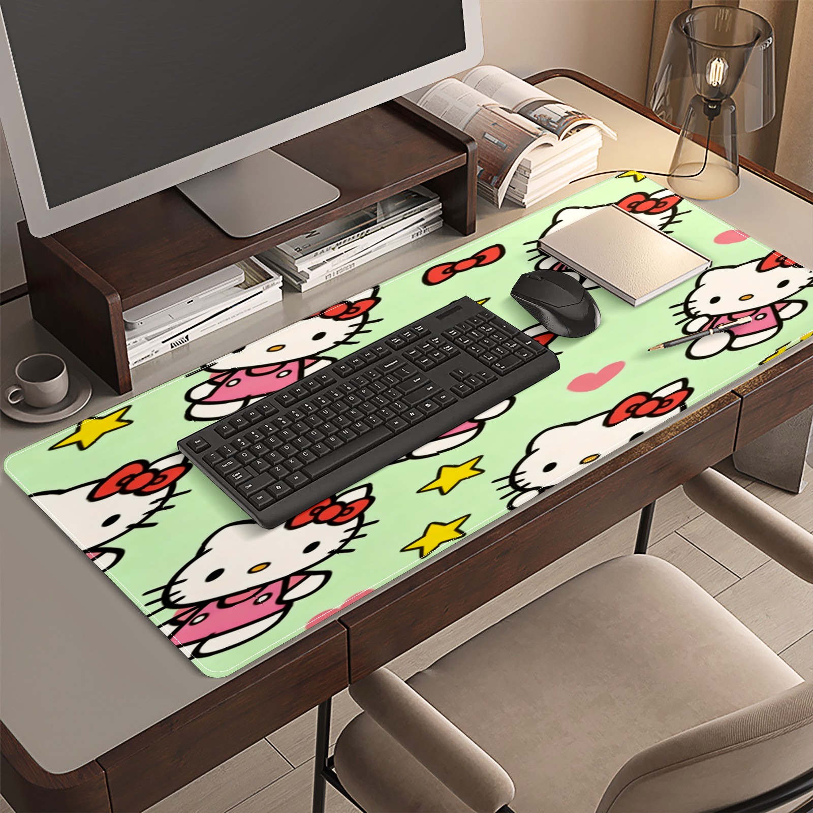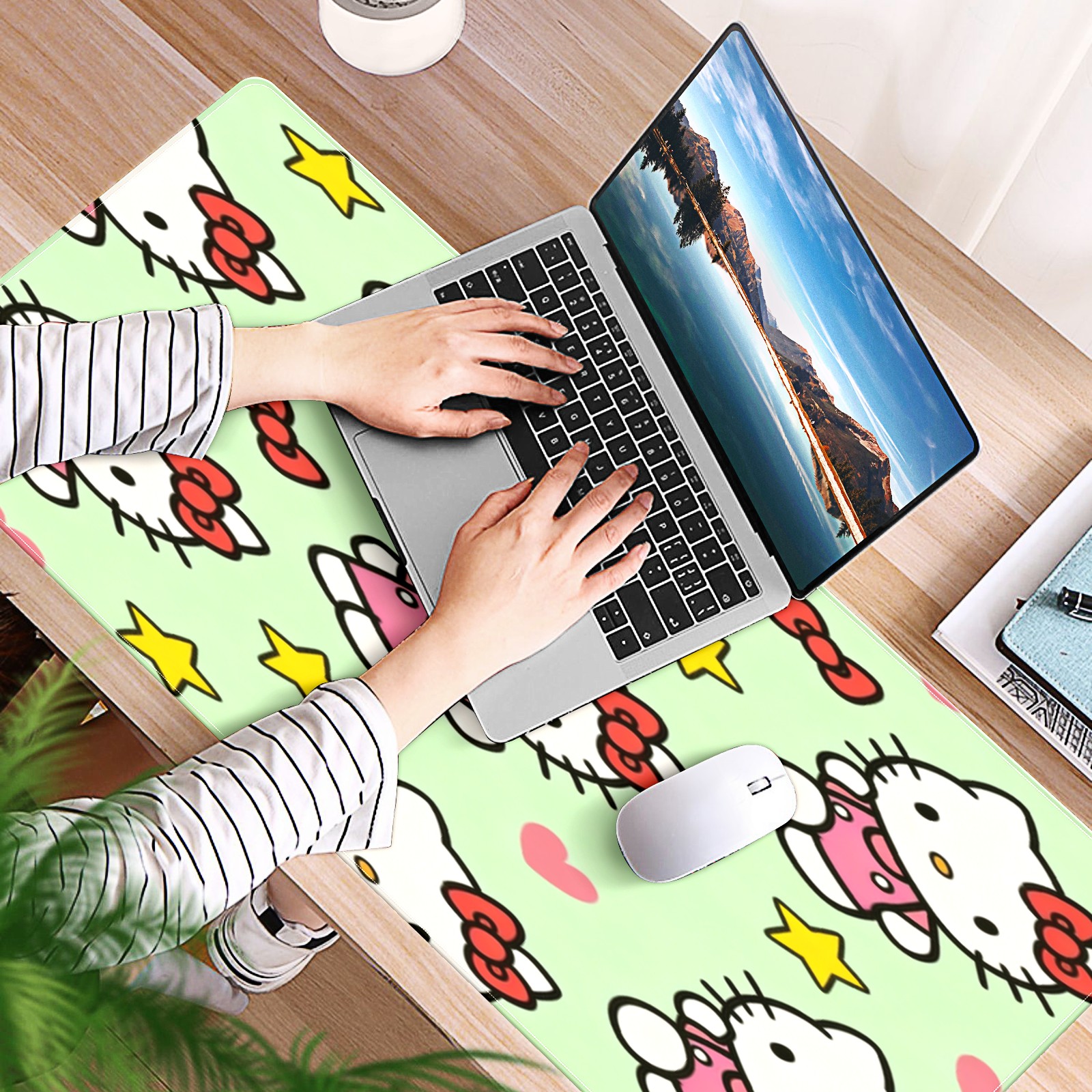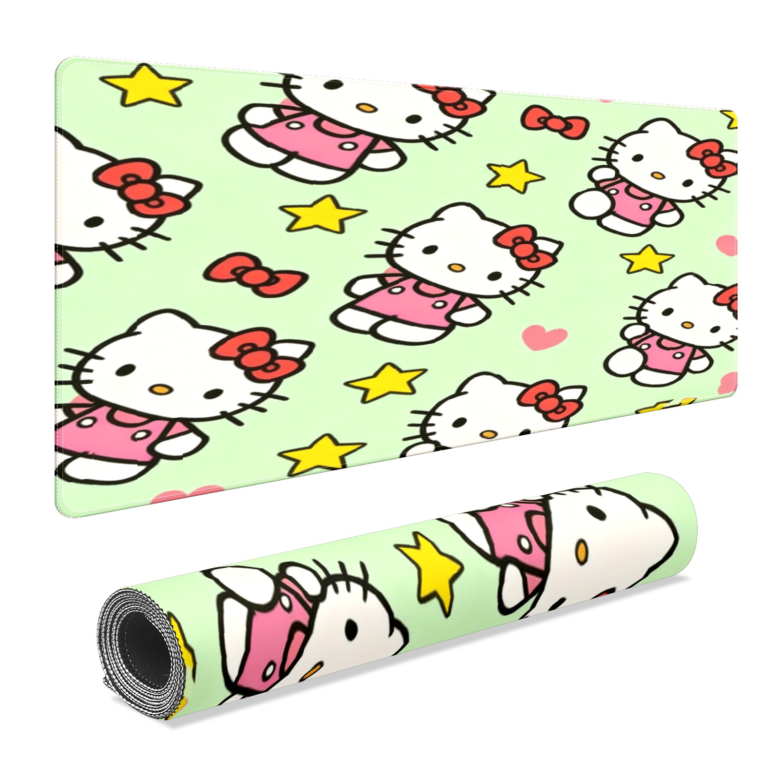 Large Gaming Mouse Pad (90x40cm), Extended Waterproof Desk Mat with Non-Slip Rubber Base, Sweet Cat Green for Gamers, Office & Home