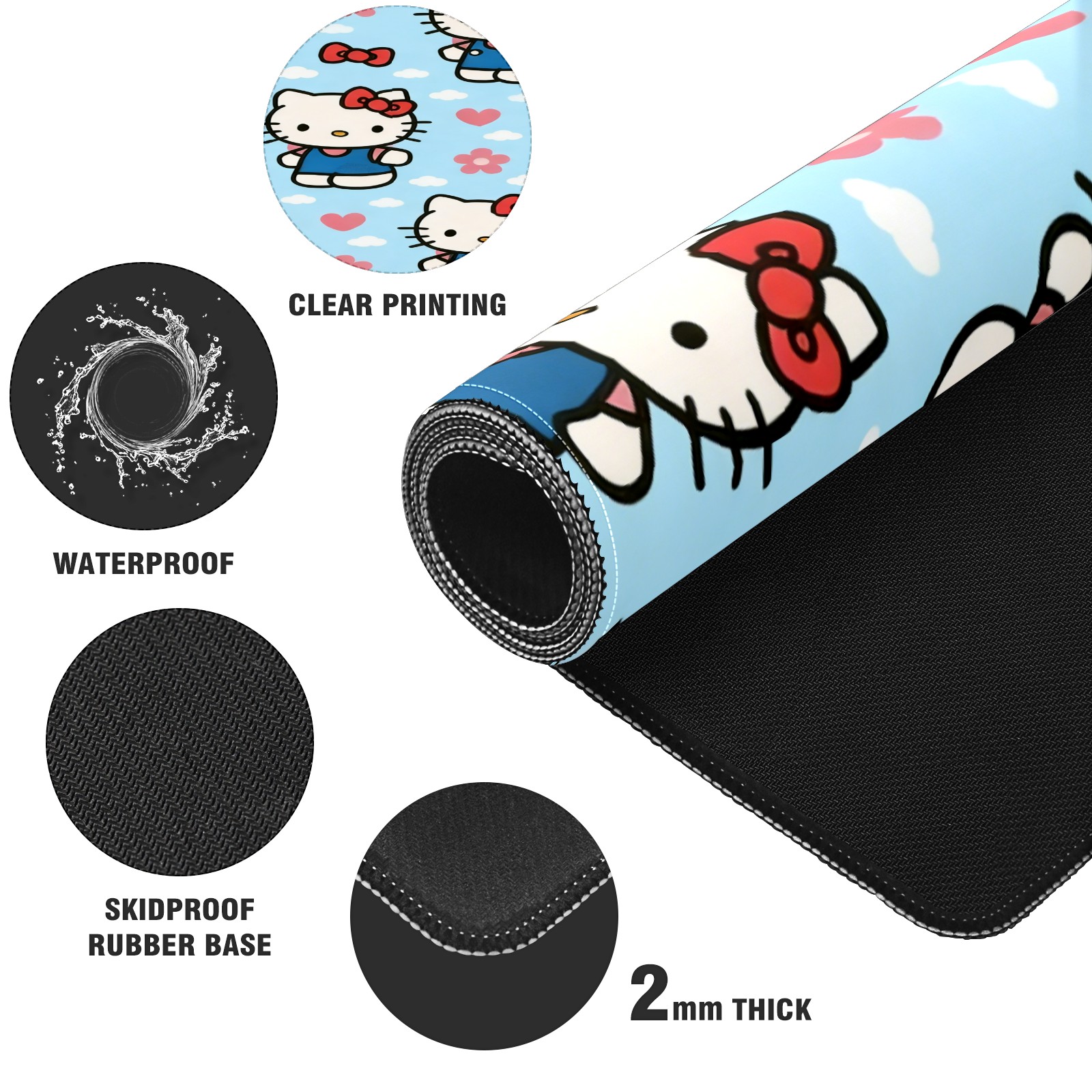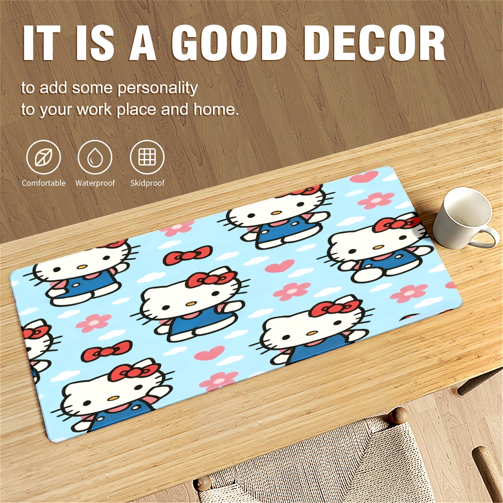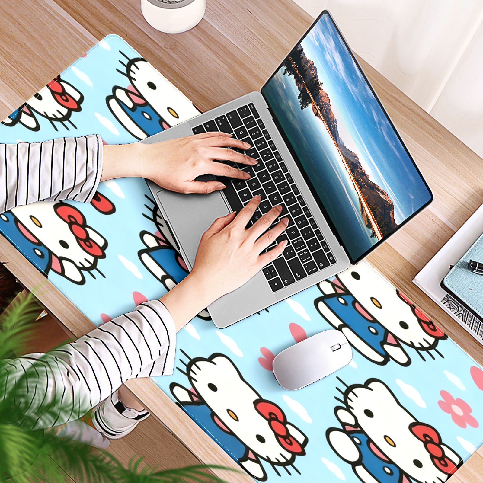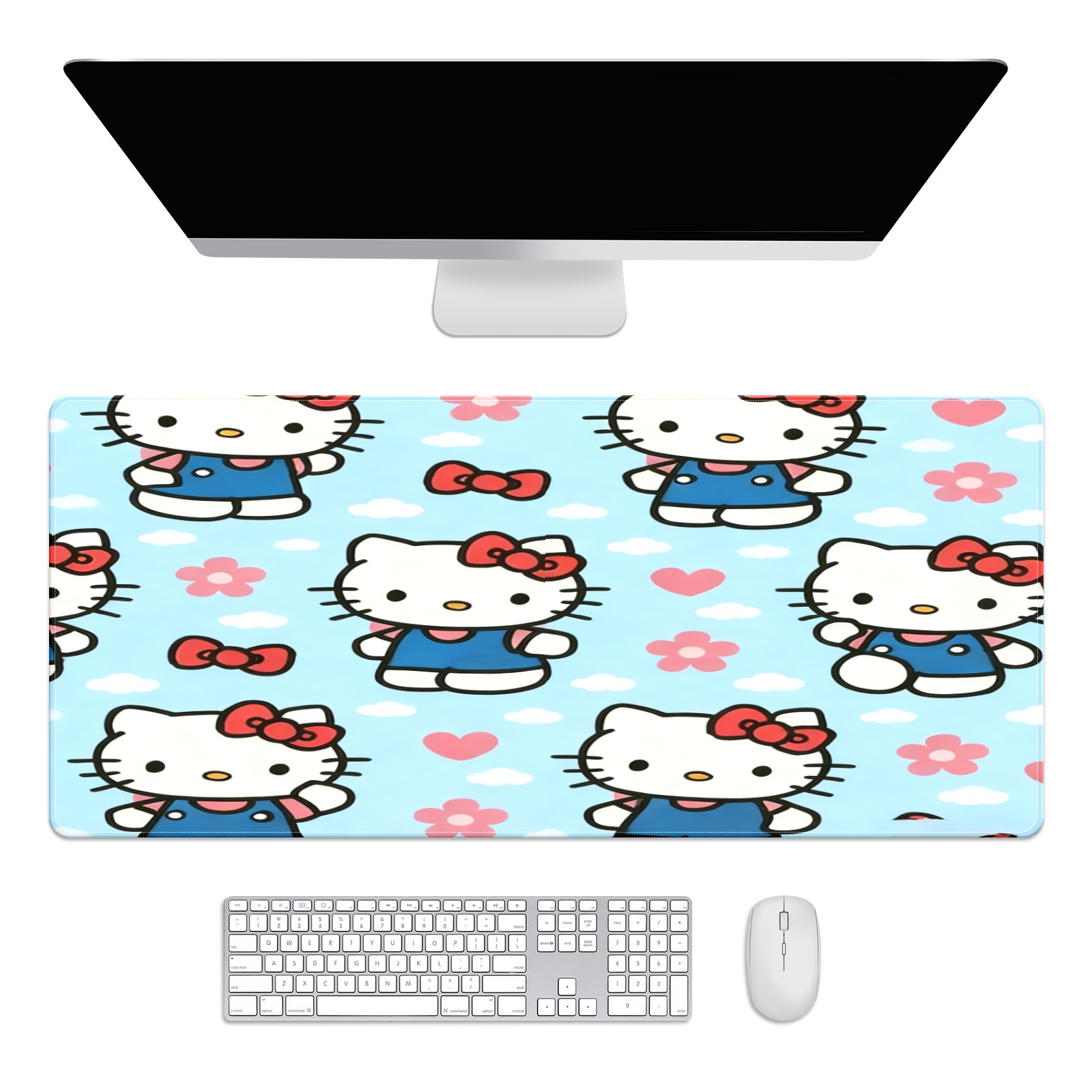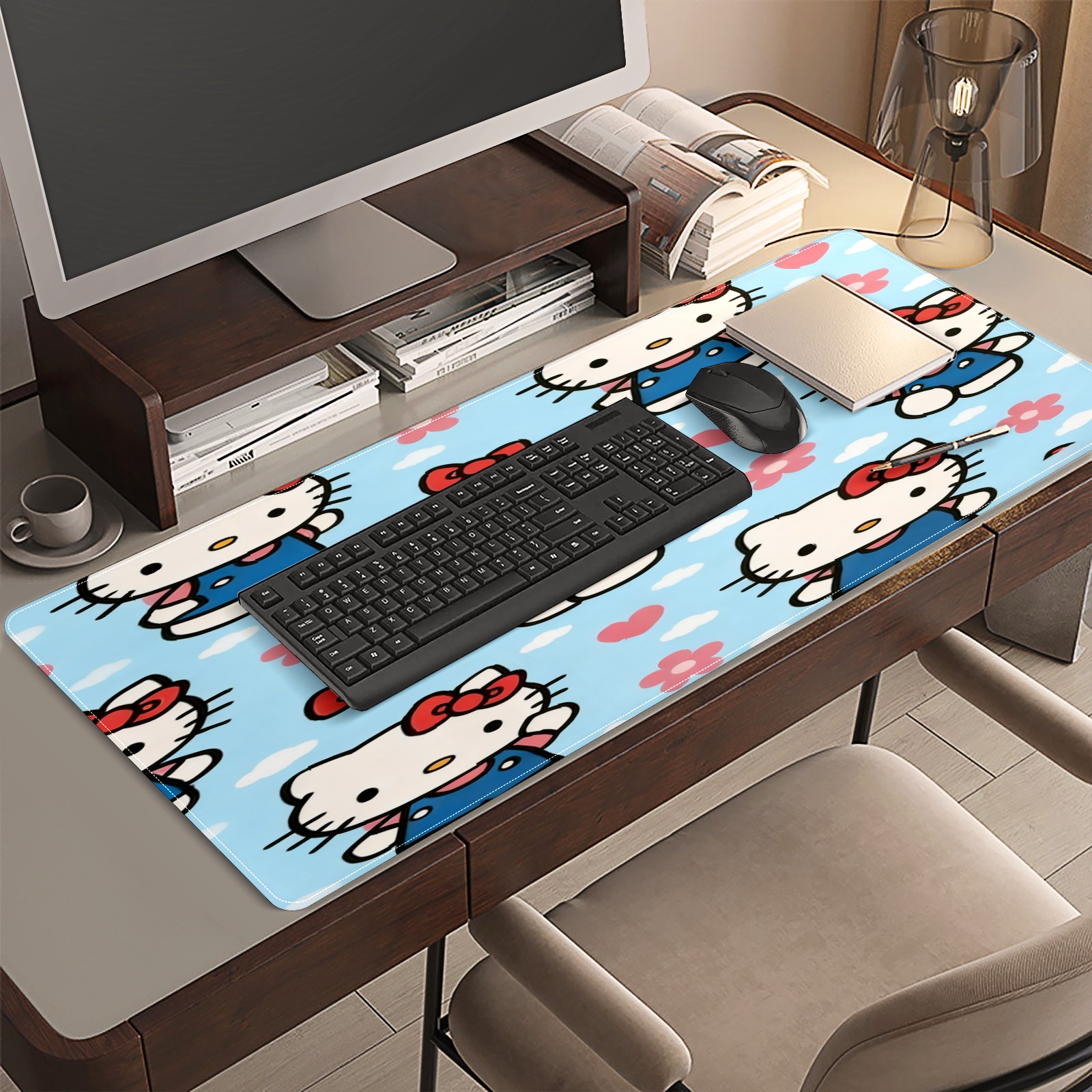 Large Gaming Mouse Pad (90x40cm), Extended Waterproof Desk Mat with Non-Slip Rubber Base, Warm Hello Kitty Pink for Gamers, Office & Home