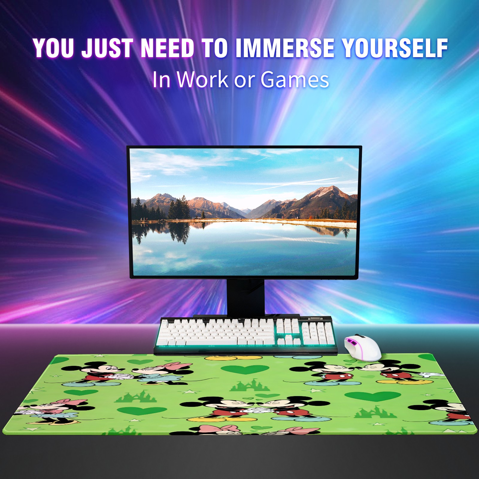 Large Gaming Mouse Pad (90x40cm), Extended Waterproof Desk Mat with Non-Slip Rubber Base, Fresh Mouse Green for Gamers, Office & Home