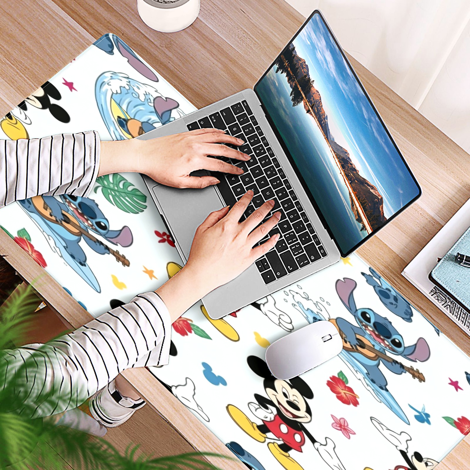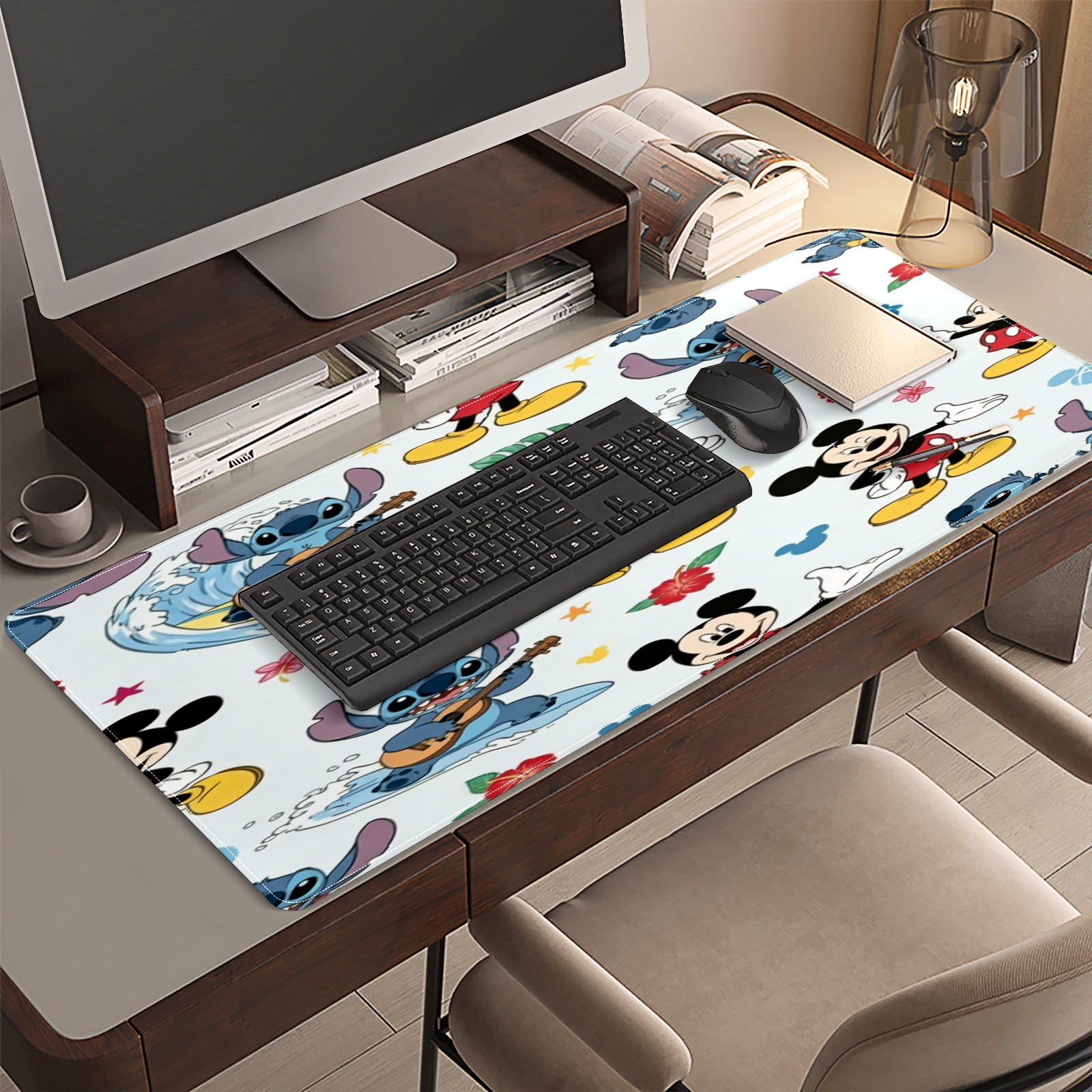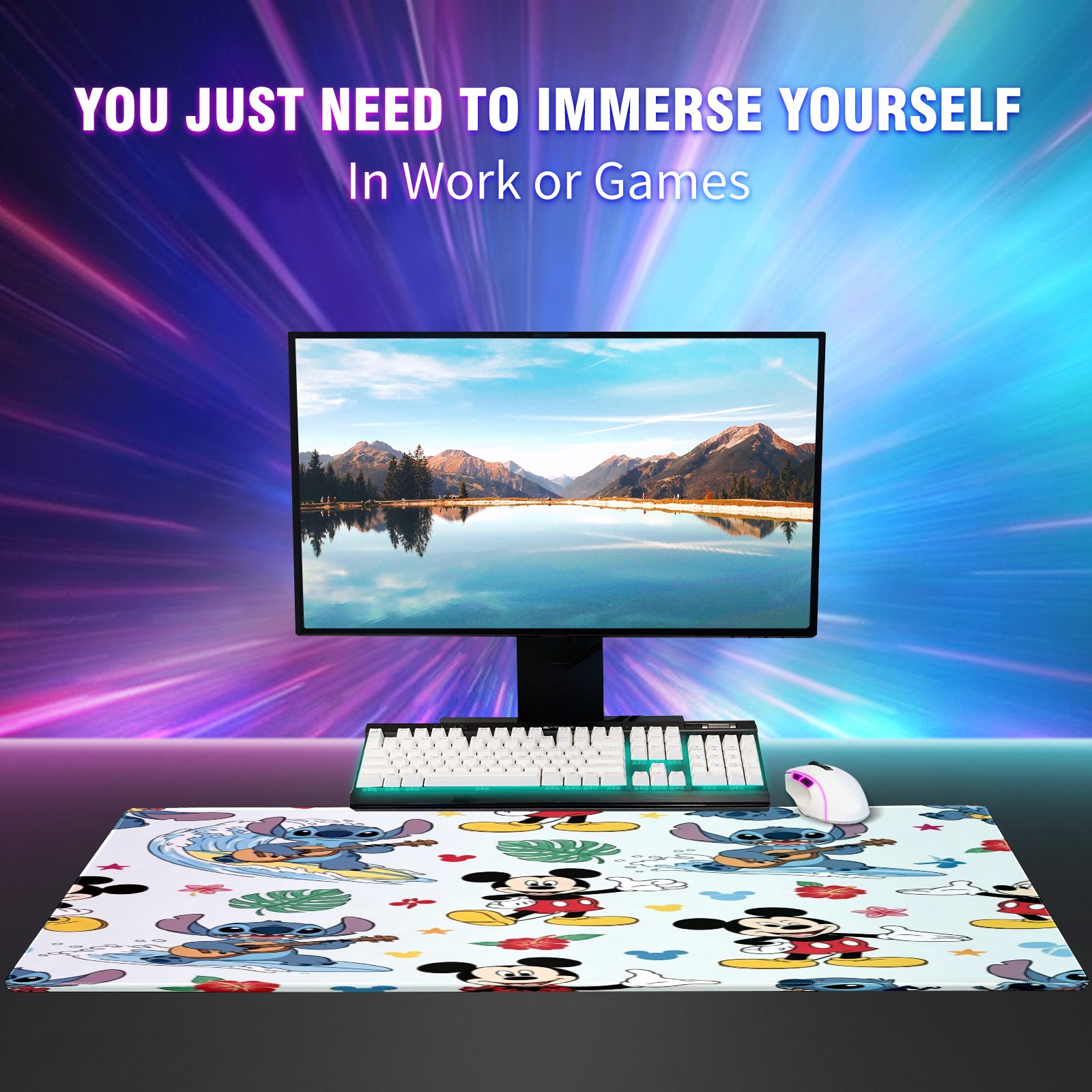 Large Gaming Mouse Pad (90x40cm), Extended Waterproof Desk Mat with Non-Slip Rubber Base, Vibrant Stitch&Mi Blue for Gamers, Office & Home