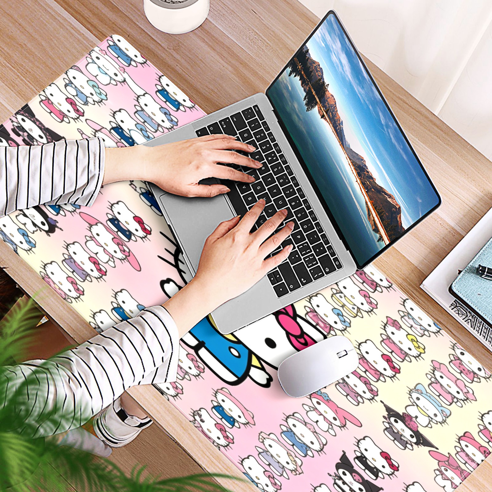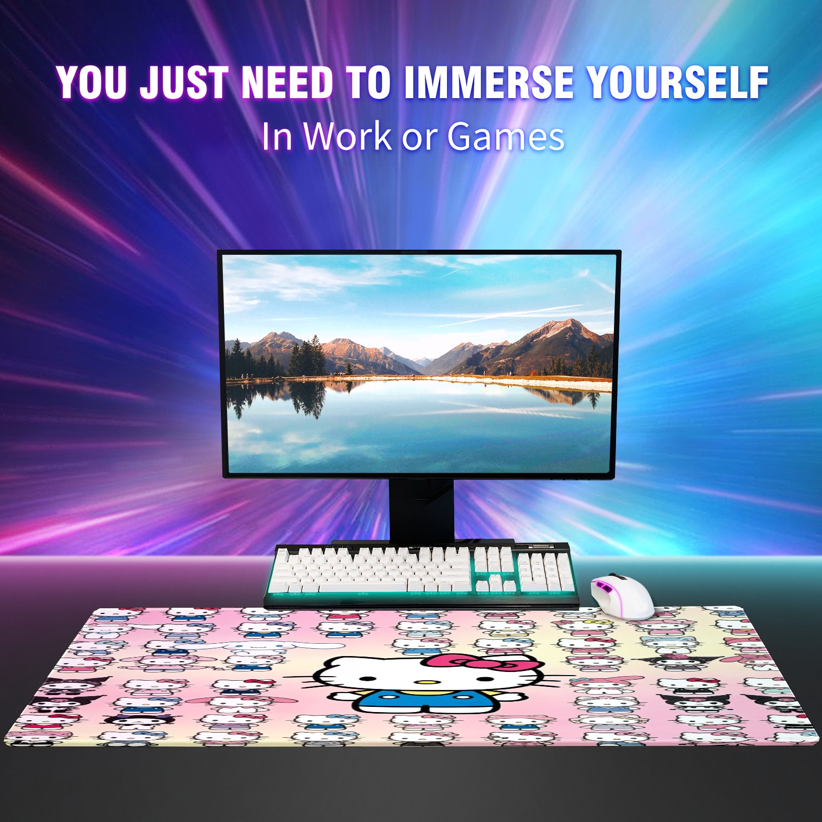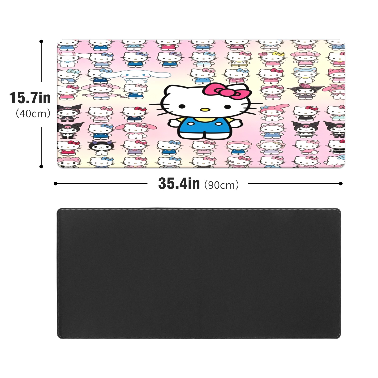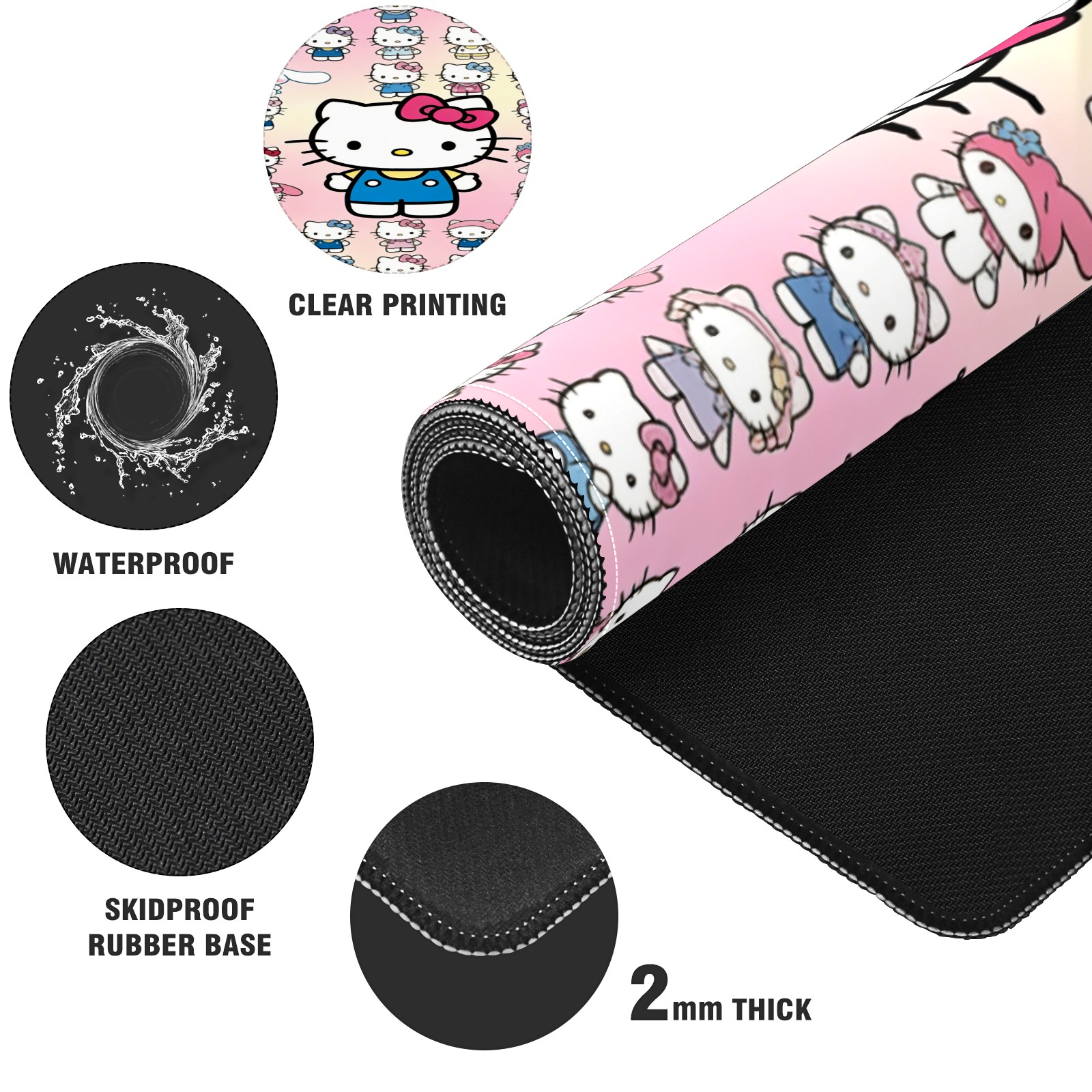 Large Gaming Mouse Pad (90x40cm), Extended Waterproof Desk Mat with Non-Slip Rubber Base, Hello Kitty Pink for Gamers, Office & Home